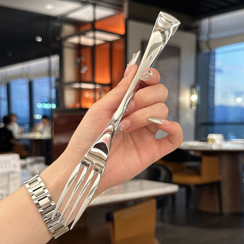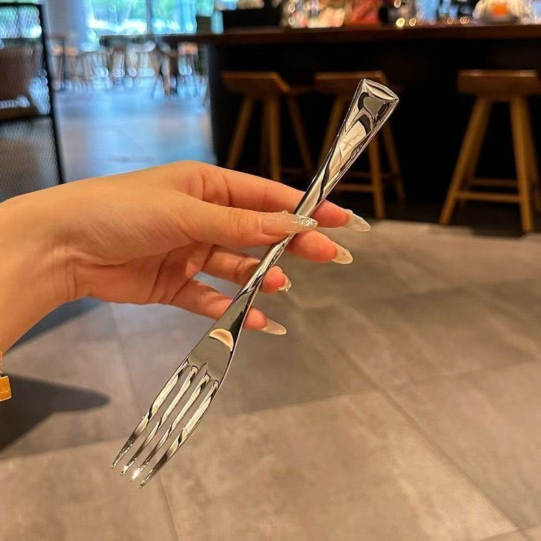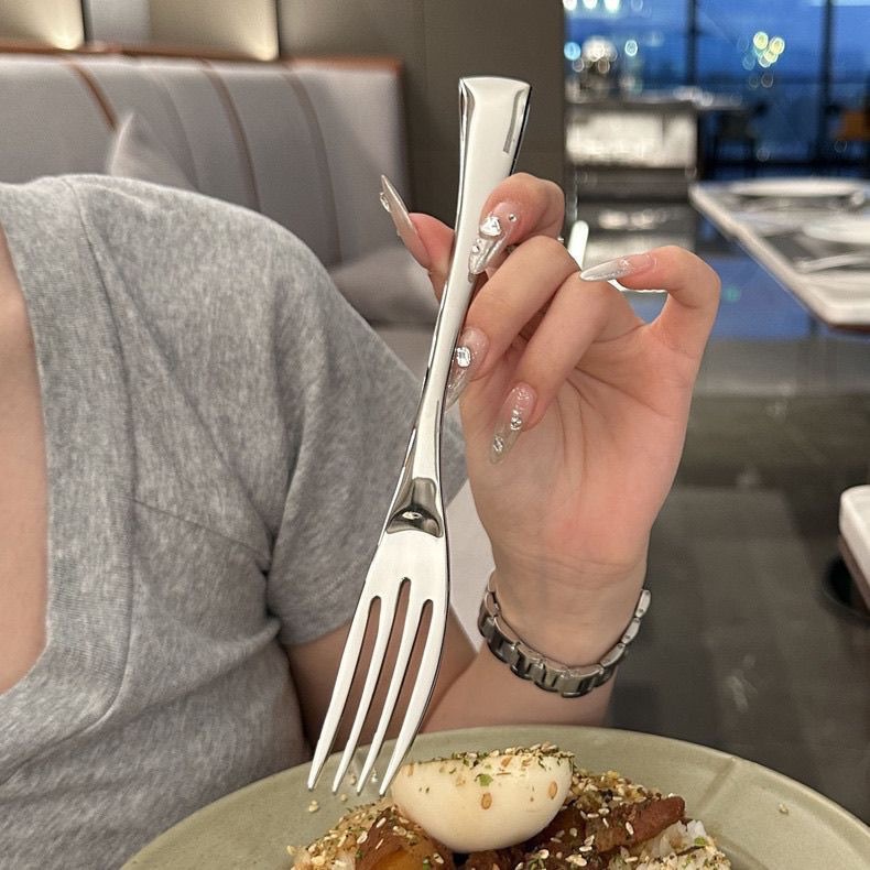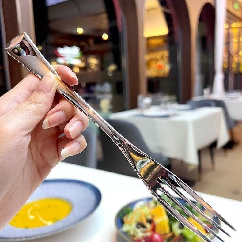 Вилка из нержавеющей стали для интернет-знаменитостей, вилка для торта, десерта, ресторана, вилка для фруктов с длинной ручкой, основная вилка для отеля, вилка для салата, дома