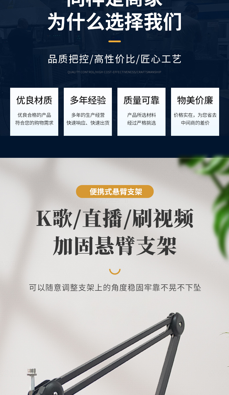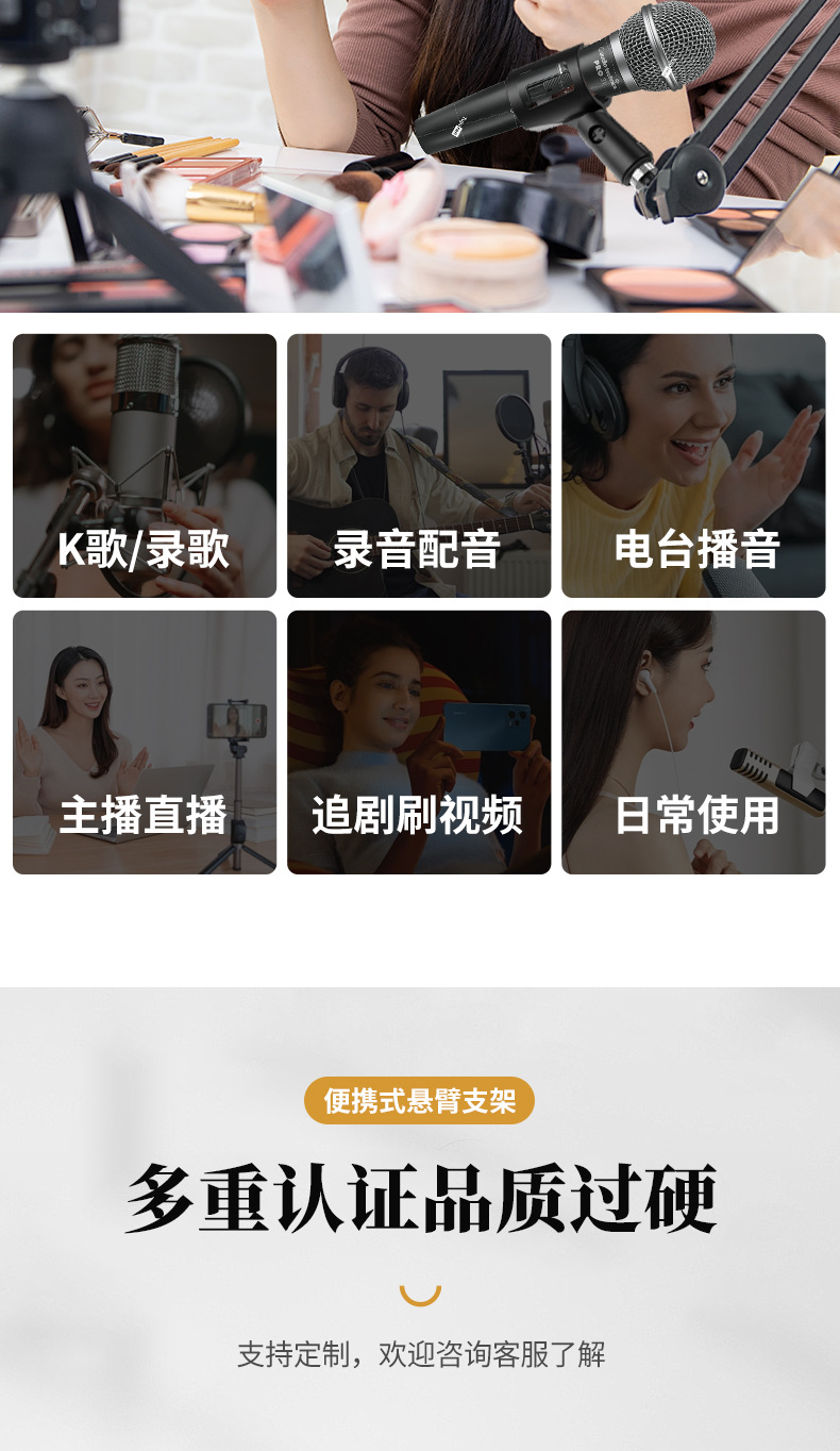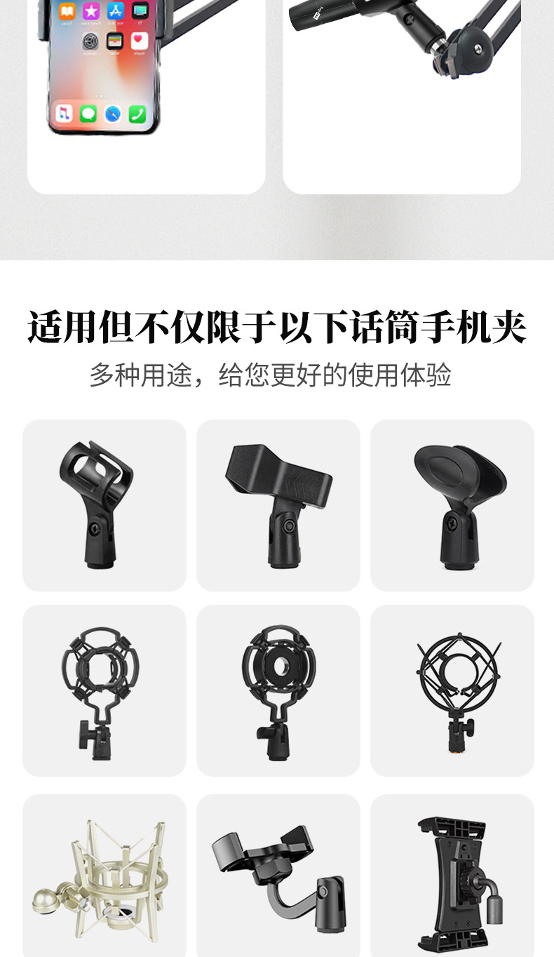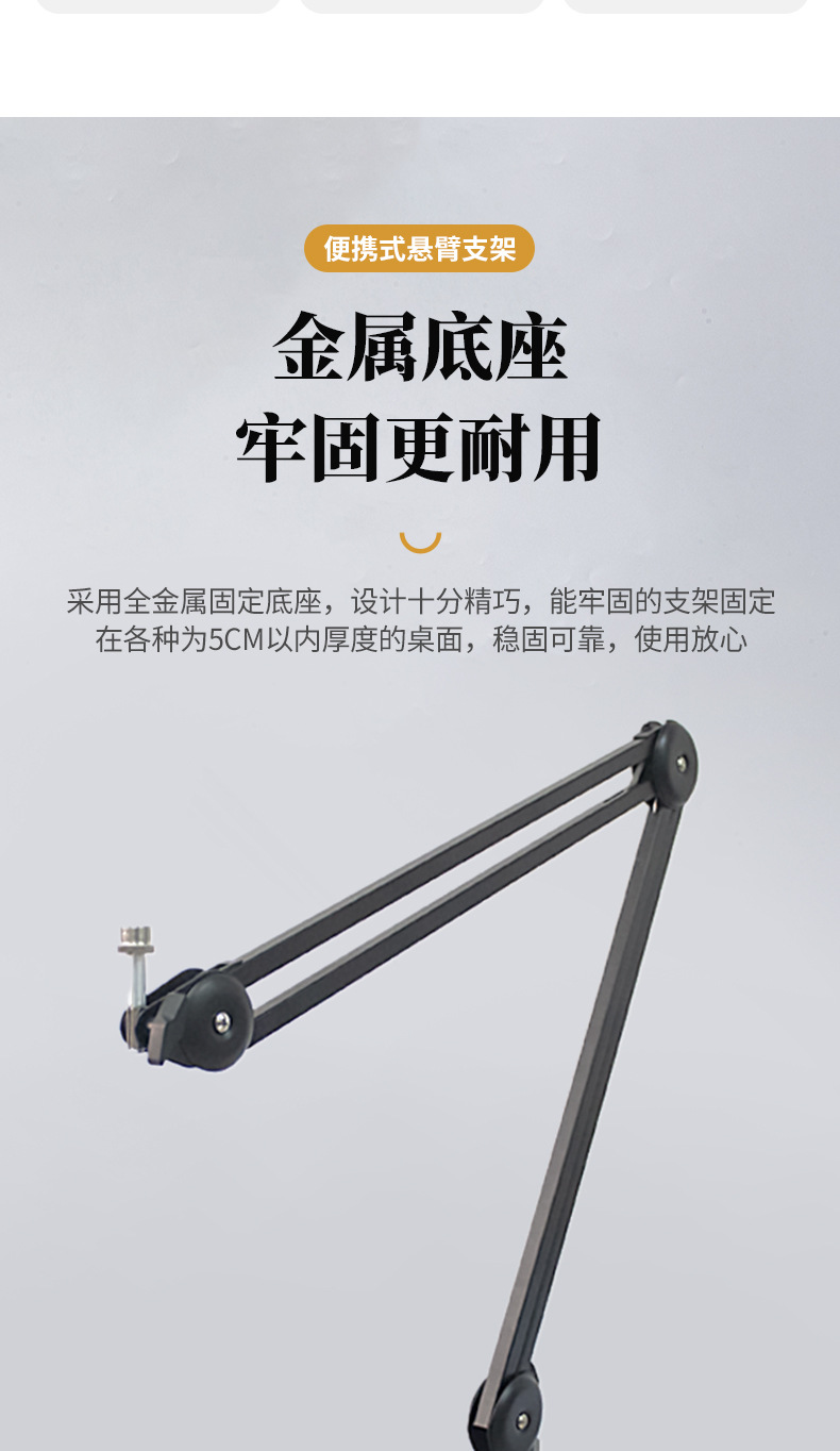 Новый встроенный пружинный консольный кронштейн, микрофон, кронштейн для мобильного телефона, компьютер, прямая трансляция, 360 градусов, конденсаторный микрофонный кронштейн