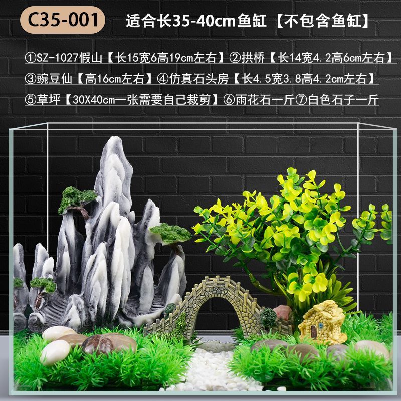 Пакет для ландшафтного дизайна аквариума, имитация водных растений, сосновый каменный мост, полный набор ленивого искусственного ландшафта, декоративные украшения для аквариума