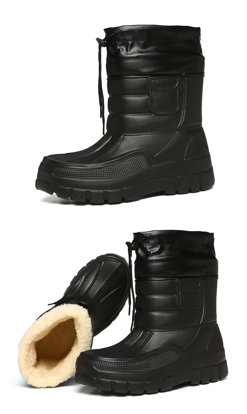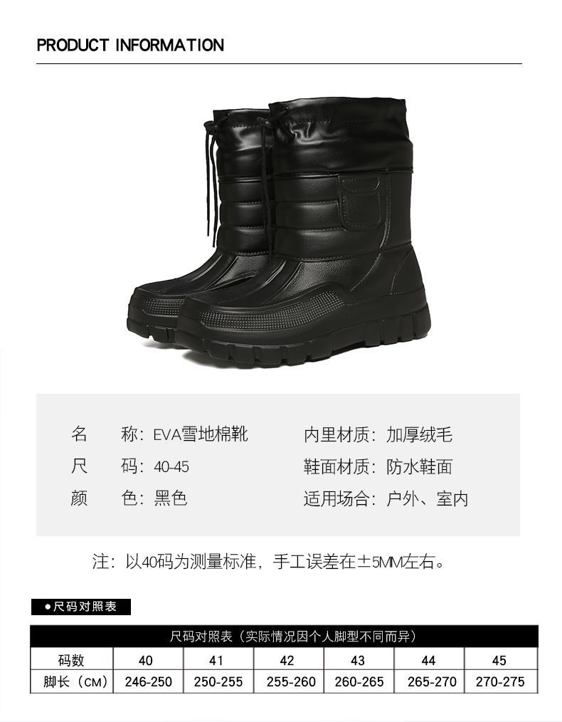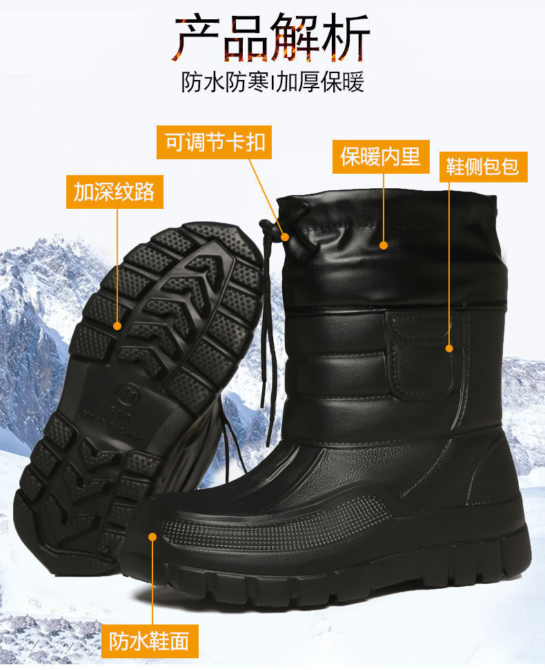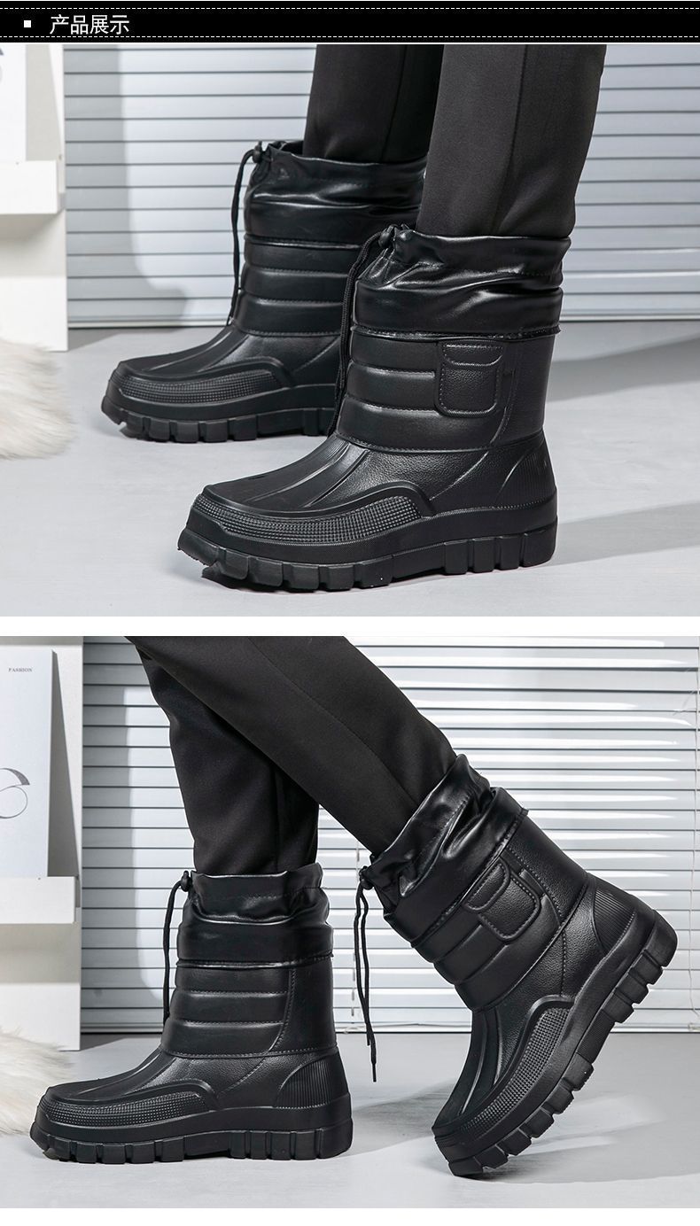 Мужские зимние длинные зимние ботинки с плюшевой подкладкой, теплые и утолщенные уличные высокие хлопковые ботинки, нескользящая спортивная хлопчатобумажная обувь на толстой подошве.