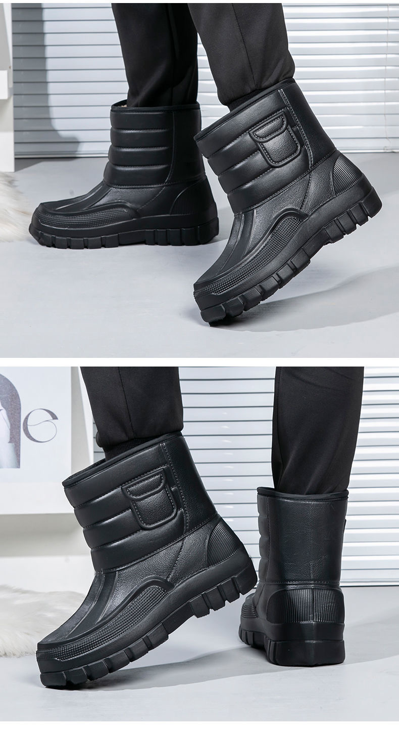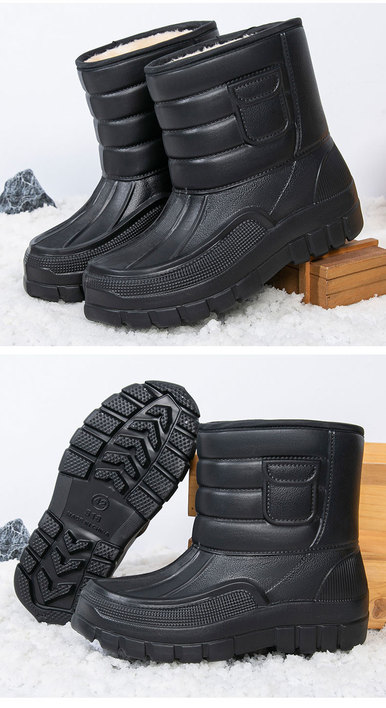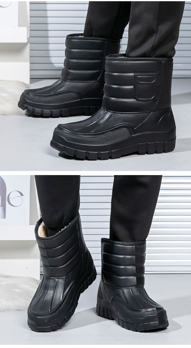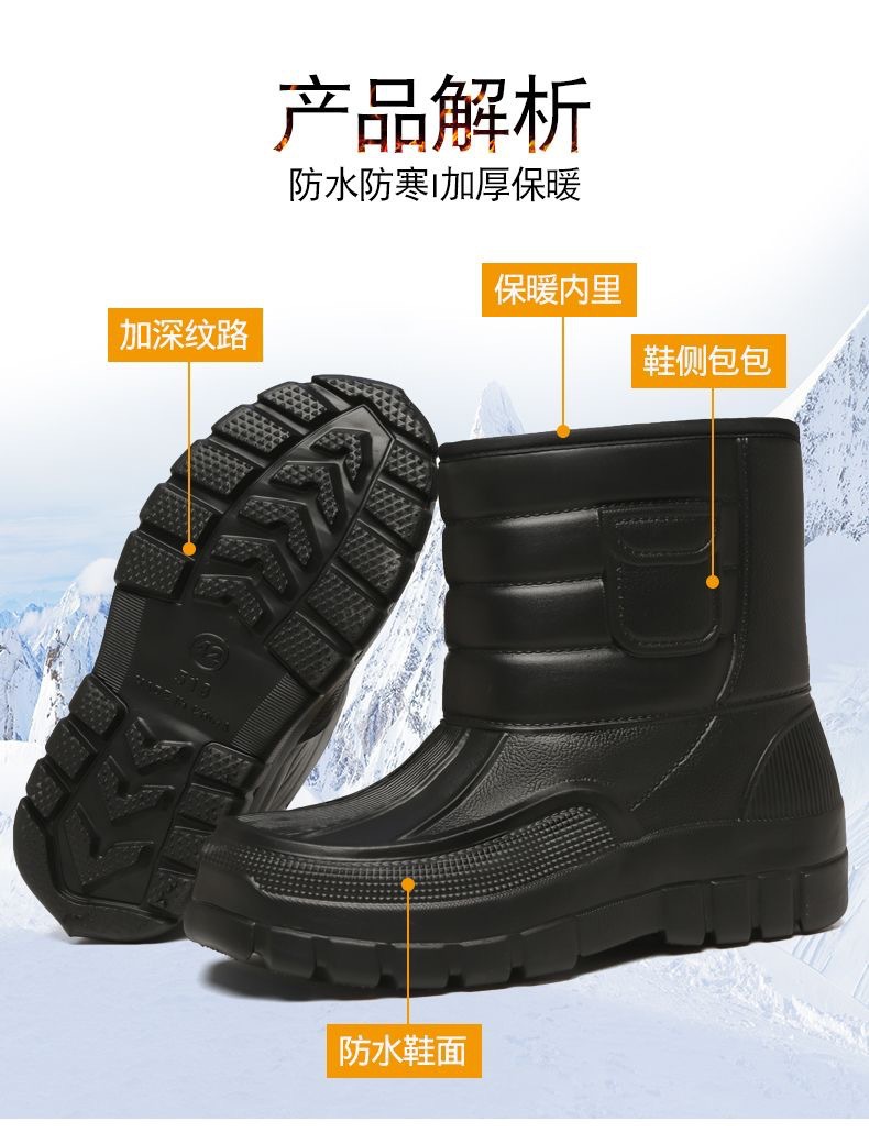 Мужские зимние длинные зимние ботинки с плюшевой подкладкой, теплые и утолщенные уличные высокие хлопковые ботинки, нескользящая спортивная хлопчатобумажная обувь на толстой подошве.