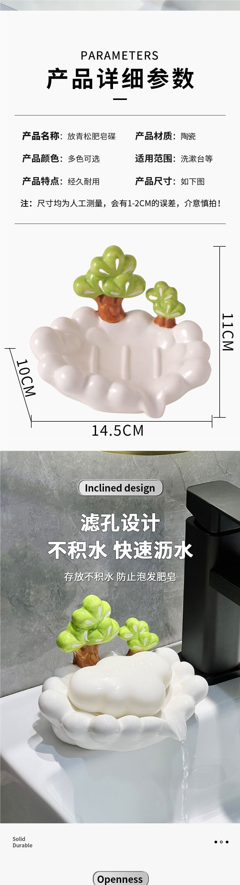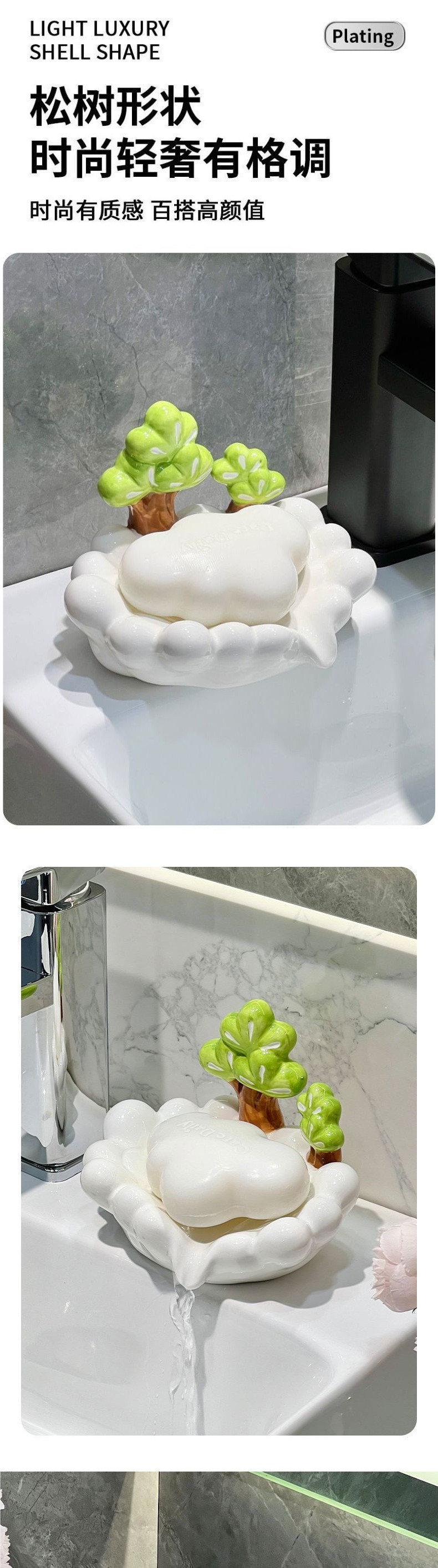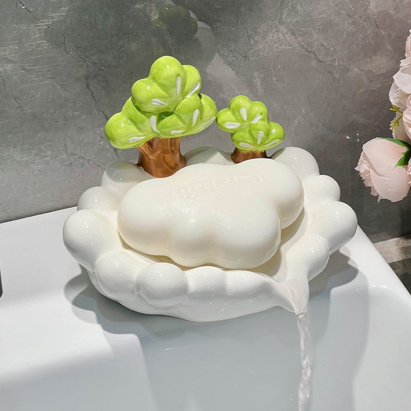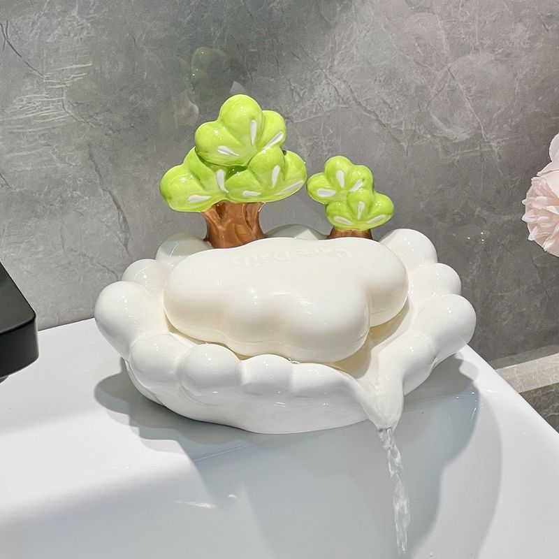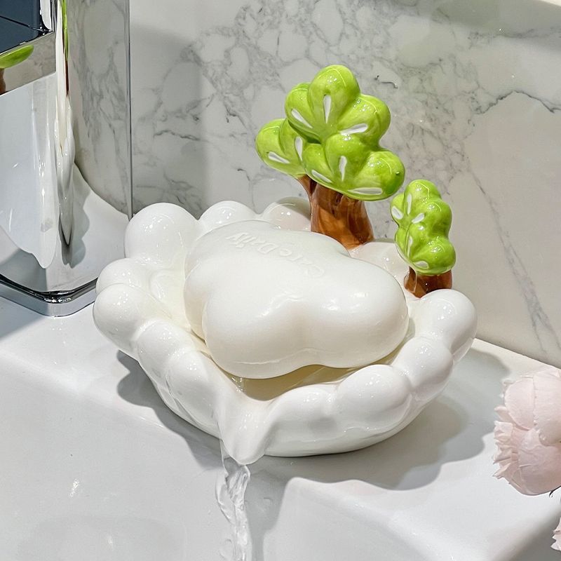 Дренажная мыльница из керамики в форме сосны, креативный держатель для мыла, подставка для хранения, для ванной комнаты, бытовая, не собирающая воду, лоток для мыла