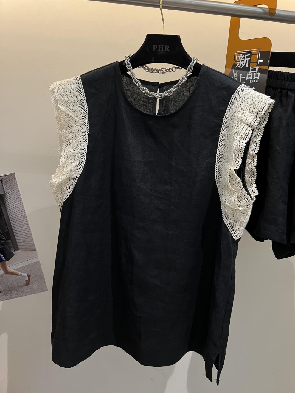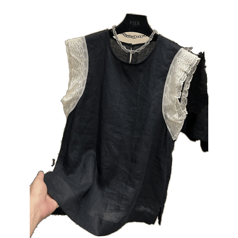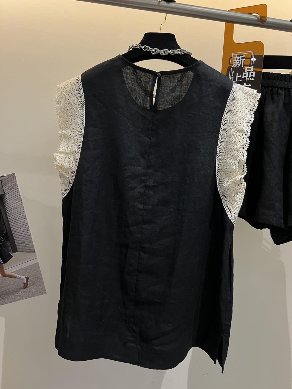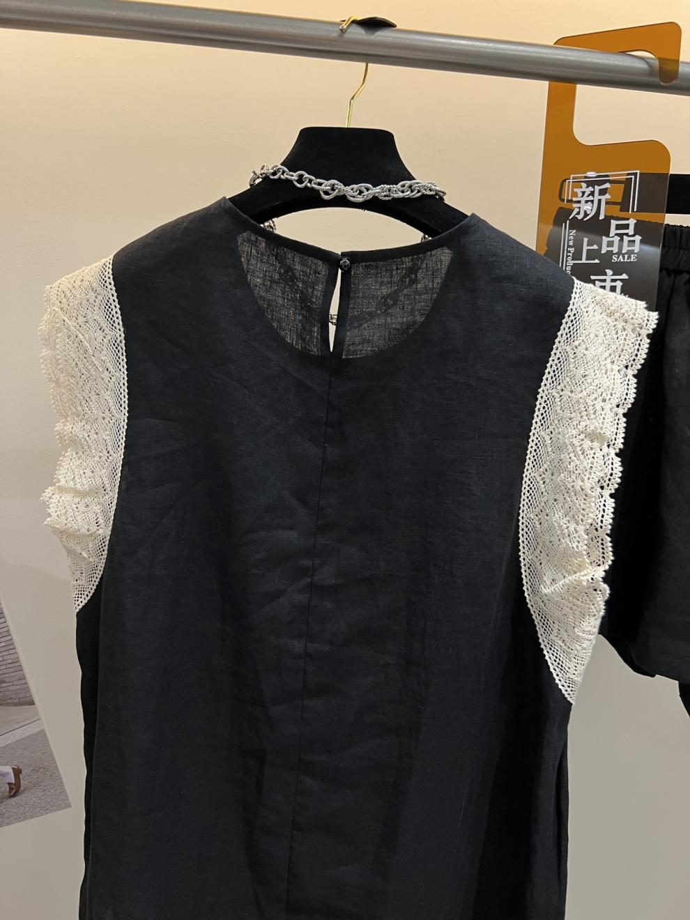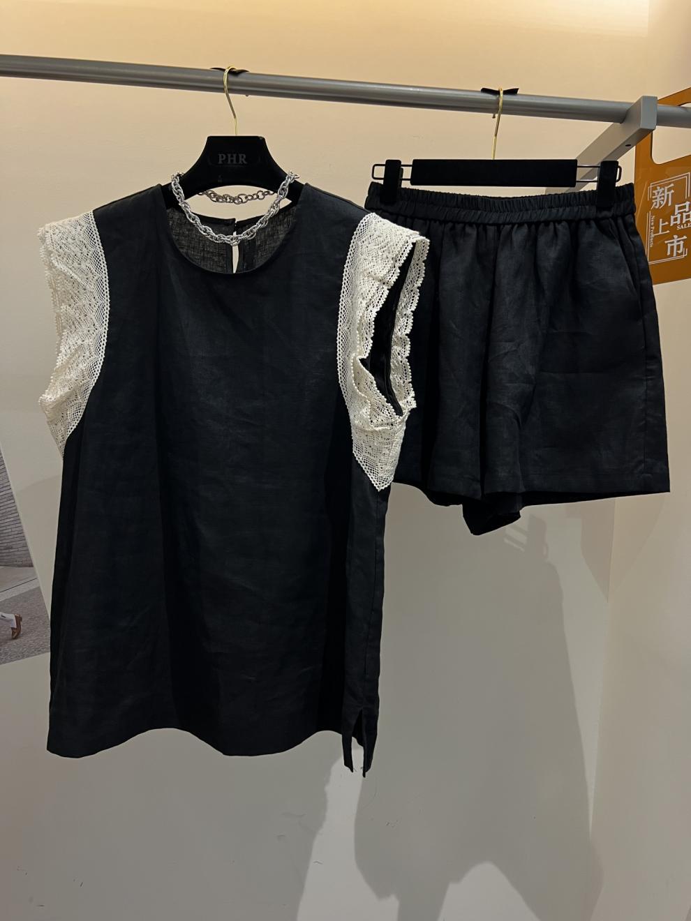Элитный европейский товар 2025: летний новый комплект для женщин с круглым вырезом, кружевными летящими рукавами, льняной жилет и шорты, повседневный костюм.