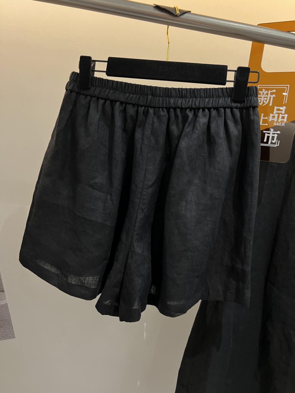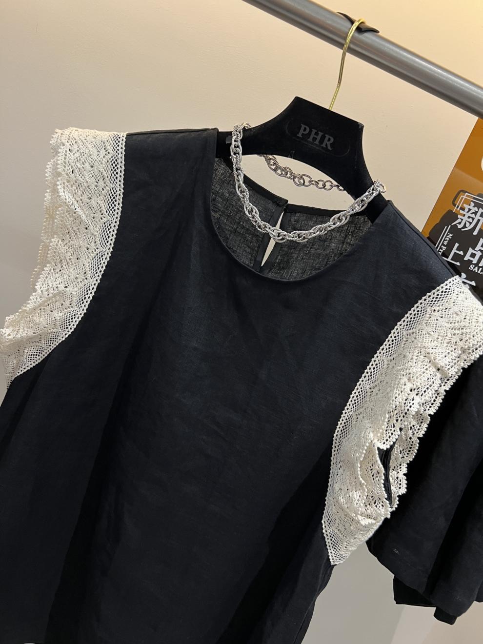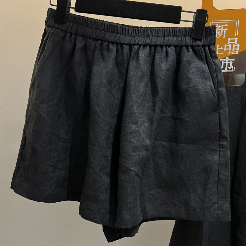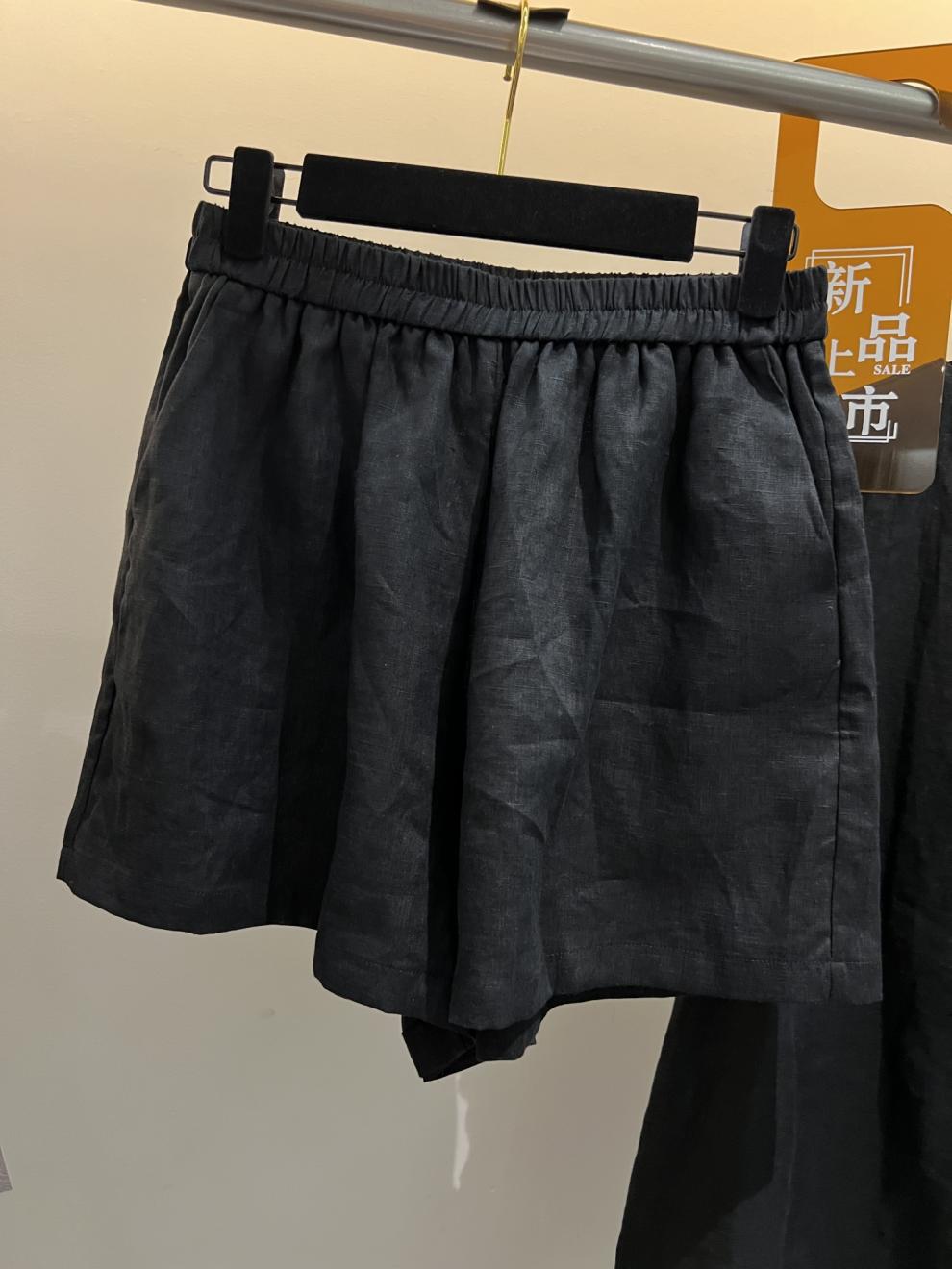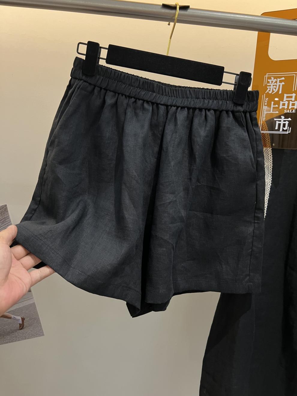 Элитный европейский товар 2025: летний новый комплект для женщин с круглым вырезом, кружевными летящими рукавами, льняной жилет и шорты, повседневный костюм.