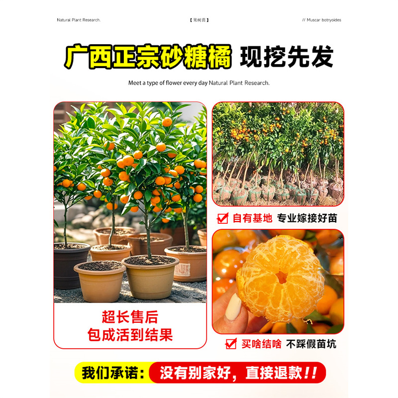 Сахарные апельсиновые саженцы, аутентичные фруктовые саженцы сахарного апельсина Гуанси, золотистые осенние без씨드ные апельсиновые горшечные растения, посаженные на юге и севере.