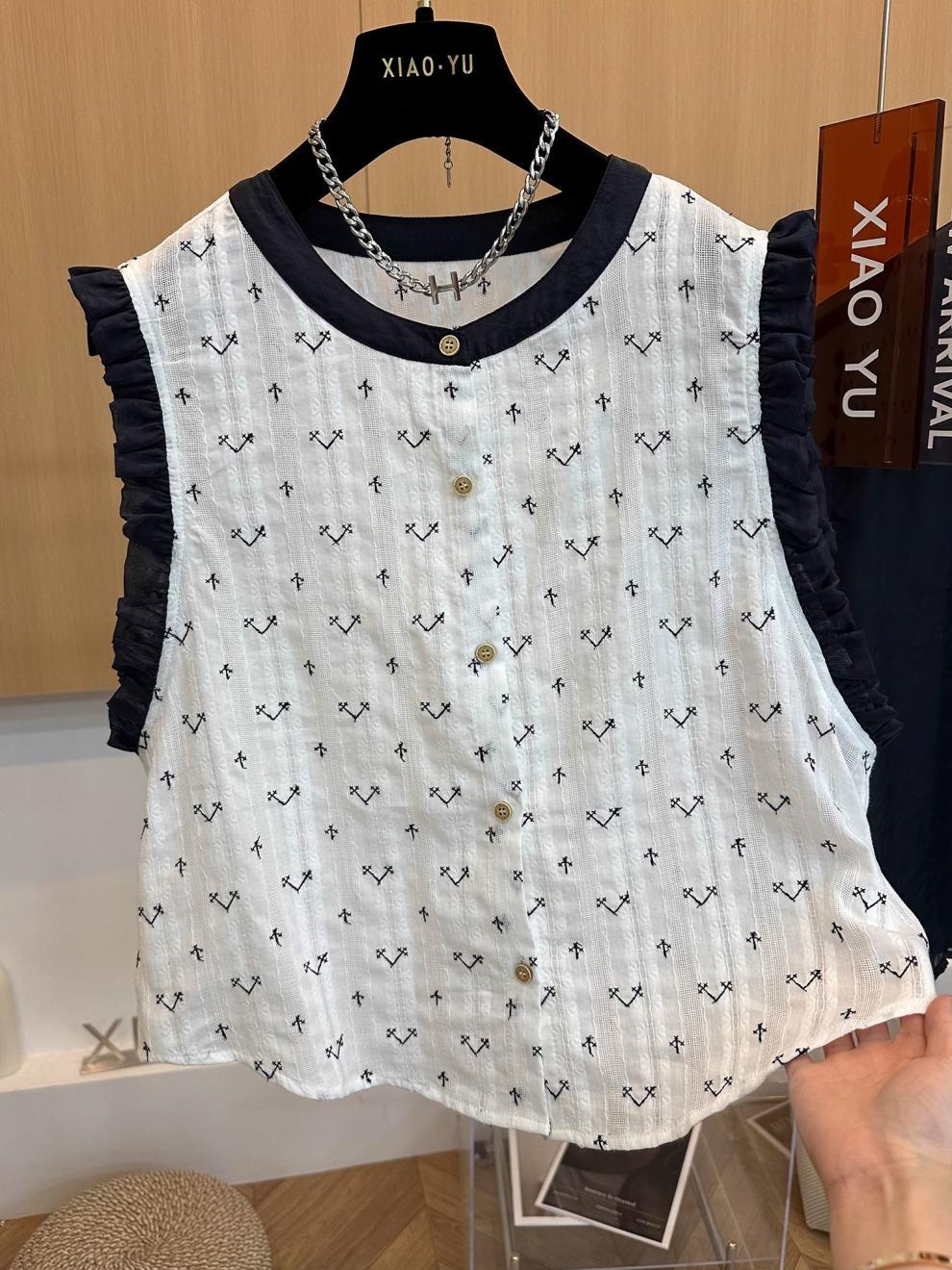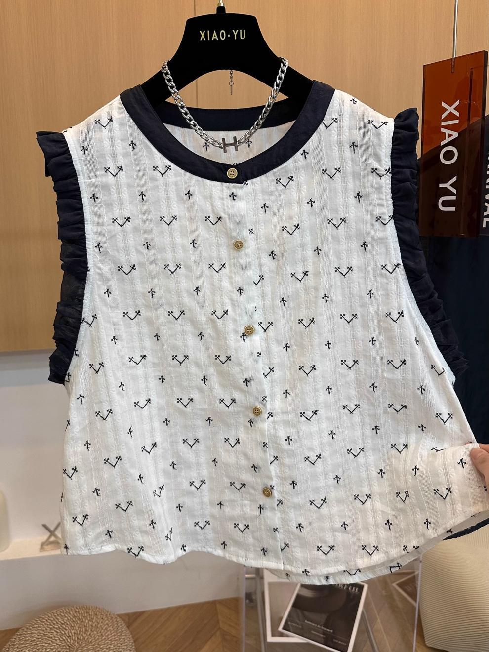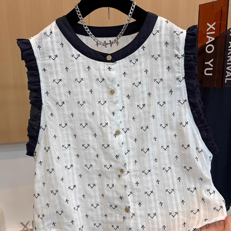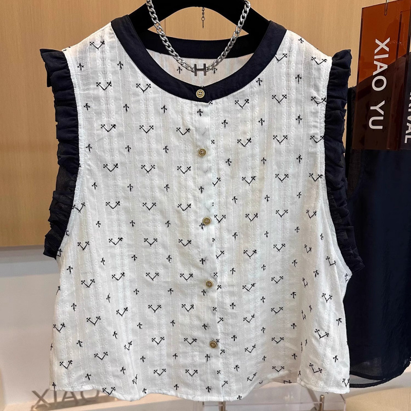 Европейская летняя новая модная однобортная рубашка без рукавов с круглым вырезом и принтом грибов, топ