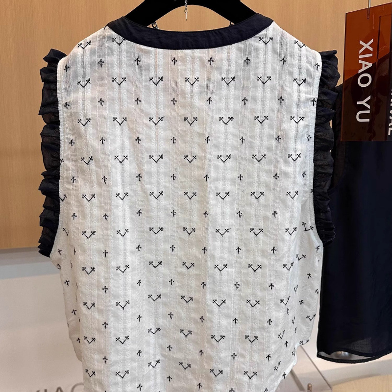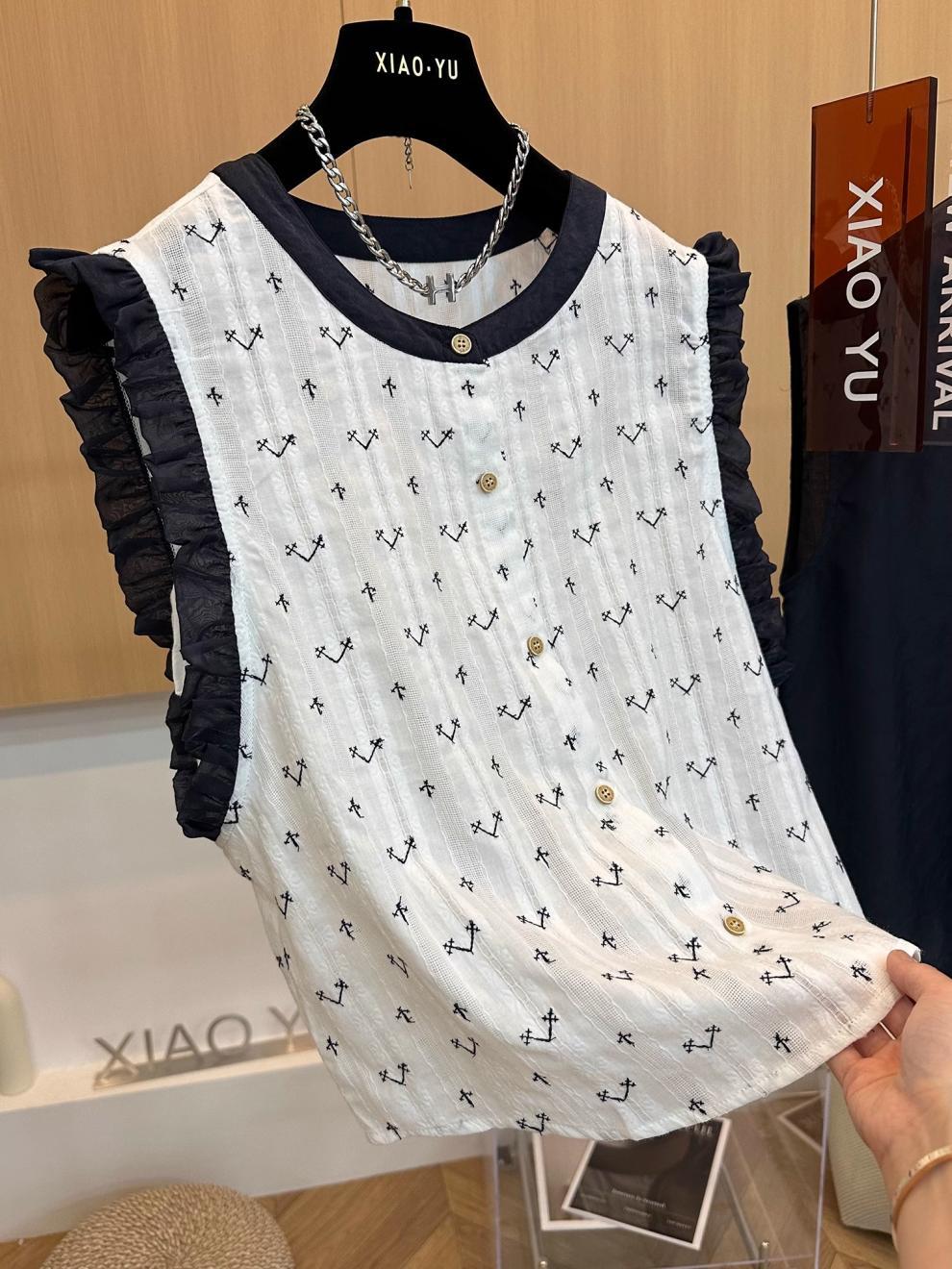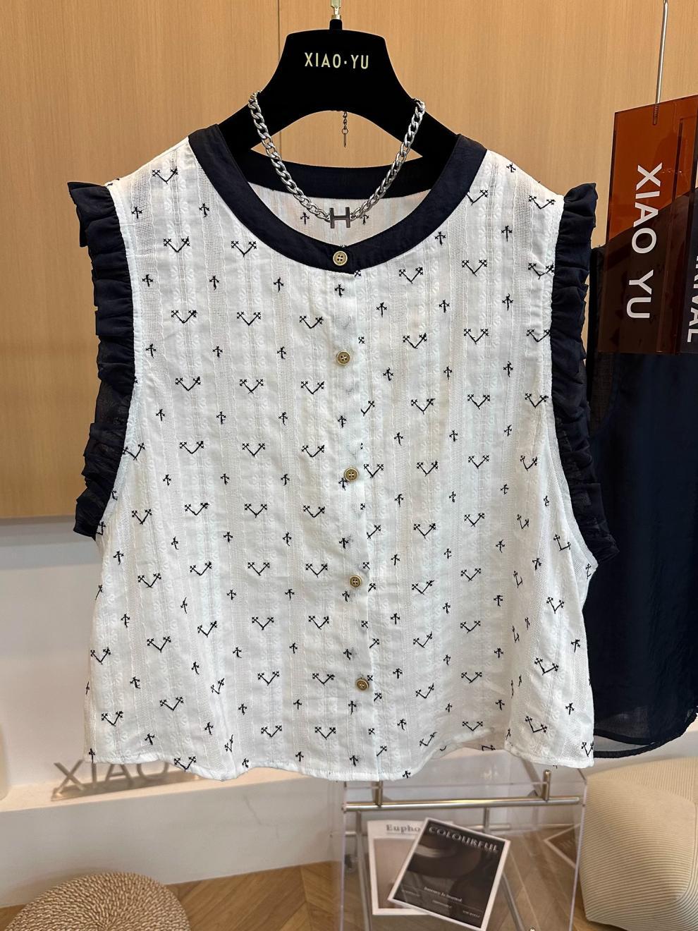 Европейская летняя новая модная однобортная рубашка без рукавов с круглым вырезом и принтом грибов, топ