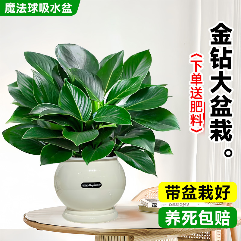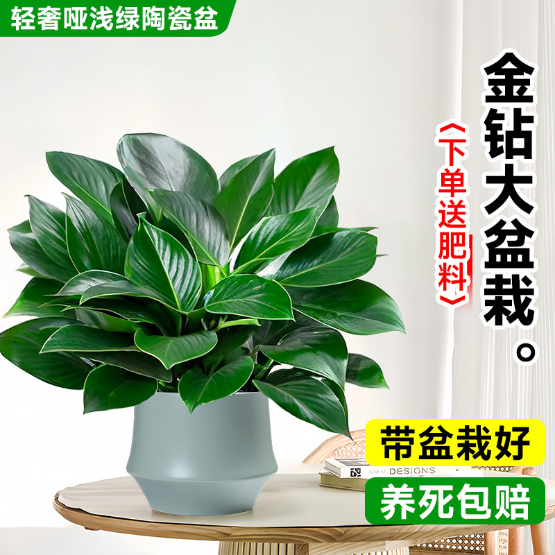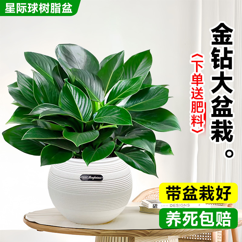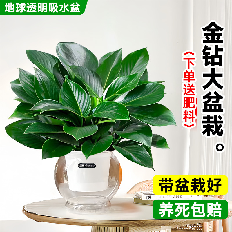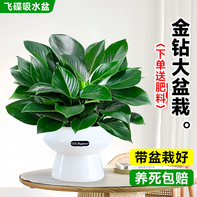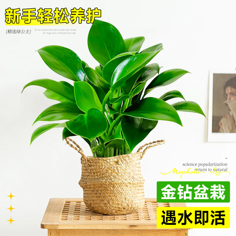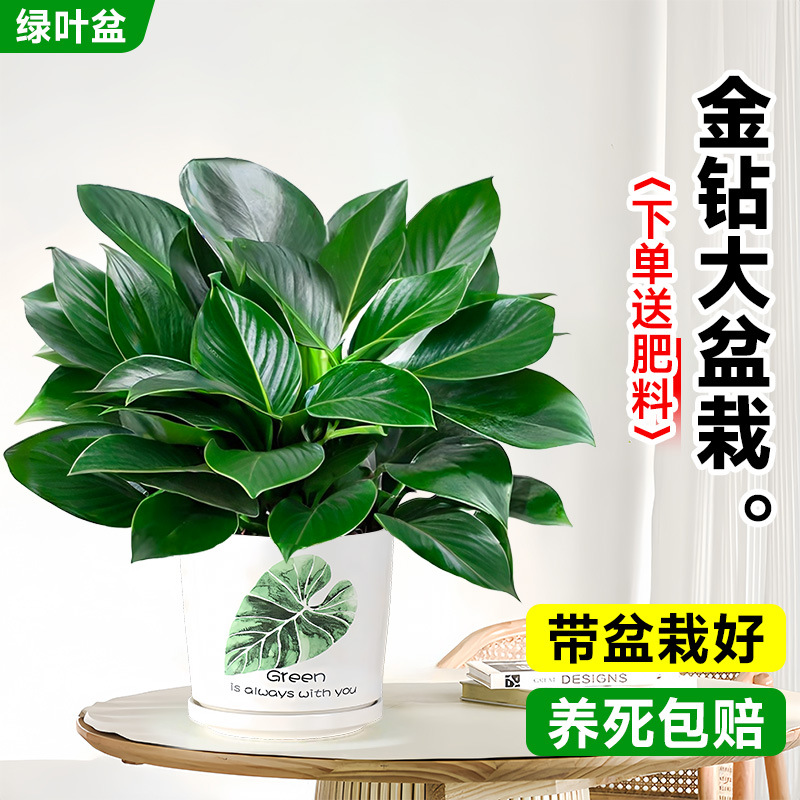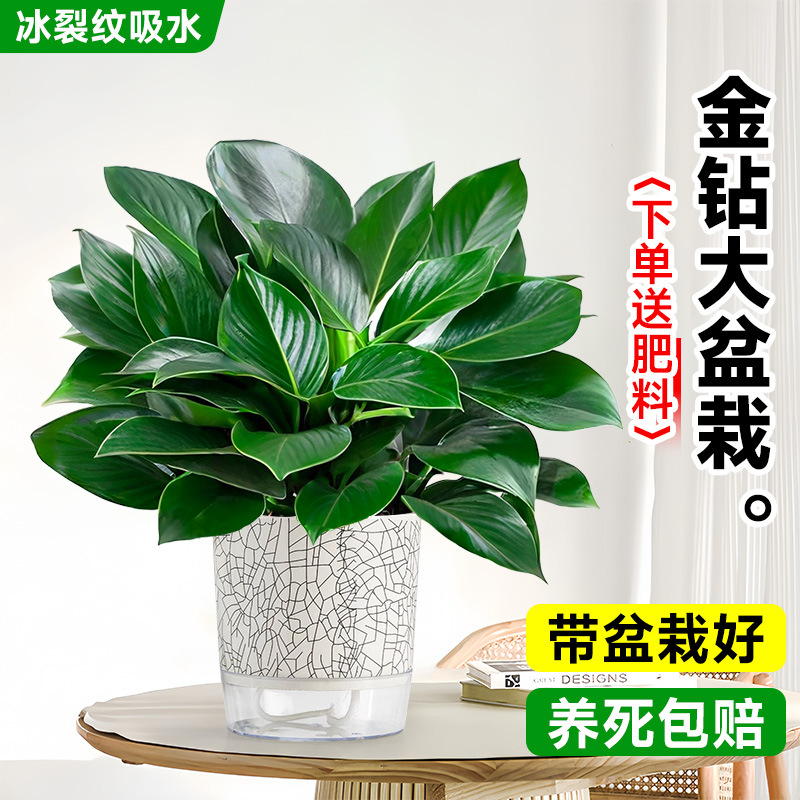 Большой горшок с золотисто-алмазно-зеленым горшком принцессы, поглощающим формальдегид королевским зеленым растением, легко поддерживать в помещении в любое время года, крупнолистовое гидропонное растение.