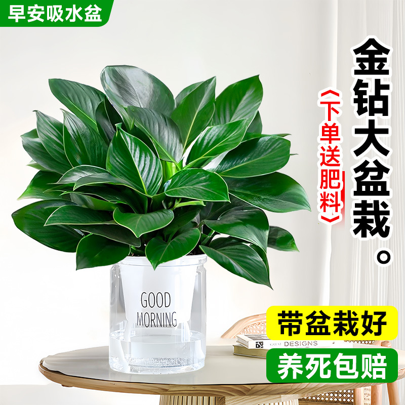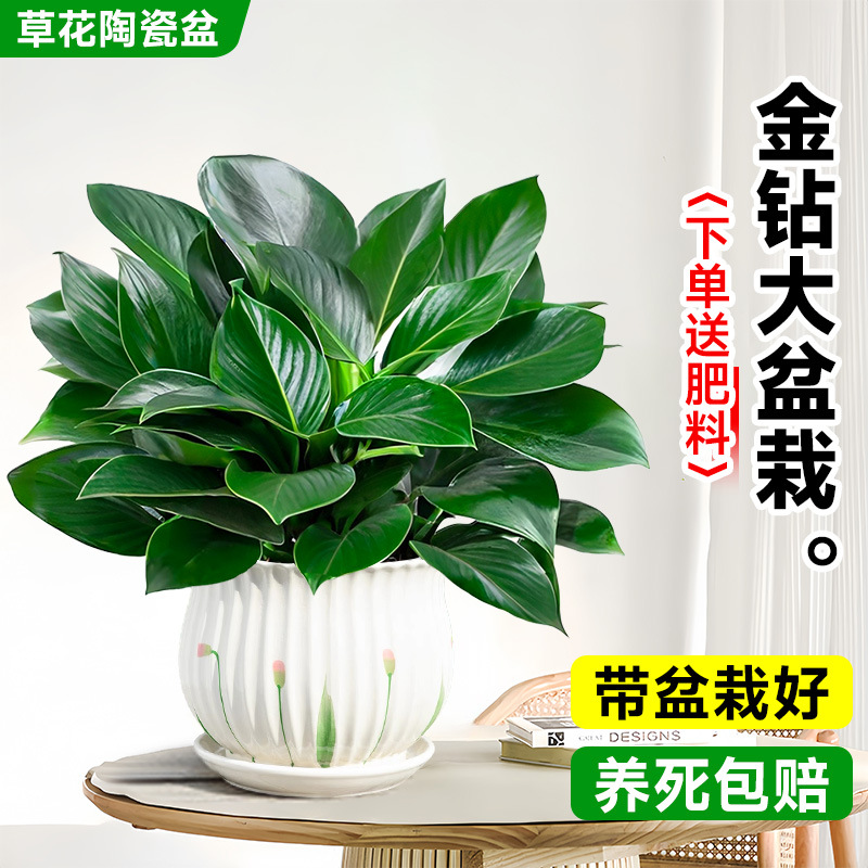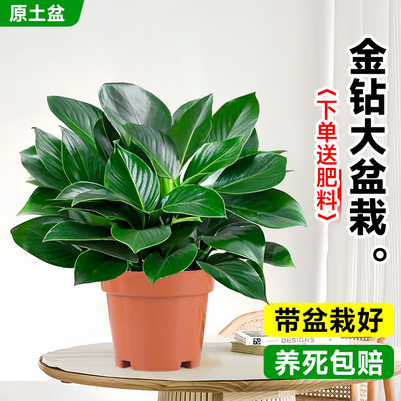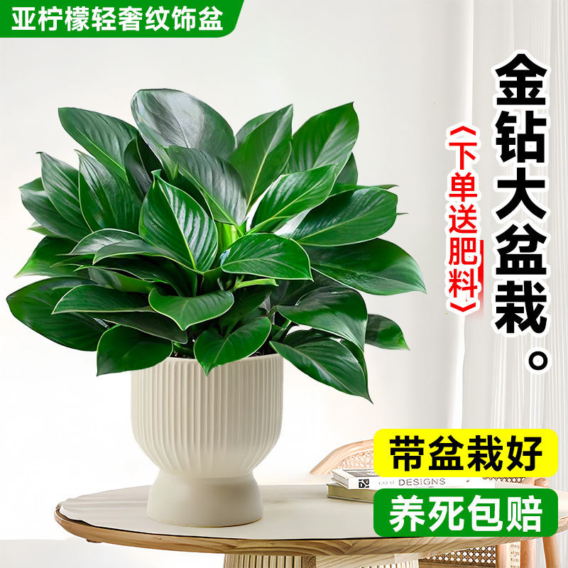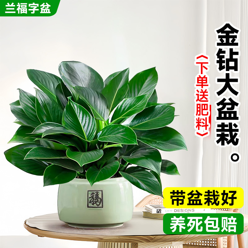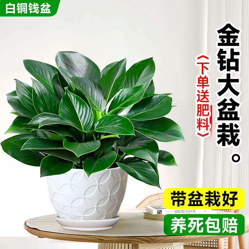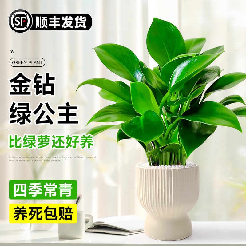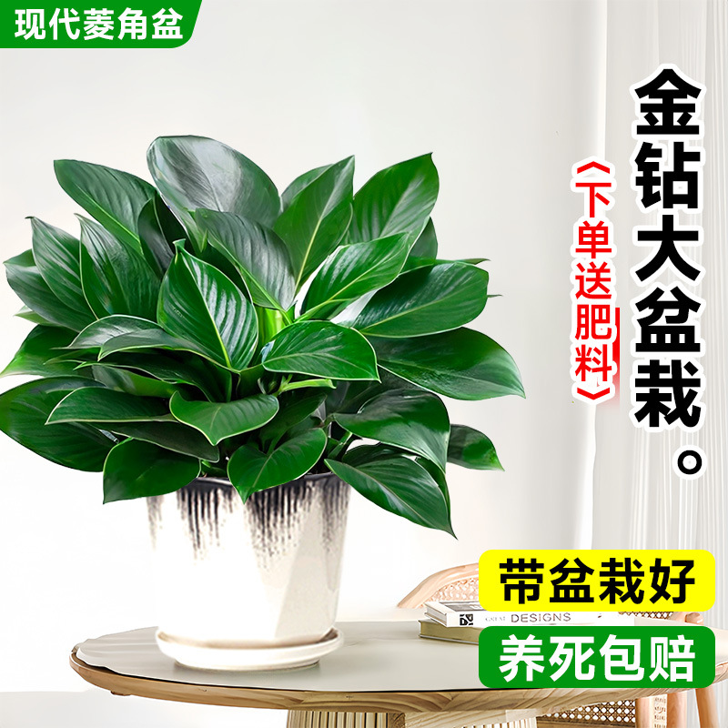 Большой горшок с золотисто-алмазно-зеленым горшком принцессы, поглощающим формальдегид королевским зеленым растением, легко поддерживать в помещении в любое время года, крупнолистовое гидропонное растение.