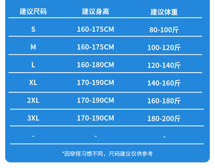 С【 40-50kg 】; М【 50-60kg 】; Л【 60-70kg 】; ХЛ【 70-80kg 】; 2XL【 80-90kg 】; 3XL【 90-100kg 】
