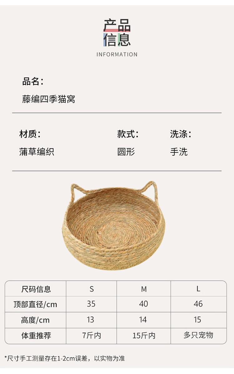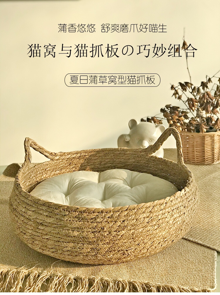 Кошачье гнездо из ротанга, универсальное для всех сезонов, коврик для сна кошки, летняя доска для кошачьих когтей, летнее прохладное гнездо, съемный и моющийся Beiqin