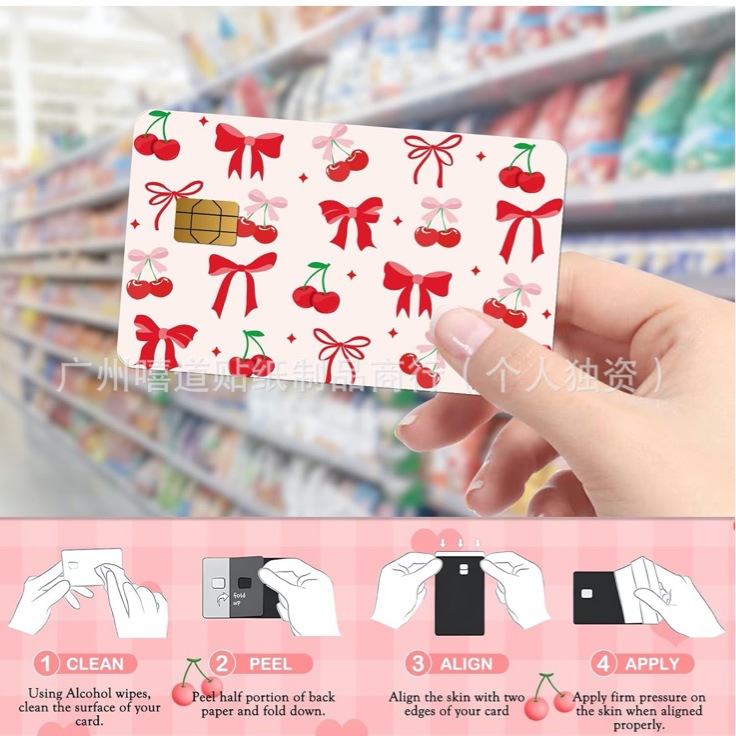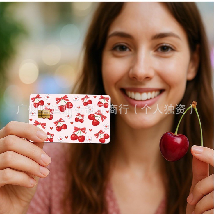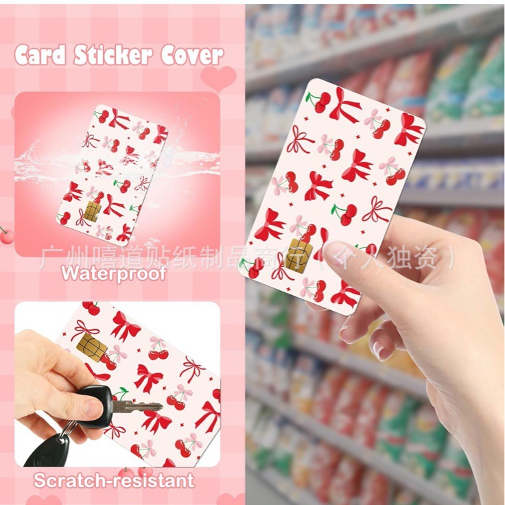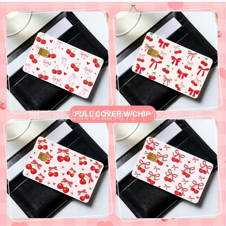 Трансграничная красная вишневая наклейка на дебетовую карту с бантом, банковская карта, кредитная карта, вишневое украшение, 4 разных стиля