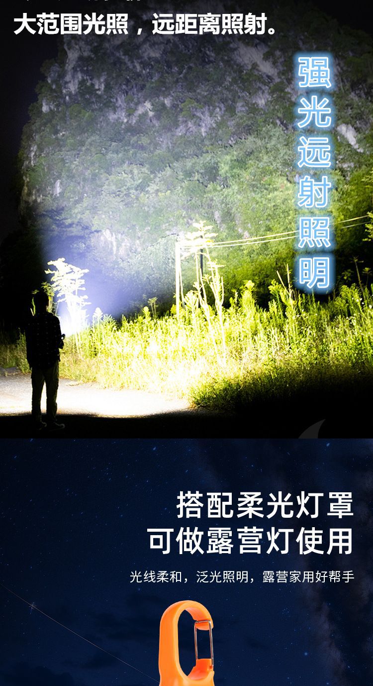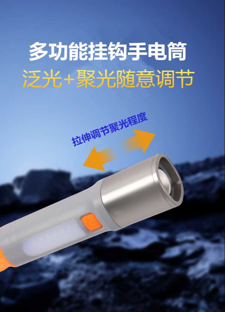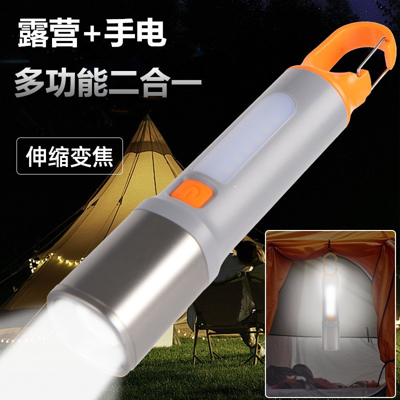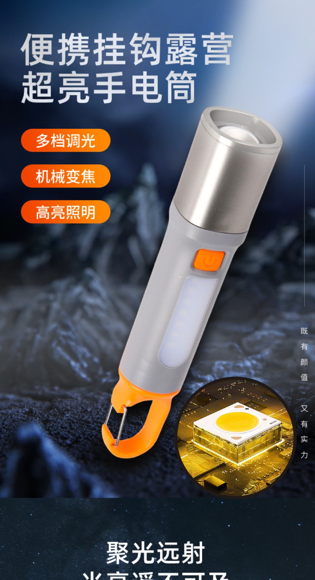 Трансграничный светодиодный фонарик, сильный свет, уличная зарядка, ультра-яркий USB-телескопический фокус, аварийный бытовой крючок, походный светильник