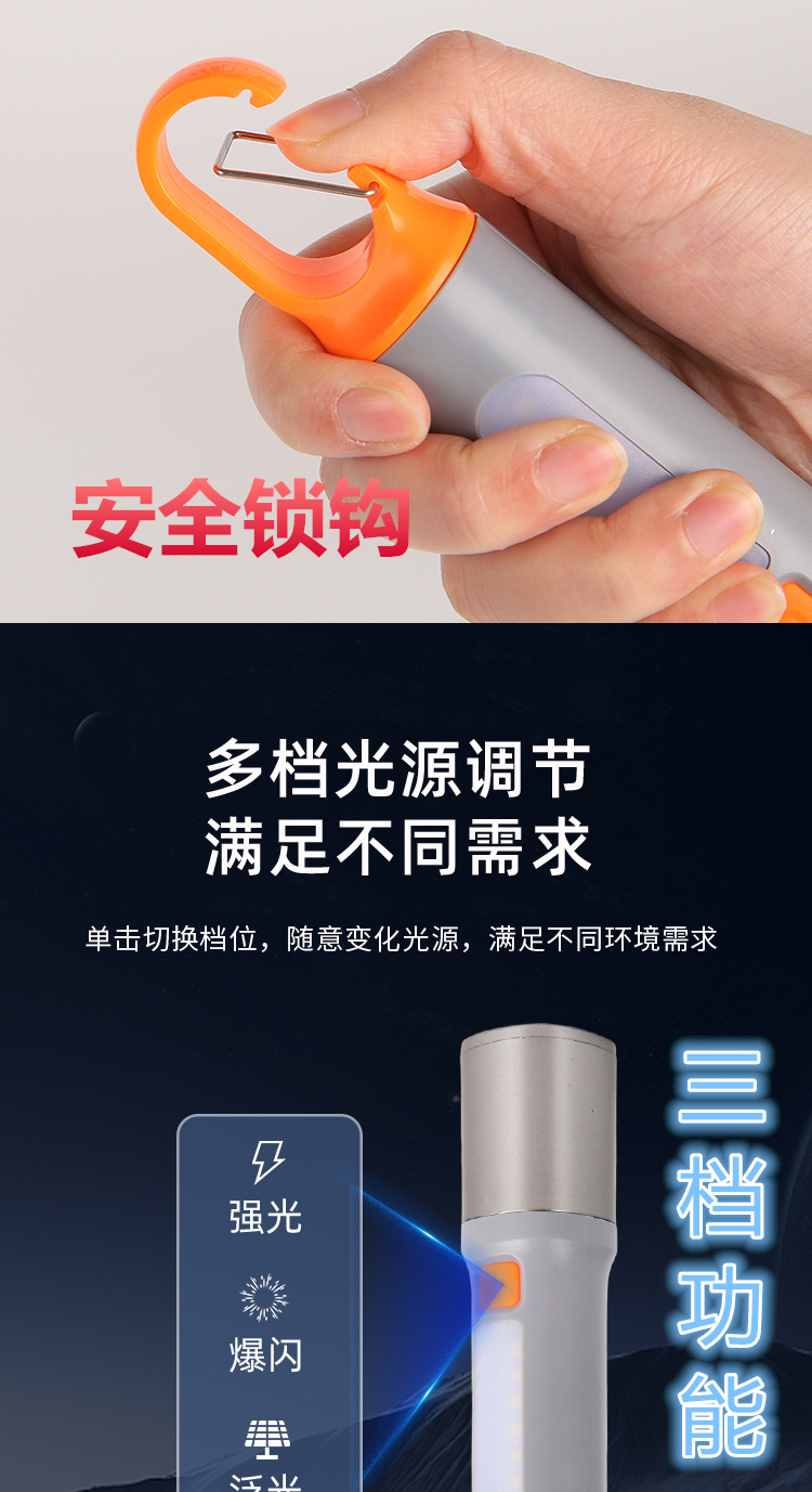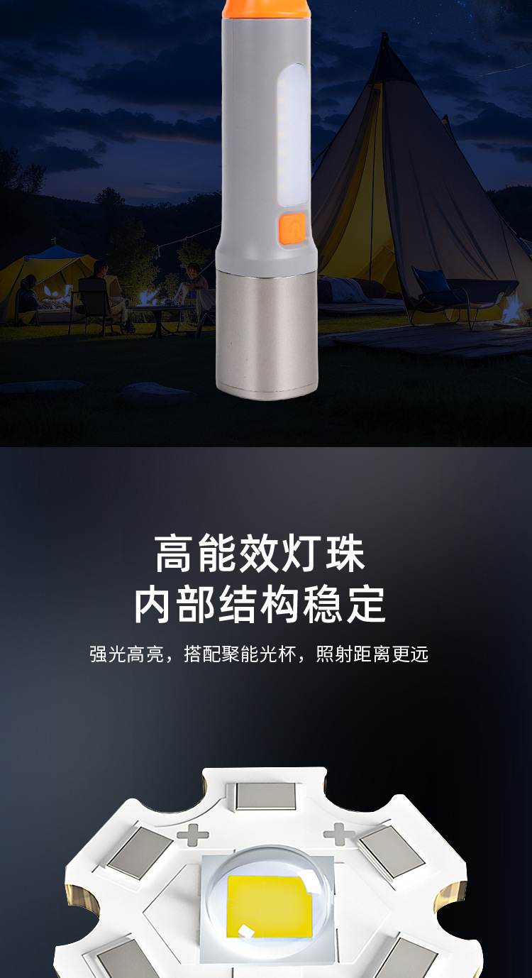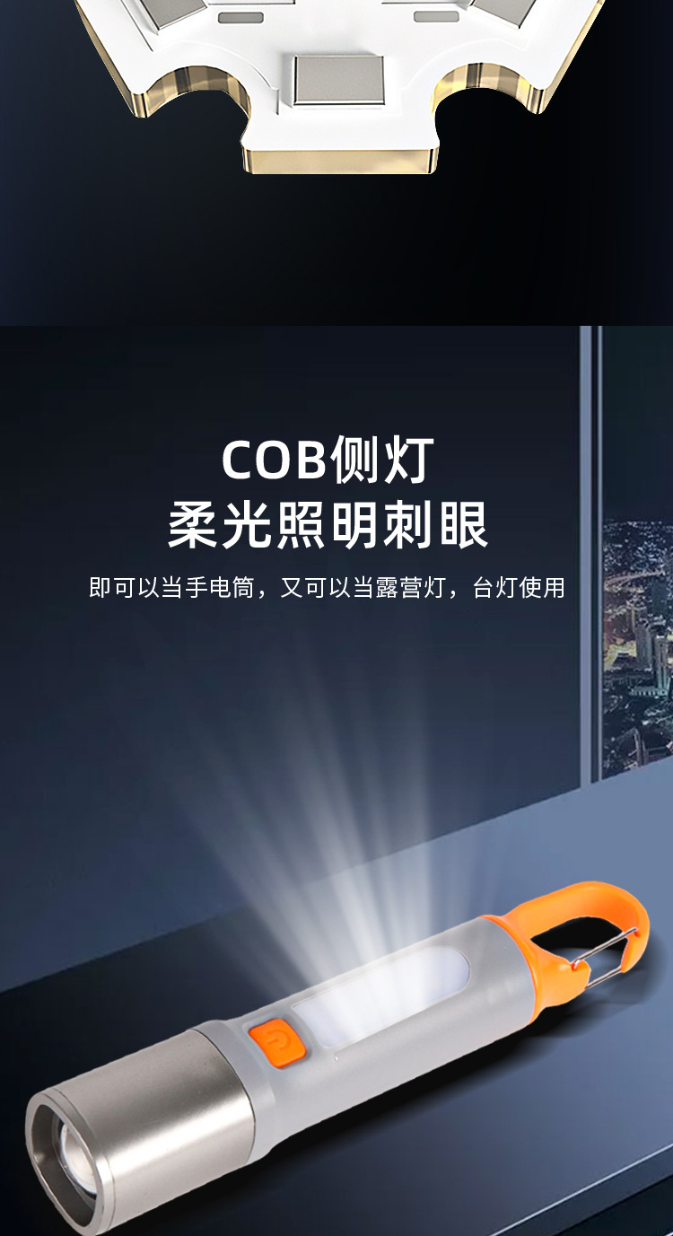 Трансграничный светодиодный фонарик, сильный свет, уличная зарядка, ультра-яркий USB-телескопический фокус, аварийный бытовой крючок, походный светильник