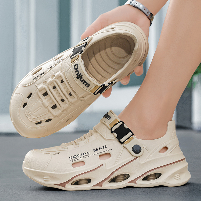 Мужская летняя верхняя одежда Croc Shoes, дышащие полые сандалии «все включено», молодежные спортивные сандалии для вождения на открытом воздухе