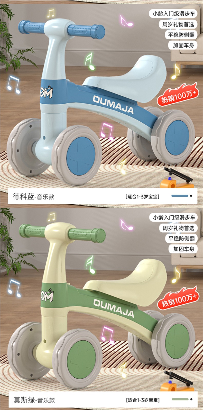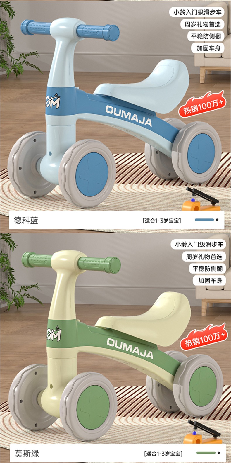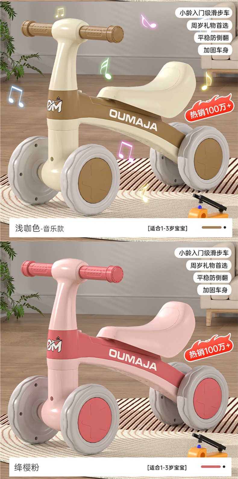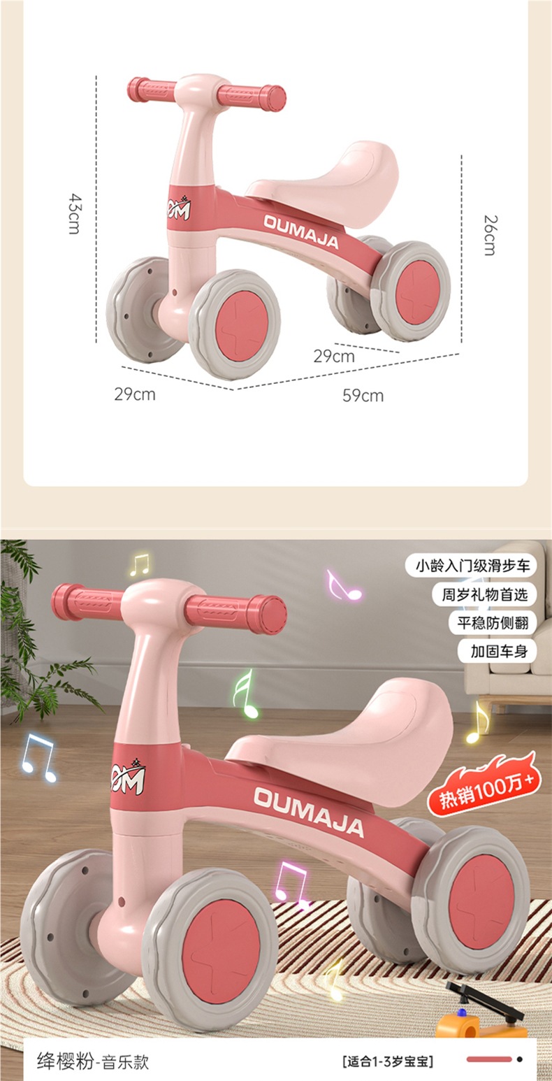 Детский балансировочный велосипед для детей 1-3 лет без педалей, ходунки-самокат, четырехколесная игрушечная машинка, можно сидеть на коляске