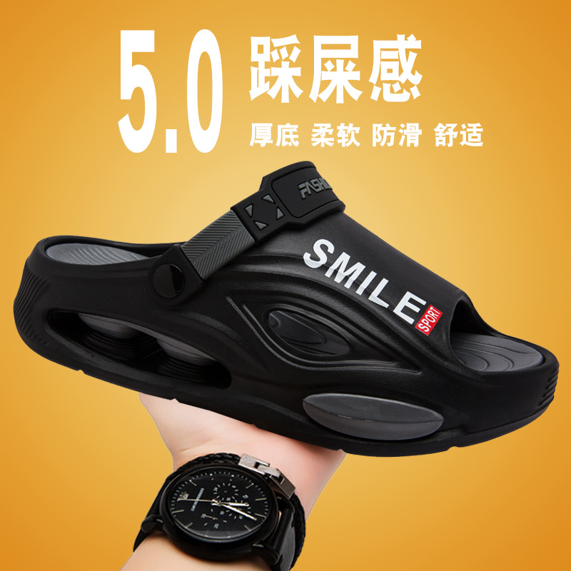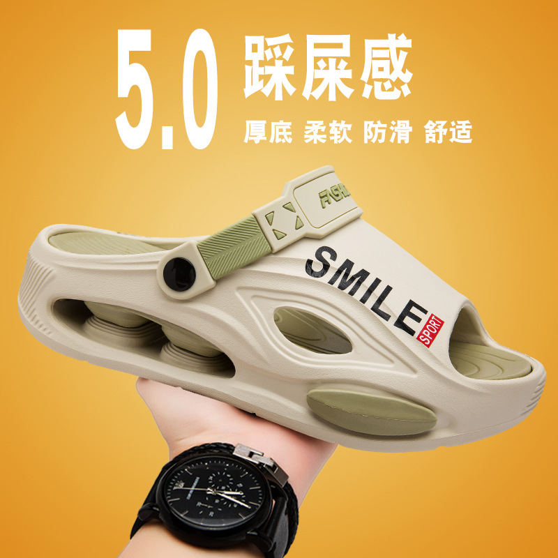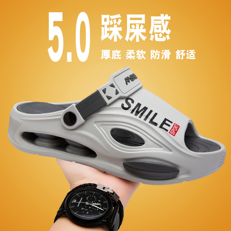 Мужские летние тапочки, нескользящие сандалии на толстой подошве, большие размеры, однотонные пляжные сандалии для вождения, модная обувь.