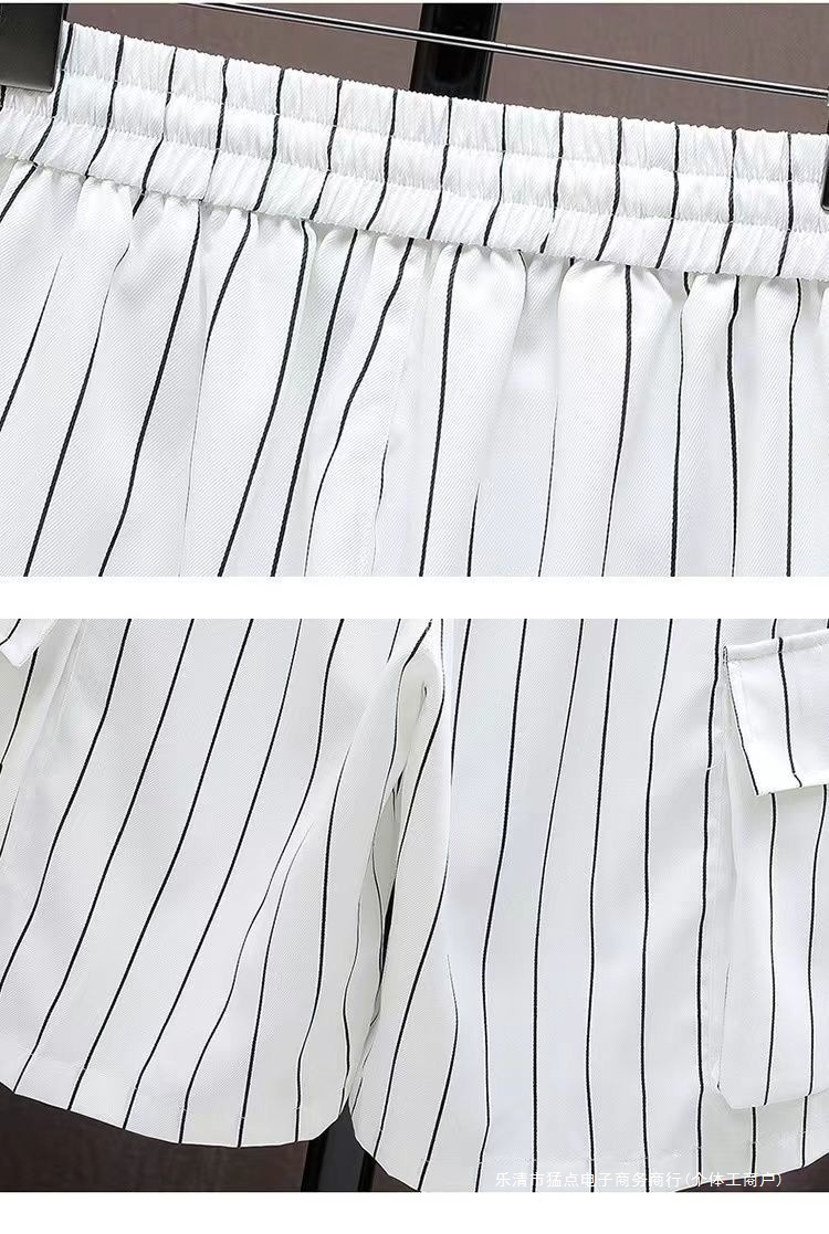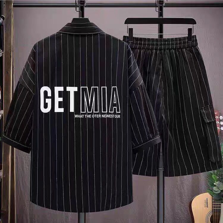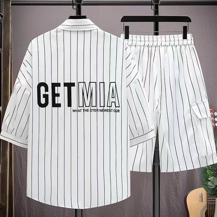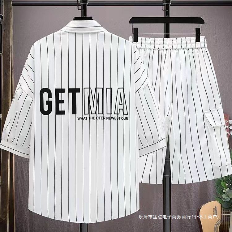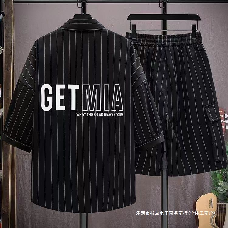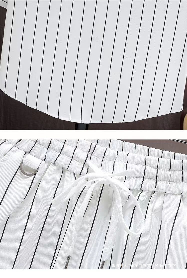 Летний полосатый мужской комплект: рубашка с коротким рукавом и шорты большого размера, стильный повседневный костюм