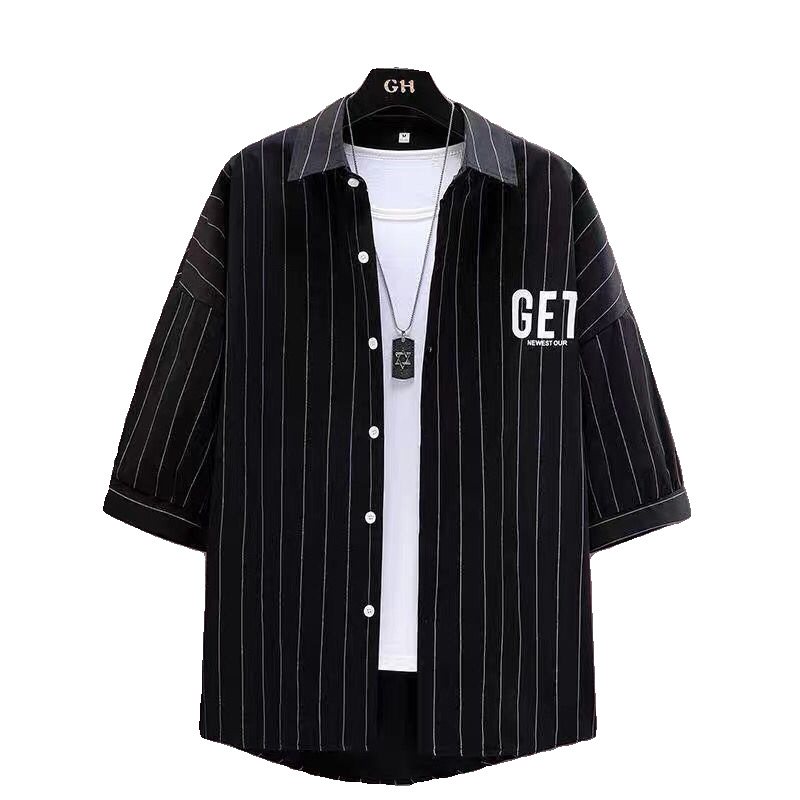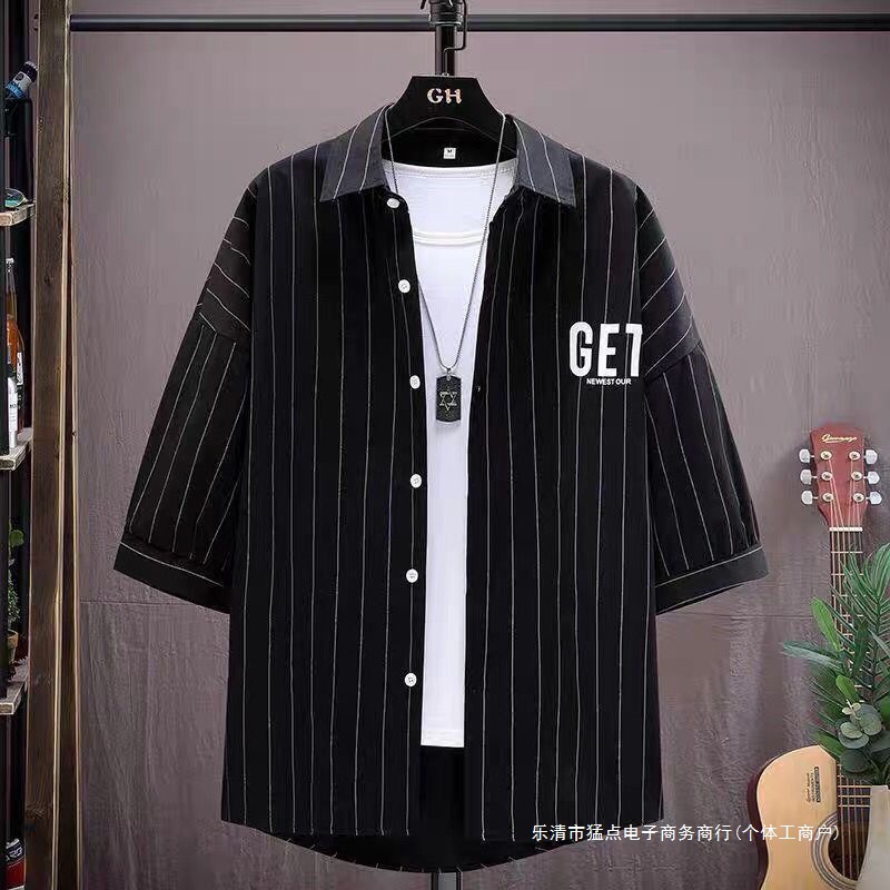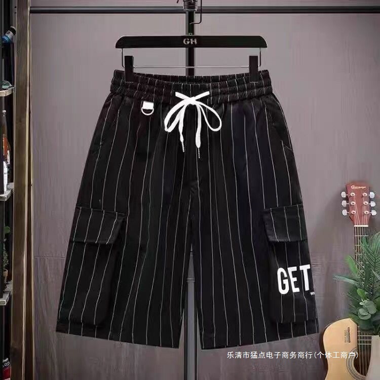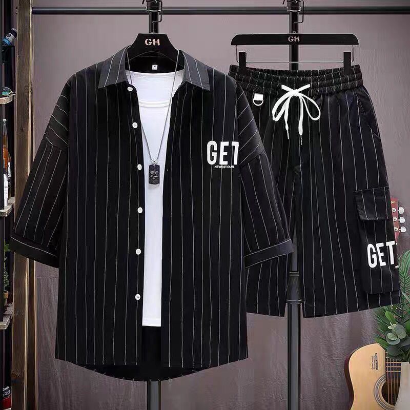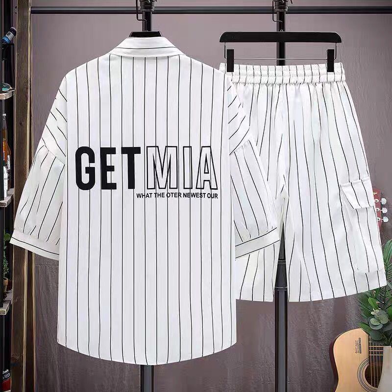Летний полосатый мужской комплект: рубашка с коротким рукавом и шорты большого размера, стильный повседневный костюм