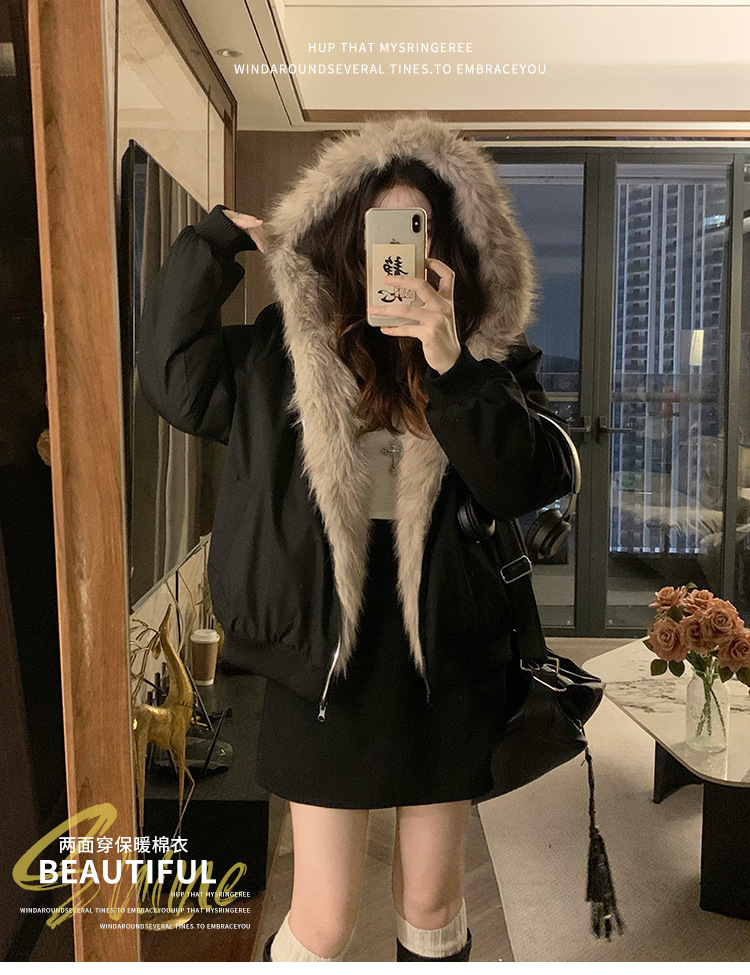 Американская ретро рабочая одежда с меховым воротником и капюшоном, короткая верхняя одежда для женщин, осенне-зимняя новая утолщенная плюшевая теплая хлопковая верхняя одежда