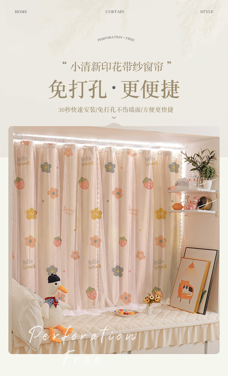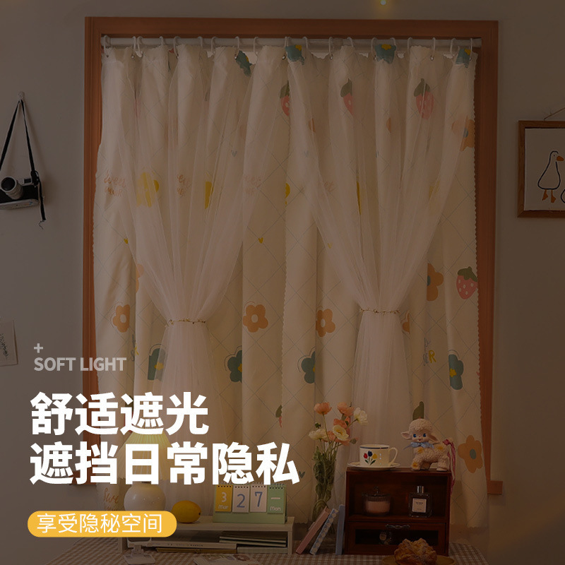 Простая штора для затемнения спальни без сверления с карнизом, полный комплект для небольших окон, ткань для покрытия эркера, занавеска для двери арендованной комнаты.