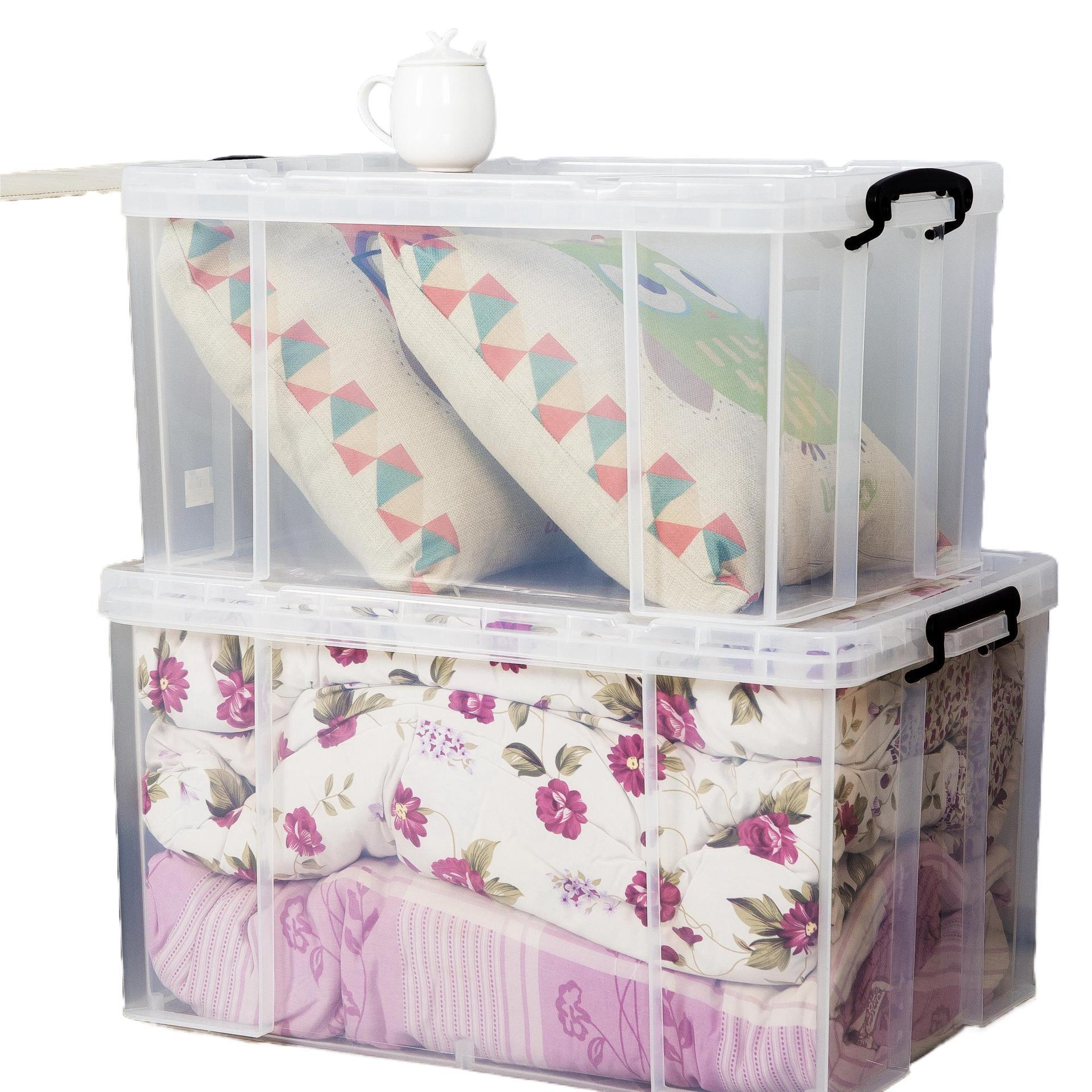 Прозрачный ящик для хранения, пластиковый ящик для хранения, ящик для хранения одежды, большой ящик для хранения одежды с крышкой