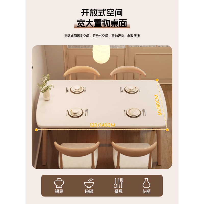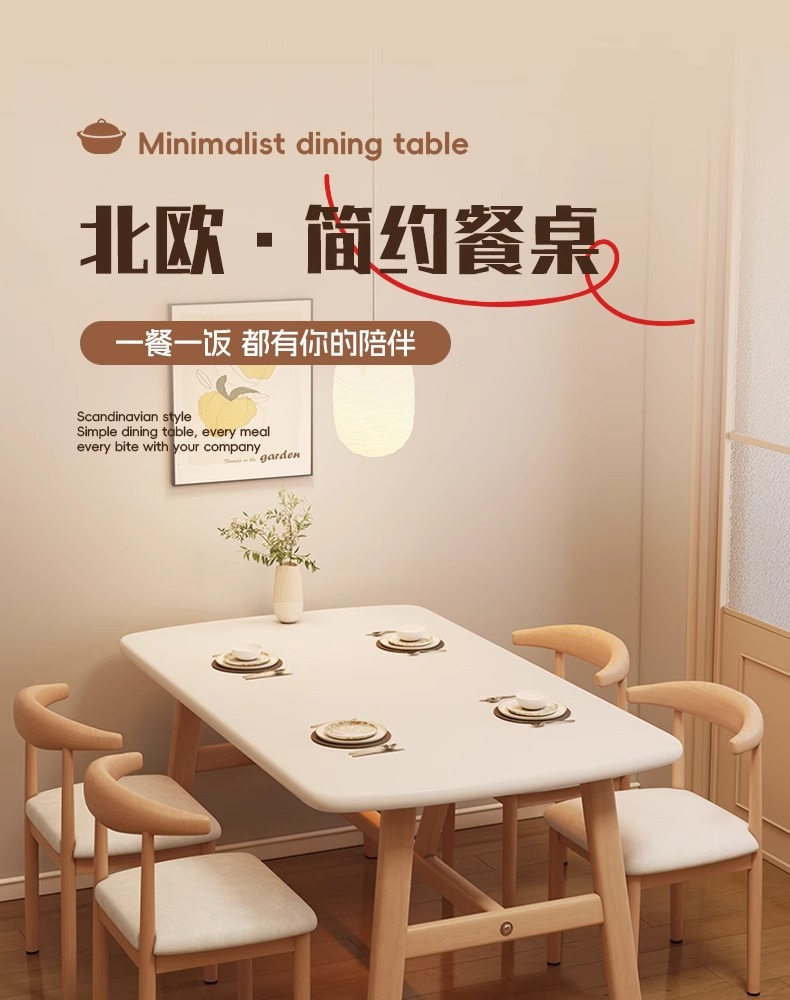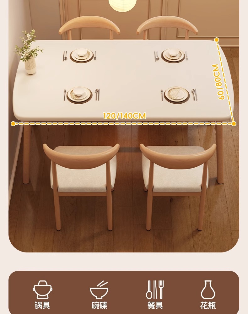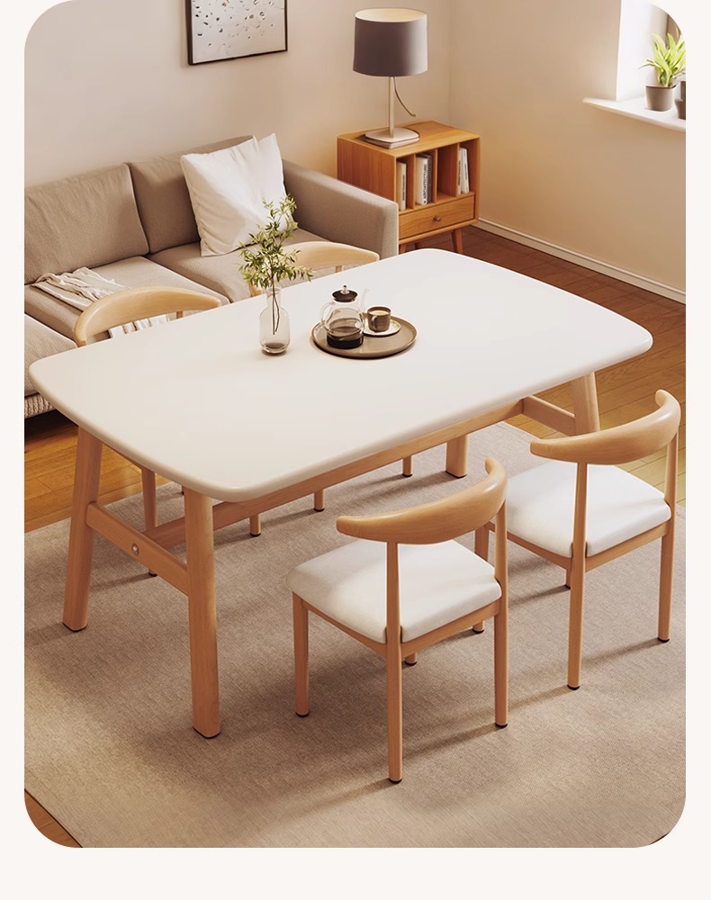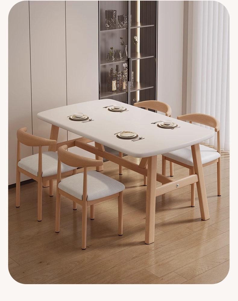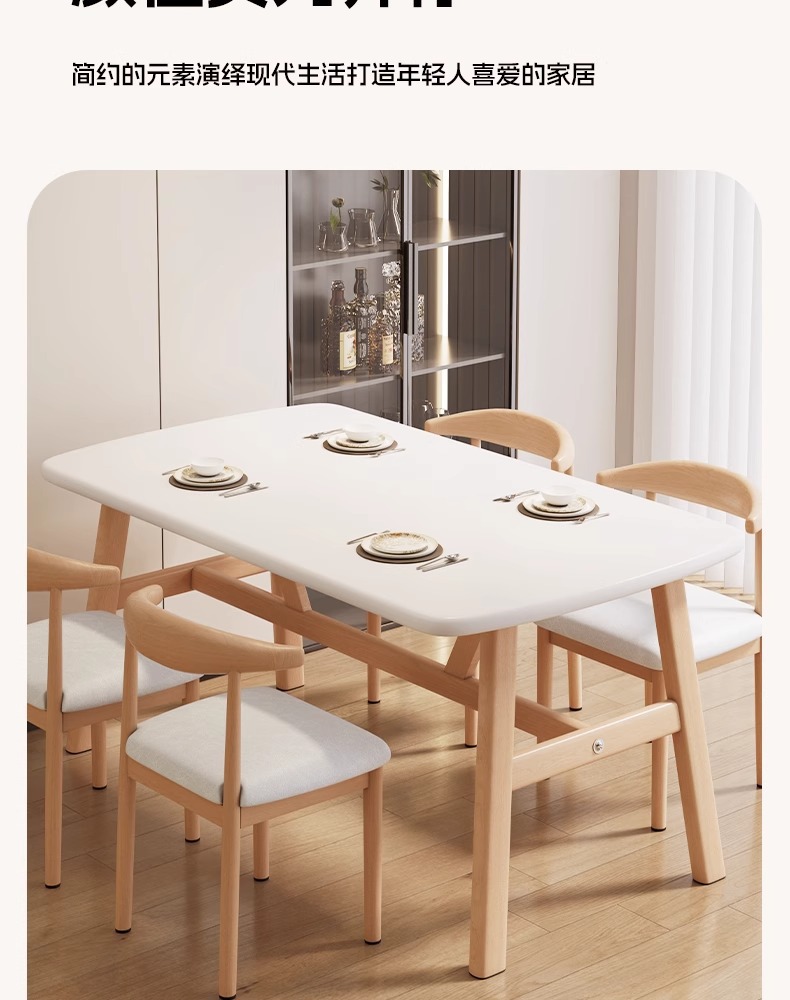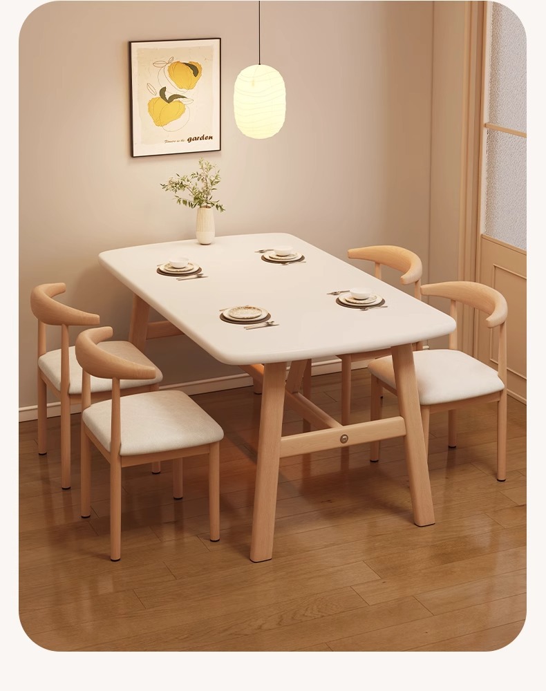Прямоугольный обеденный стол и набор стульев для домашнего использования в небольших квартирах, арендованных помещениях, столовых, коммерческих столовых и ресторанах быстрого питания.