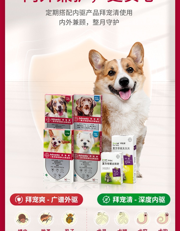 Baichongshuang 1,0 мл* 4 шт./кор. [для собак 4–10 кг]; Baichongshuang 1,0 мл, одиночная бутылка [на продажу]