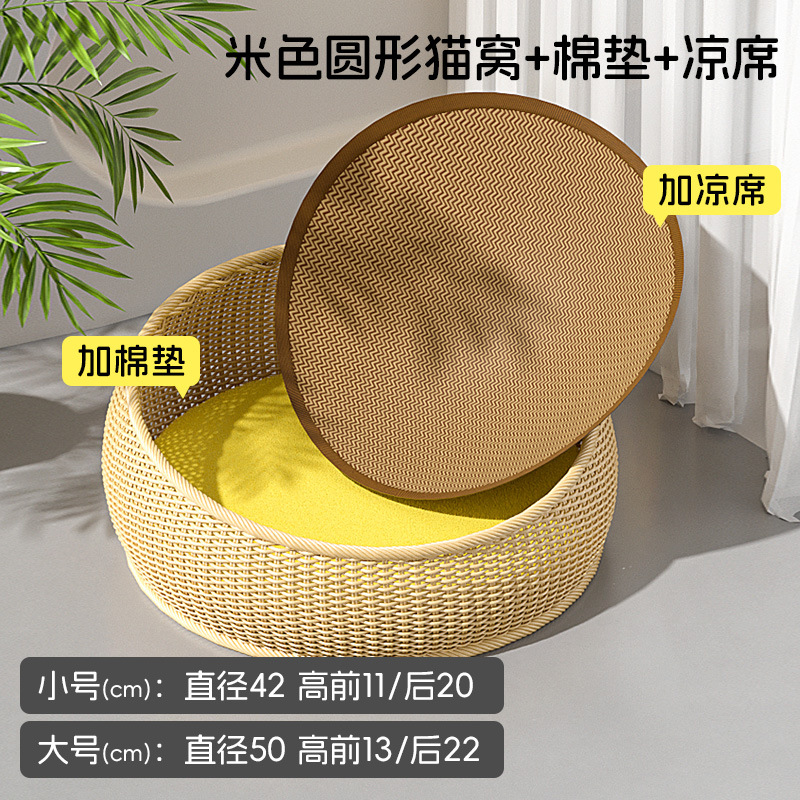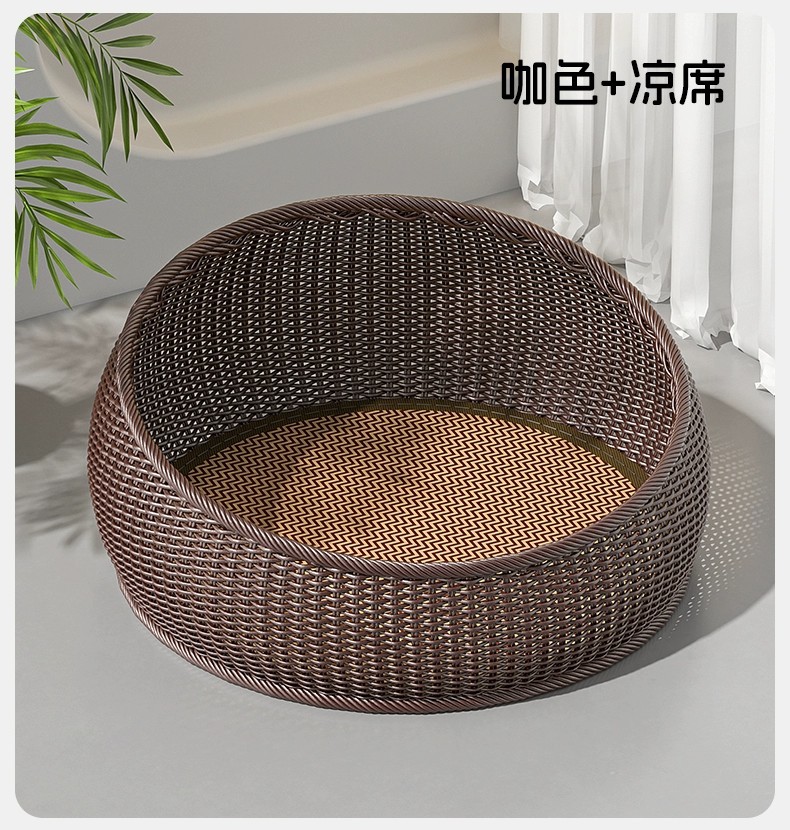 Трехмерный нераскладывающийся | Кошачье гнездо из ротанга, универсальное для всех сезонов, полузакрытая безопасная плетеная корзина, супер крутое гнездо летом