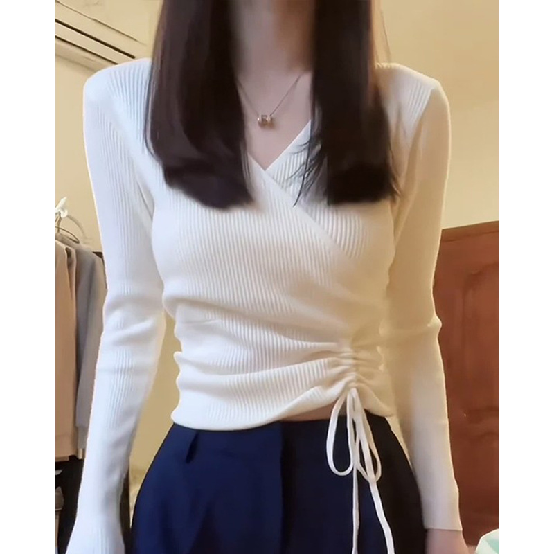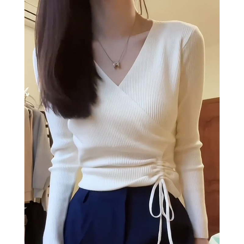 Женский трикотаж с V-образным вырезом, белый крест, осень-зима 2025, новая мода, сексуальный внутренний слой, высококачественный мягкий вощеный трикотаж