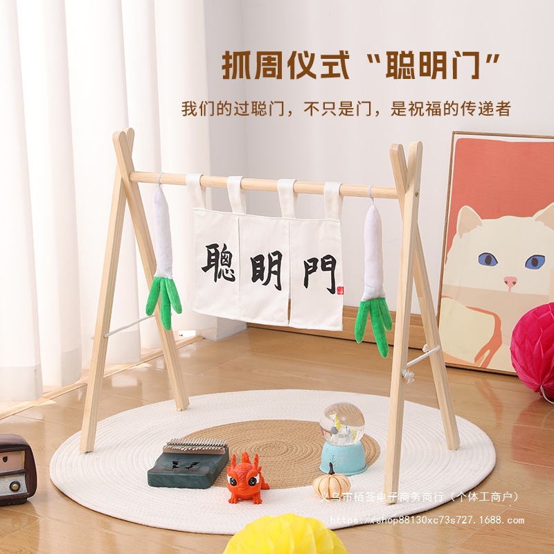 Набор креативных реквизитов для первого дня рождения малыша, включая игрушки и реквизит для прохождения через умную дверь.