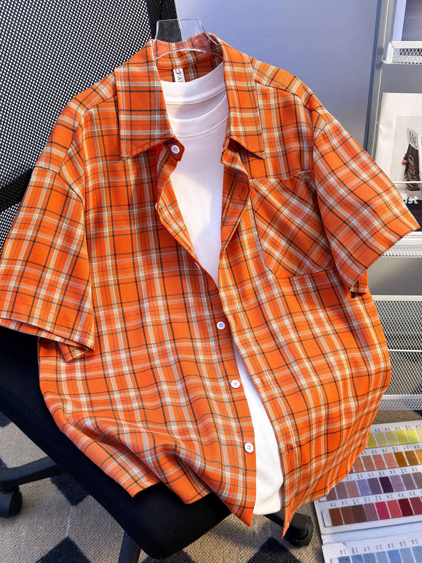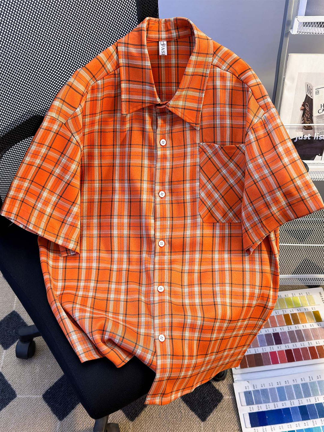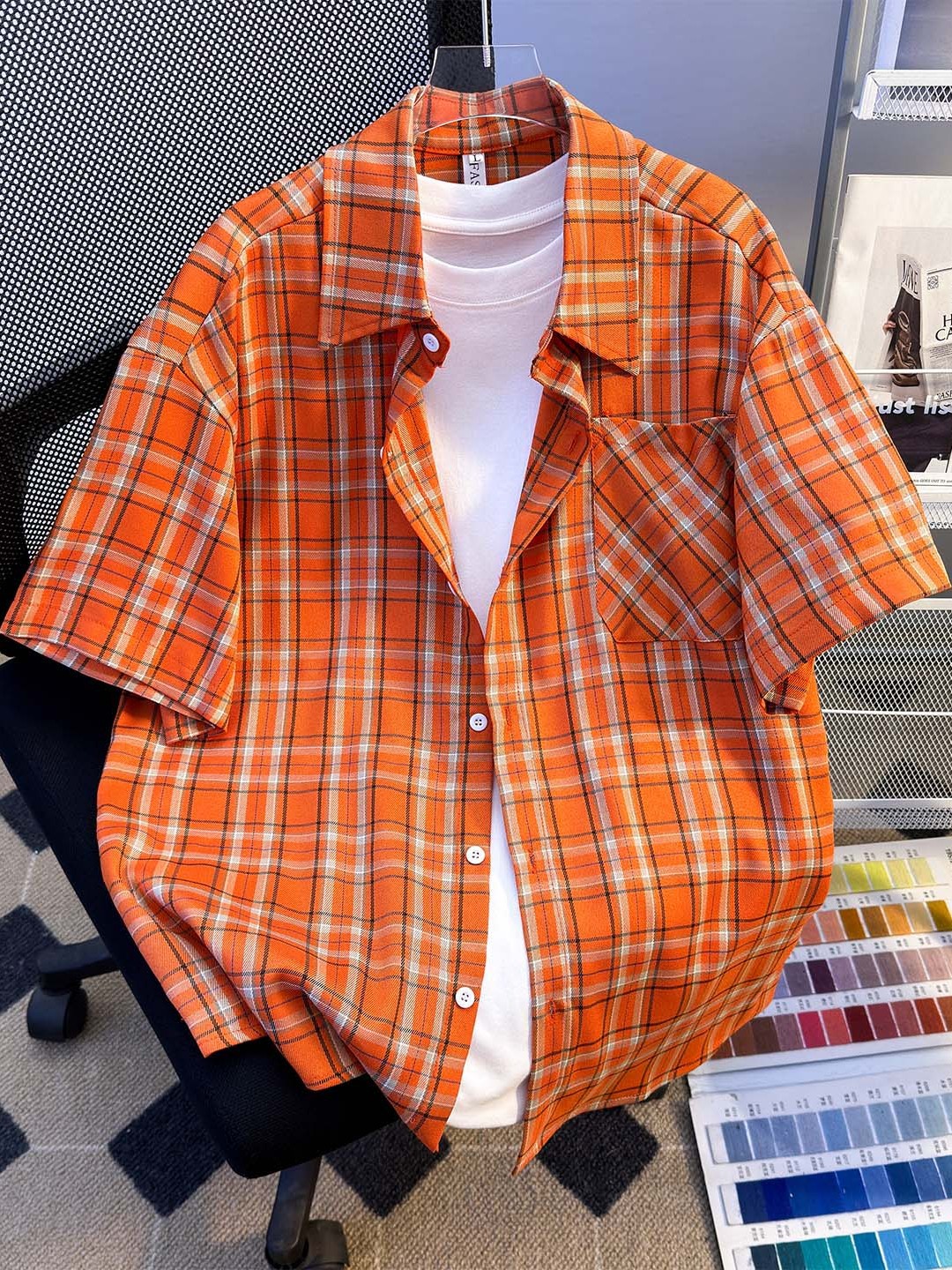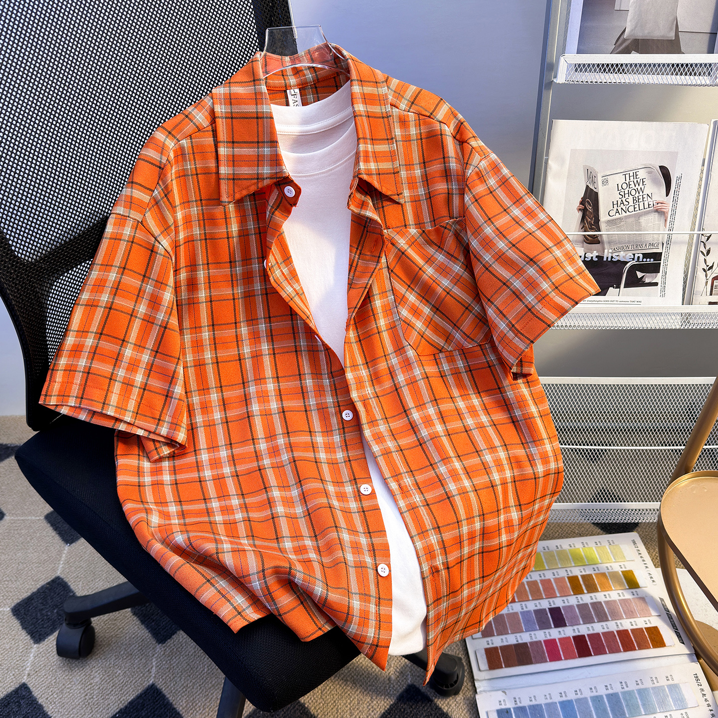 Летняя тонкая рубашка в клетку с коротким рукавом для мужчин, универсальная свободная повседневная модная брендовая спортивная молодежная рубашка в японском стиле 2025