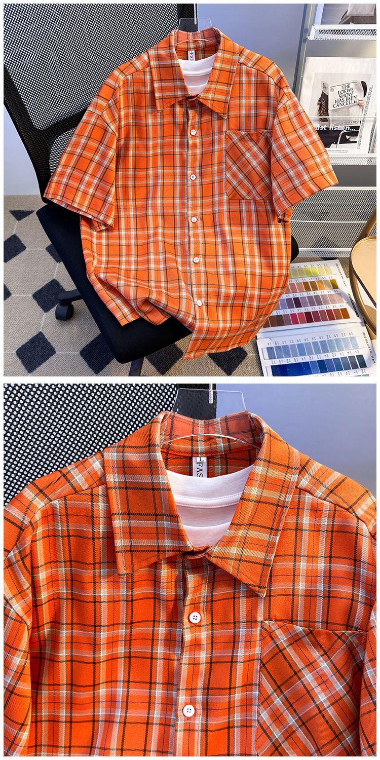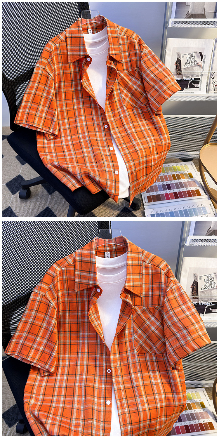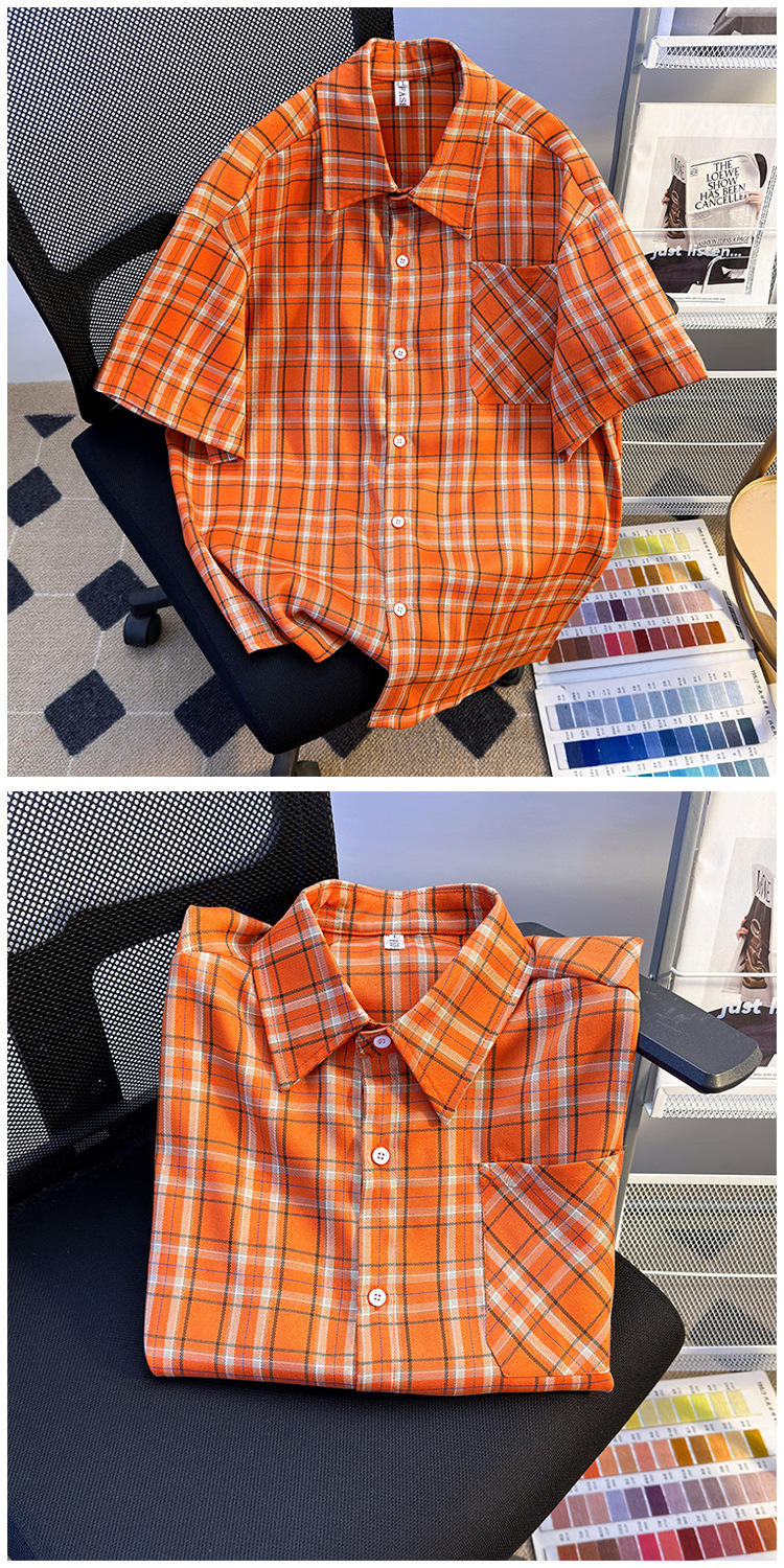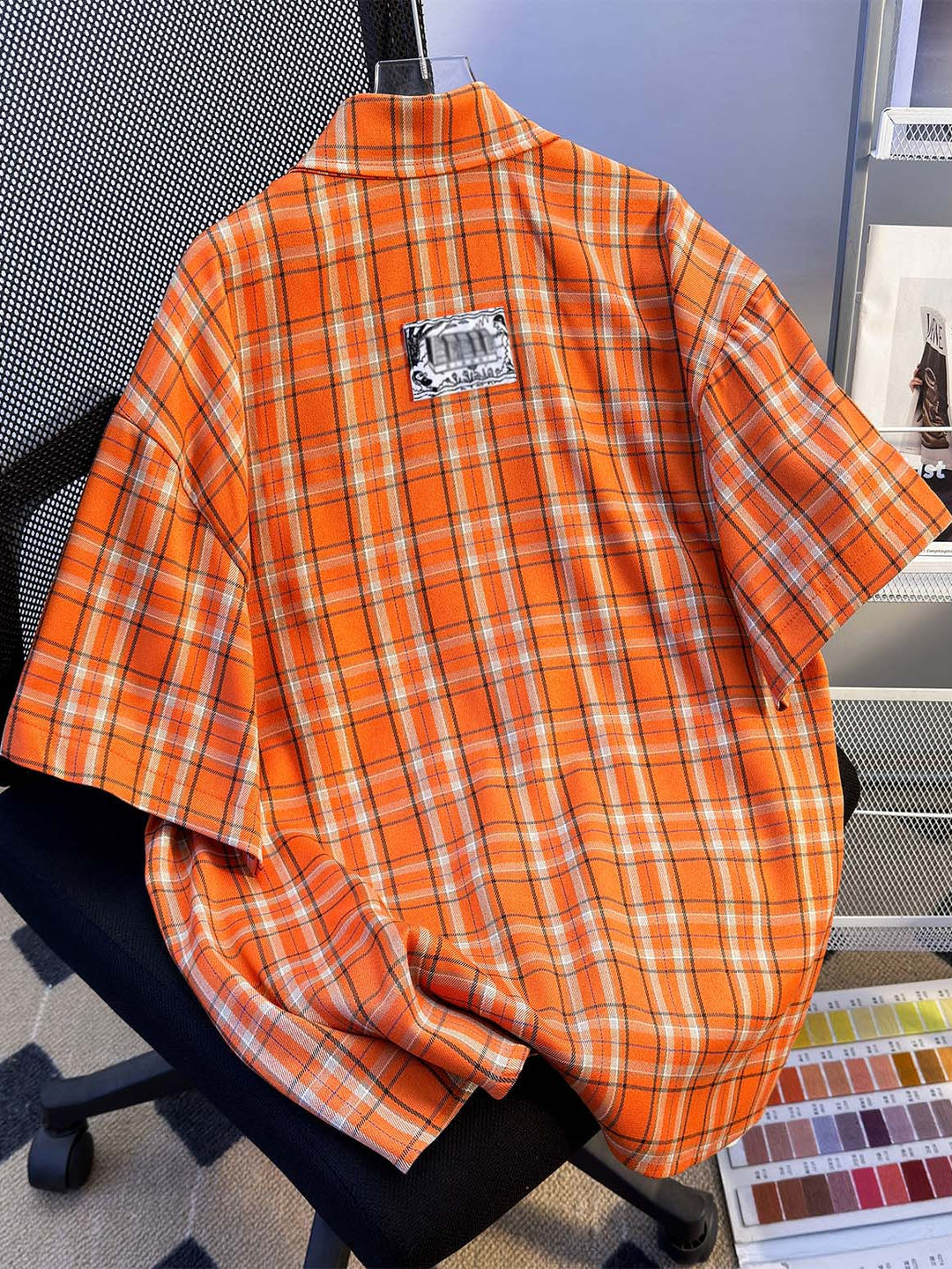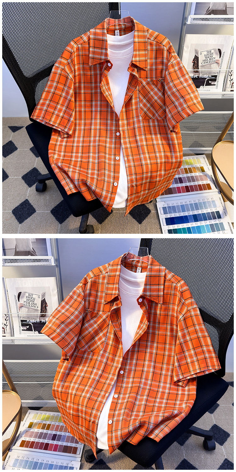 Летняя тонкая рубашка в клетку с коротким рукавом для мужчин, универсальная свободная повседневная модная брендовая спортивная молодежная рубашка в японском стиле 2025