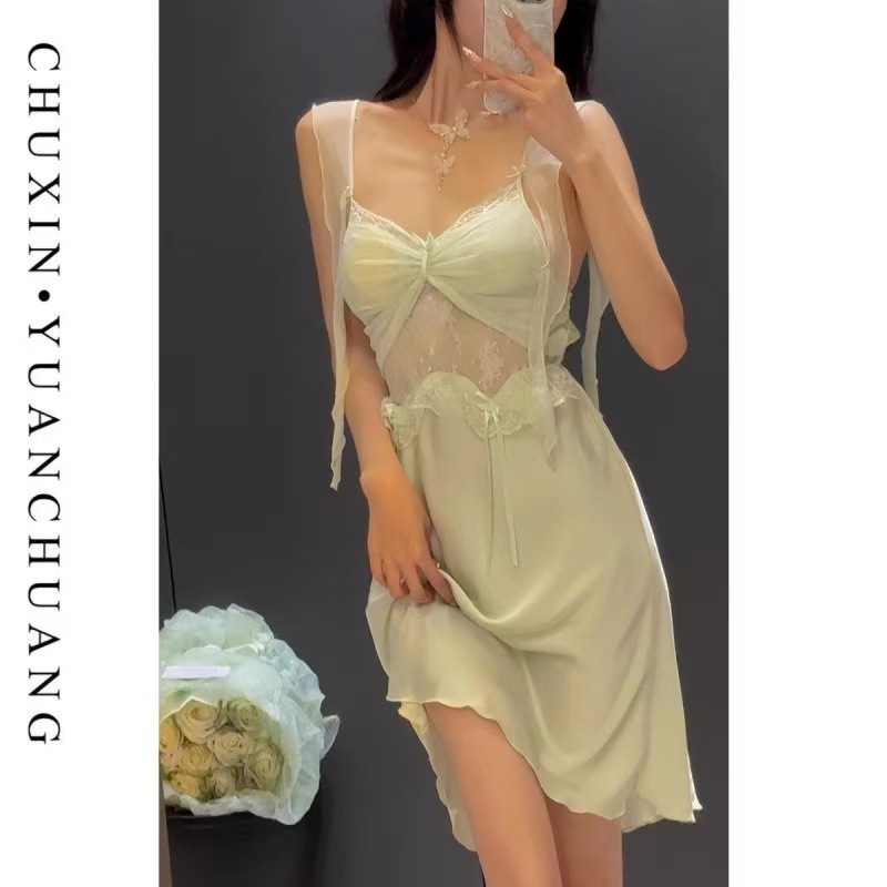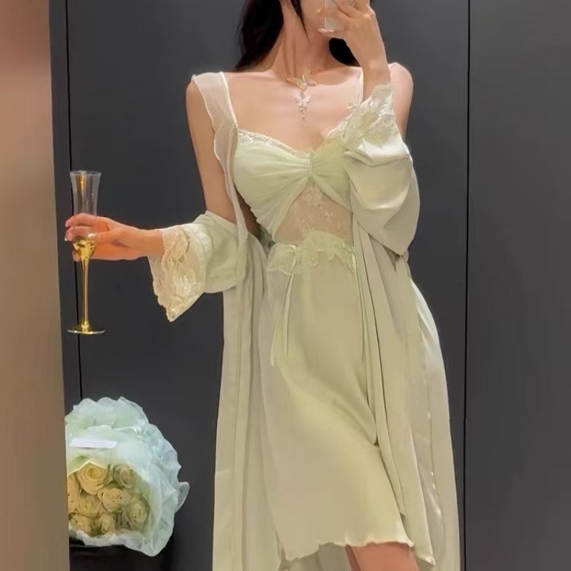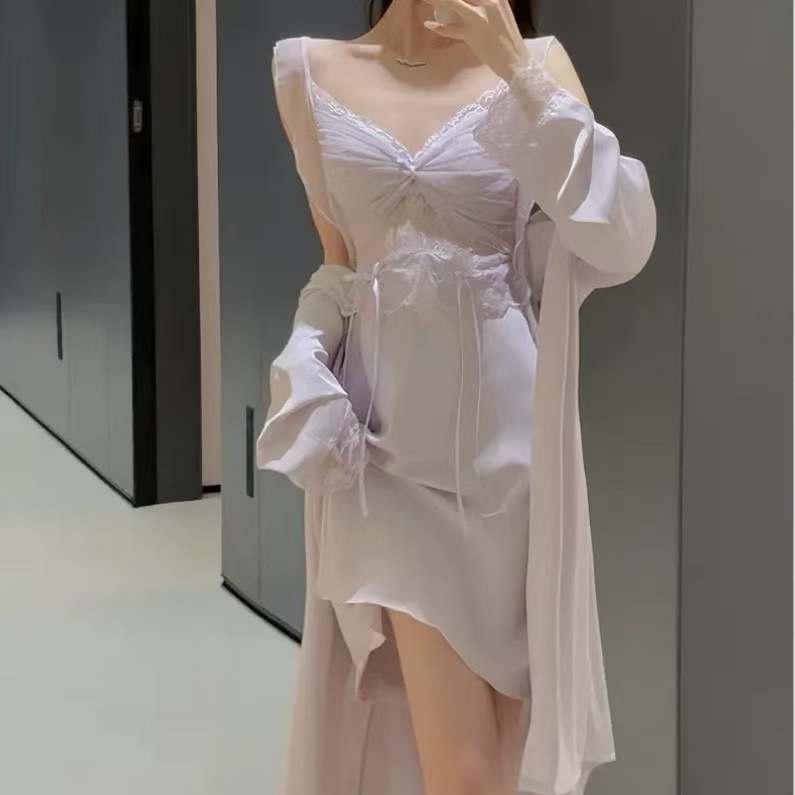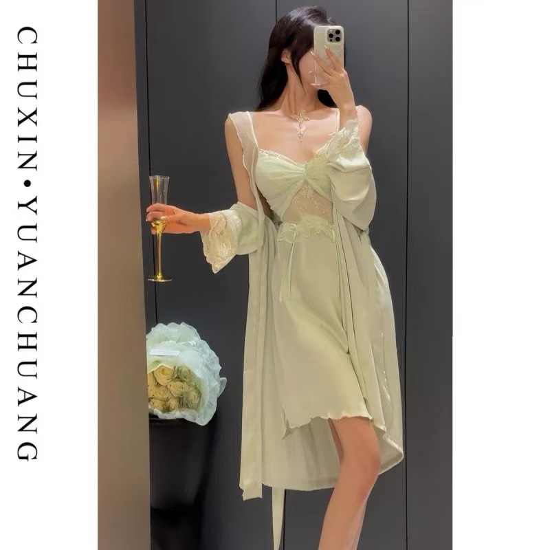 [Любовь] Высококачественная летняя женская ночная рубашка 2025 года с кружевными вырезами + верхний халат, сексуальная пижама для похудения