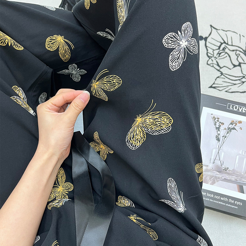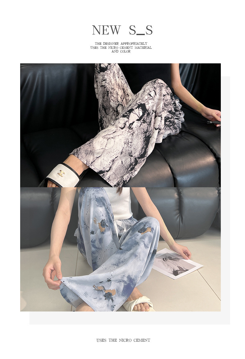 Синие хлопчатобумажные шелковые пижамные штаны в форме сердца, широкие брюки, мягкие и удобные, с драпировкой, тонкие летние прогулочные брюки, подходящие для уличной одежды.