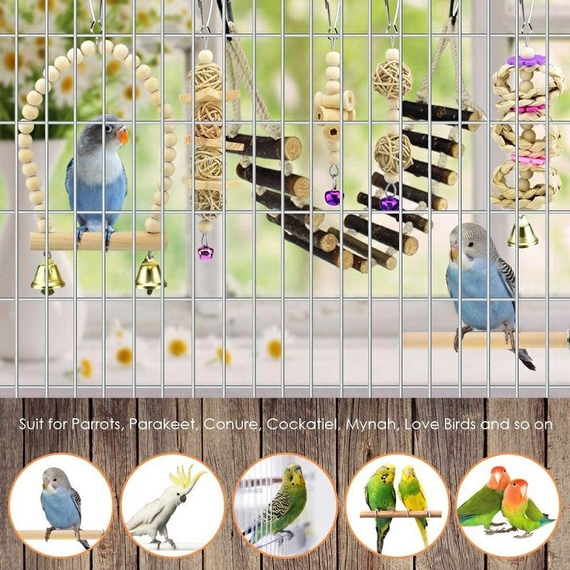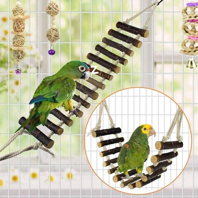Игрушка-качели для попугая из натурального дерева, жевательная игрушка для прорезывания зубов, подвеска для клетки с птицами, аксессуары для птиц, лестница для лазания, мяч из ротанга