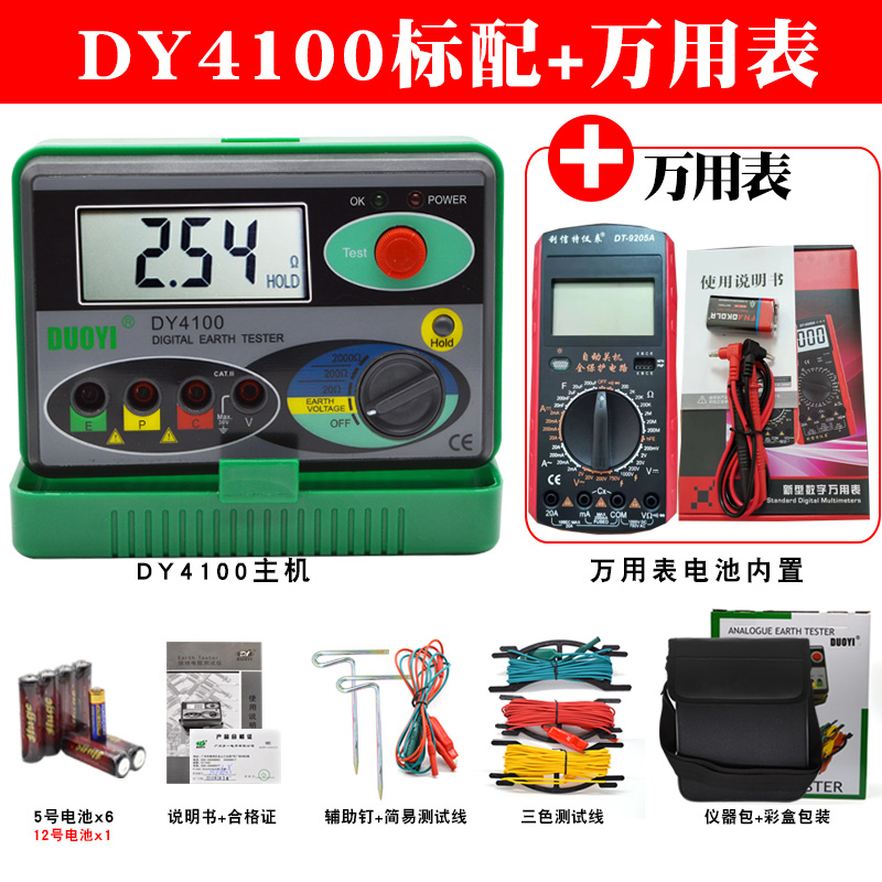 Набор из 4100 измерителей сопротивления заземления [в комплекте 8 запасных батарей (6 больших и 2 маленьких)]; Набор из 4100 измерителей сопротивления заземления [бесплатный мультиметр 1000 В]; Набор из 4100 измерителей сопротивления заземления [бесплатные клещи 600 В]; Новая модель: набор измерителей сопротивления заземления 4100А [может измерять фотоэлектрическое напряжение]