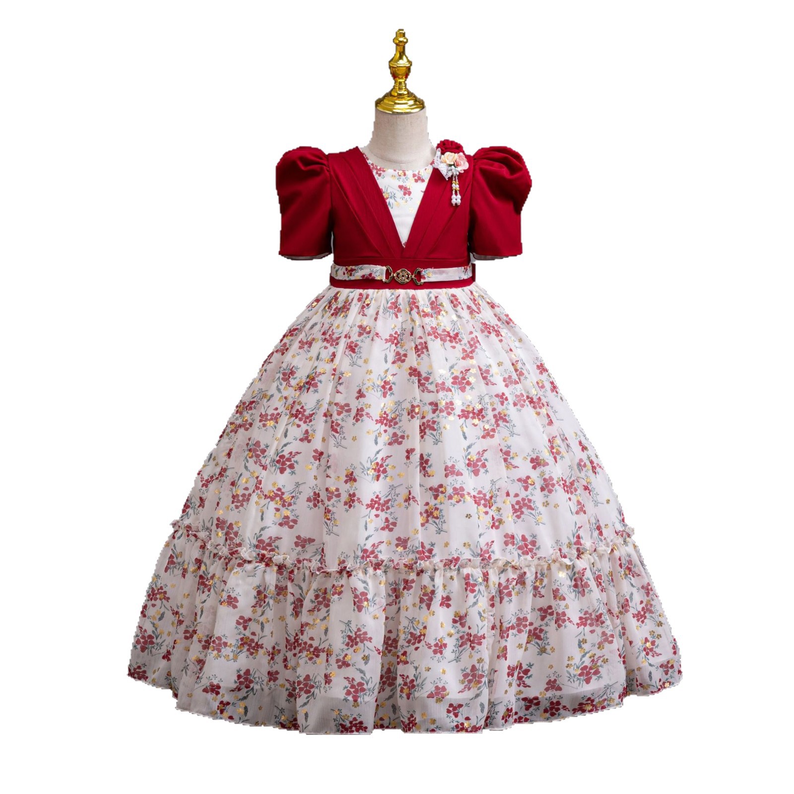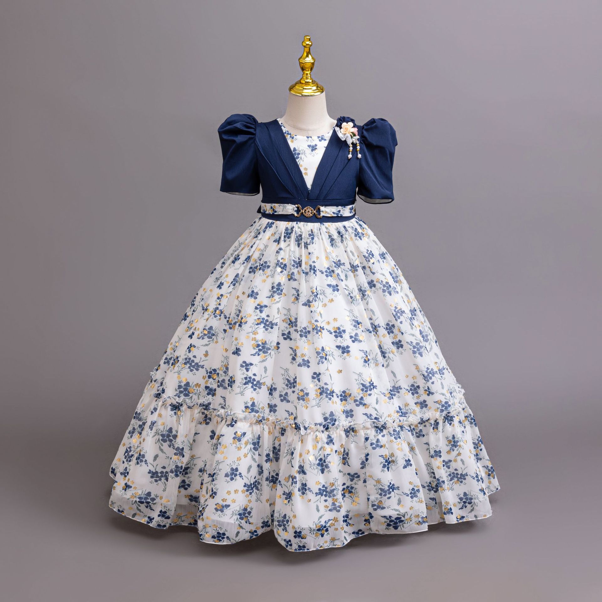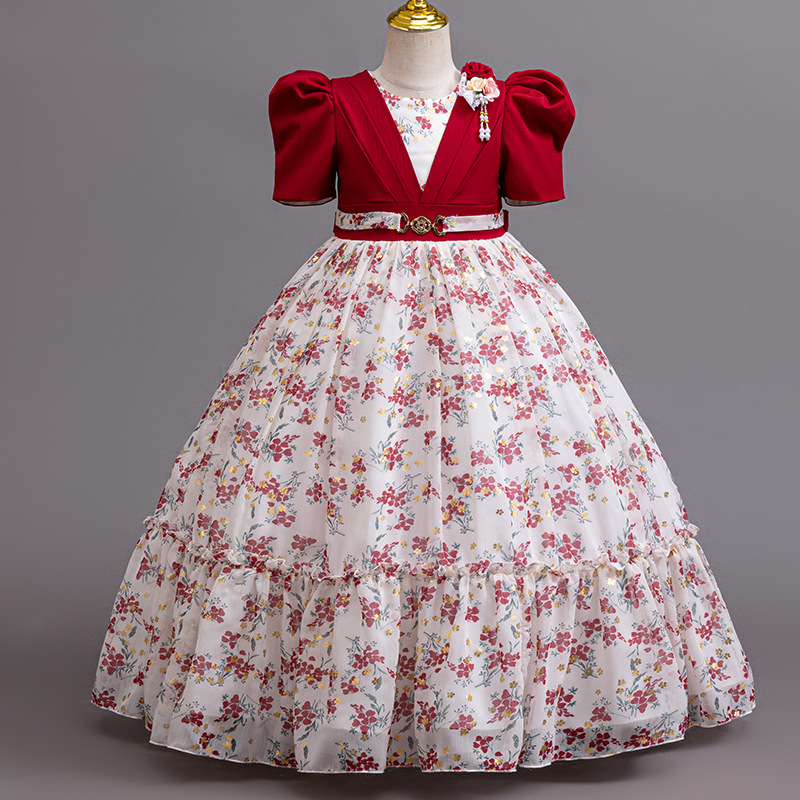 Летнее платье с пышными рукавами для девочек, платье принцессы с цветочным принтом, праздничный стиль, модельное платье для подиума, детское платье