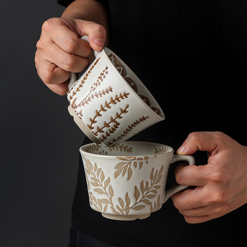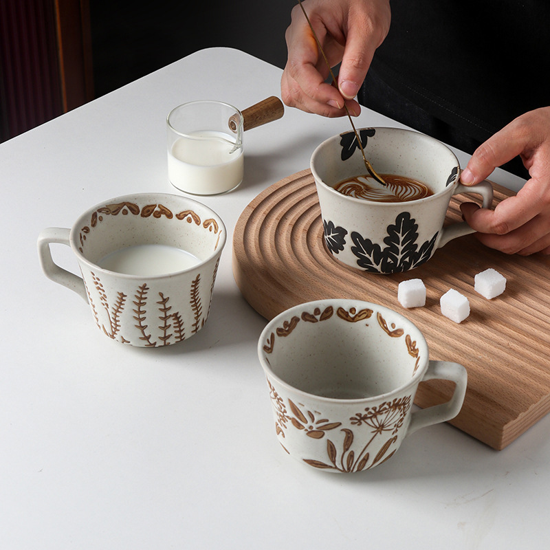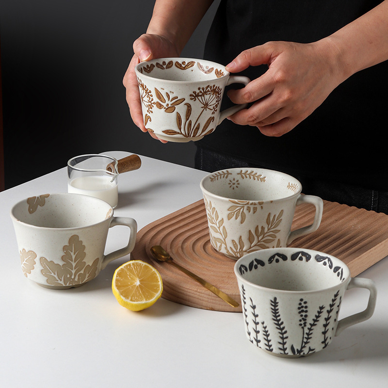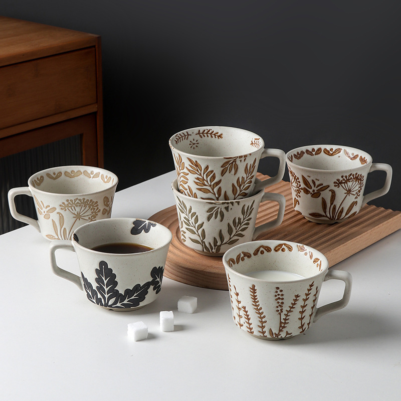 Керамическая креативная кружка с плавающим растением, ручной росписи, интернет-знаменитость, кружка для напитков, простая ретро-кружка, высококачественная кофейная кружка оптом