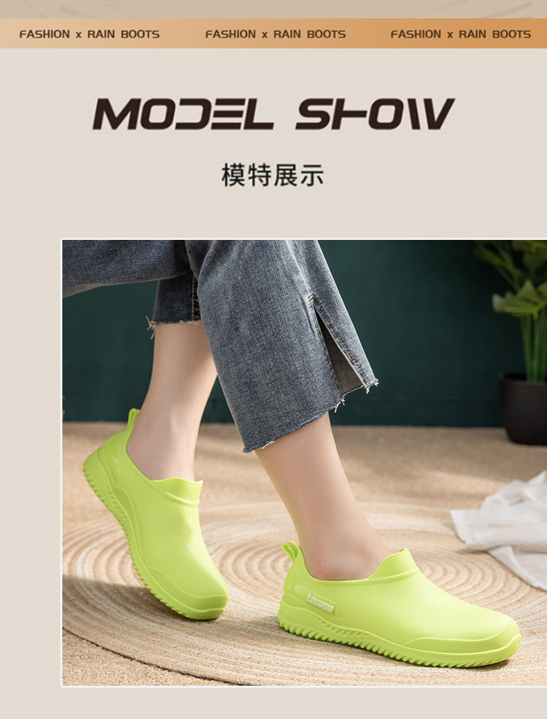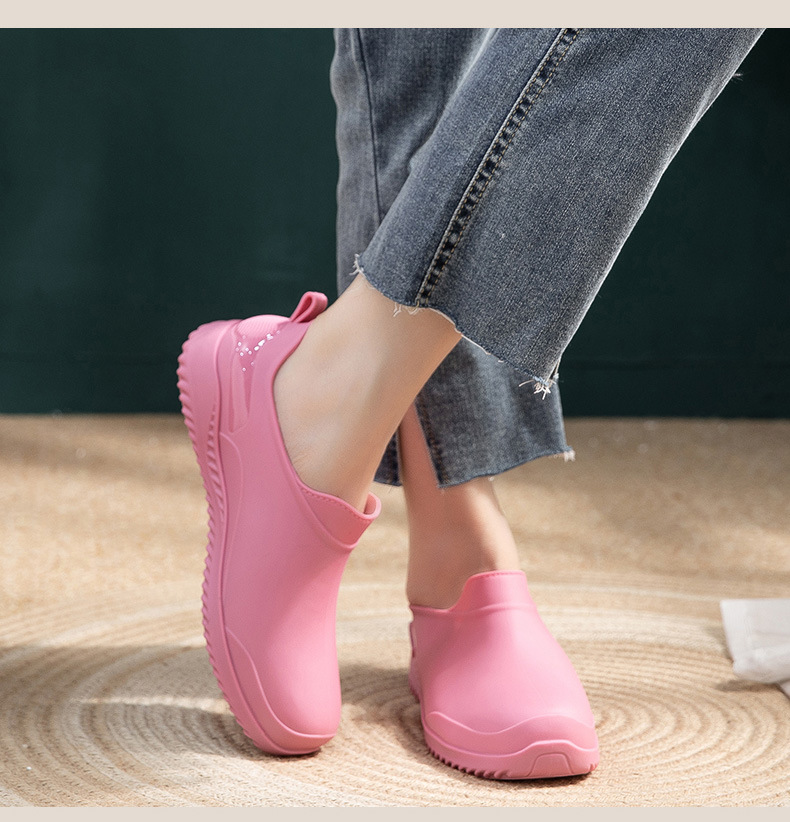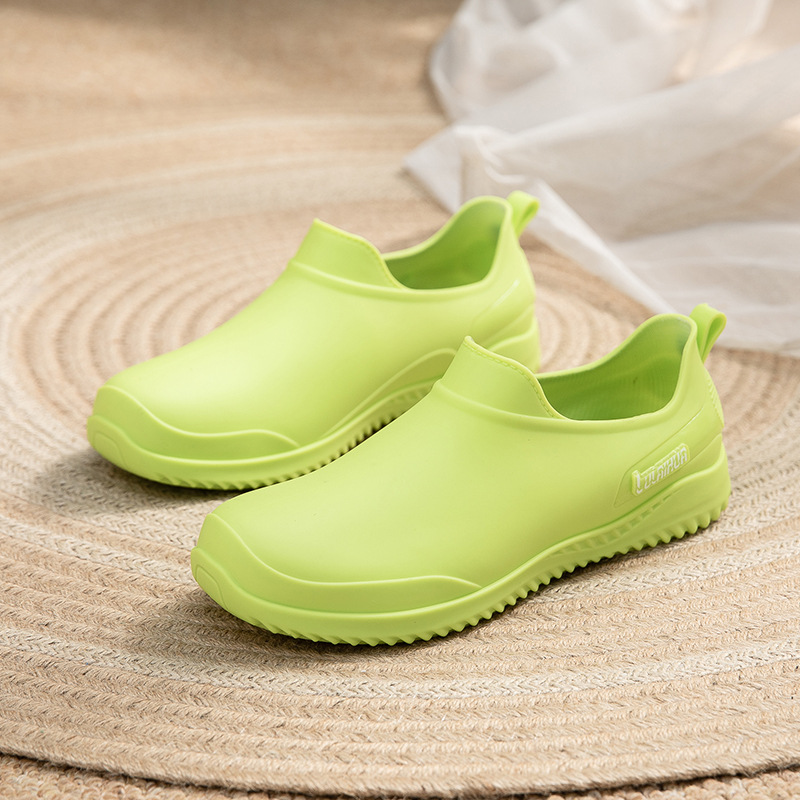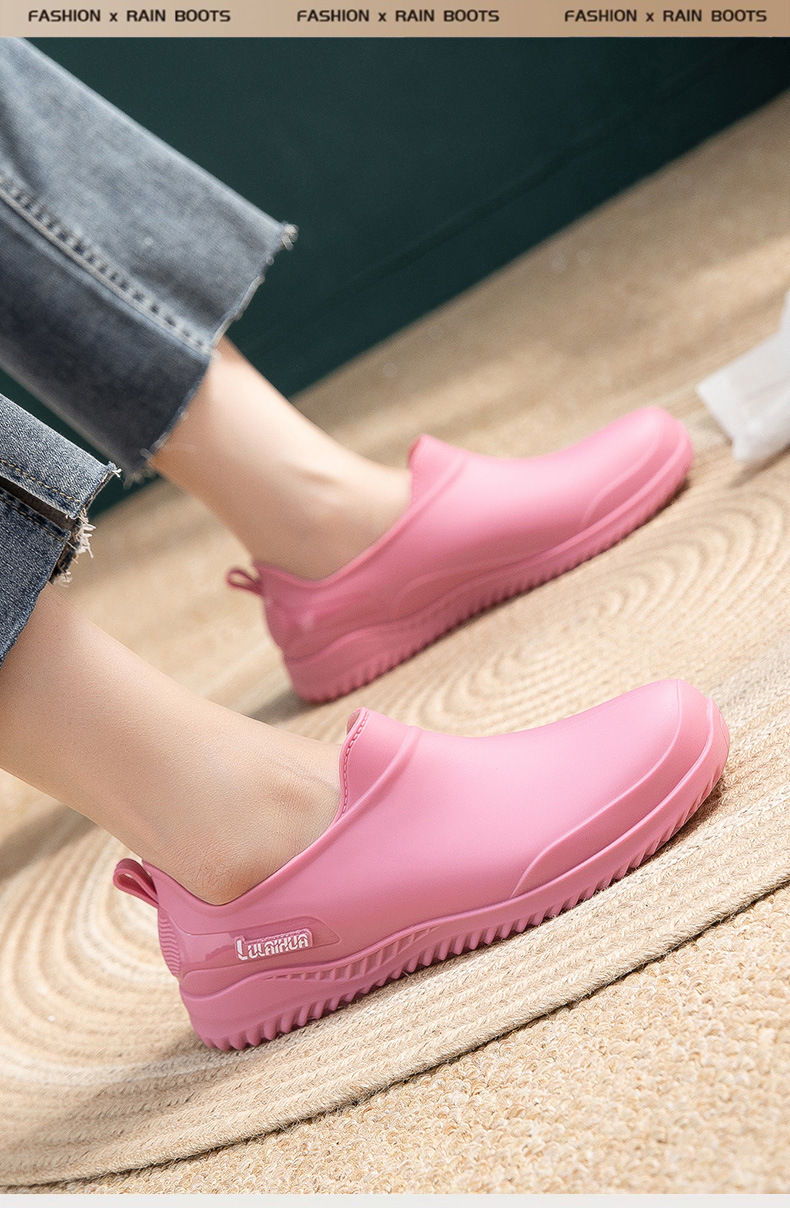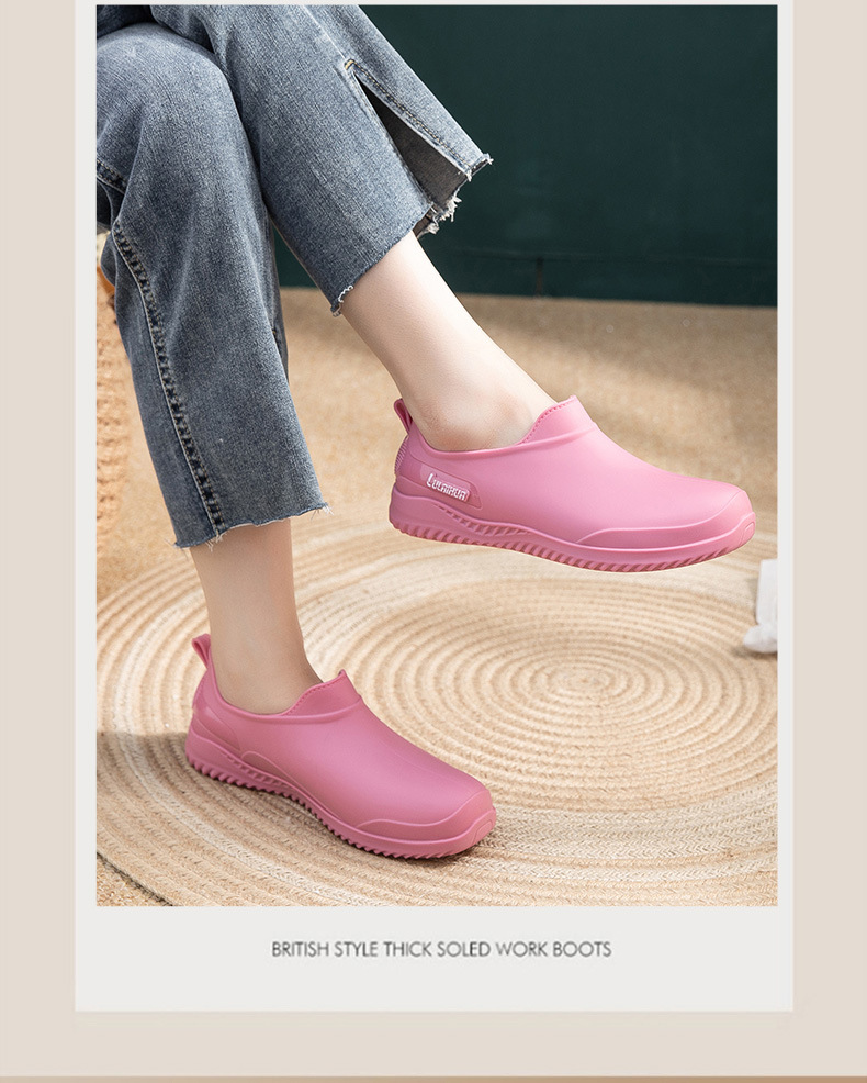 Новые четырехсезонные водонепроницаемые туфли для женщин, нескользящие дождевые сапоги для кухни в корейском стиле с низким вырезом, неглубокие водные сапоги с короткими трубками.