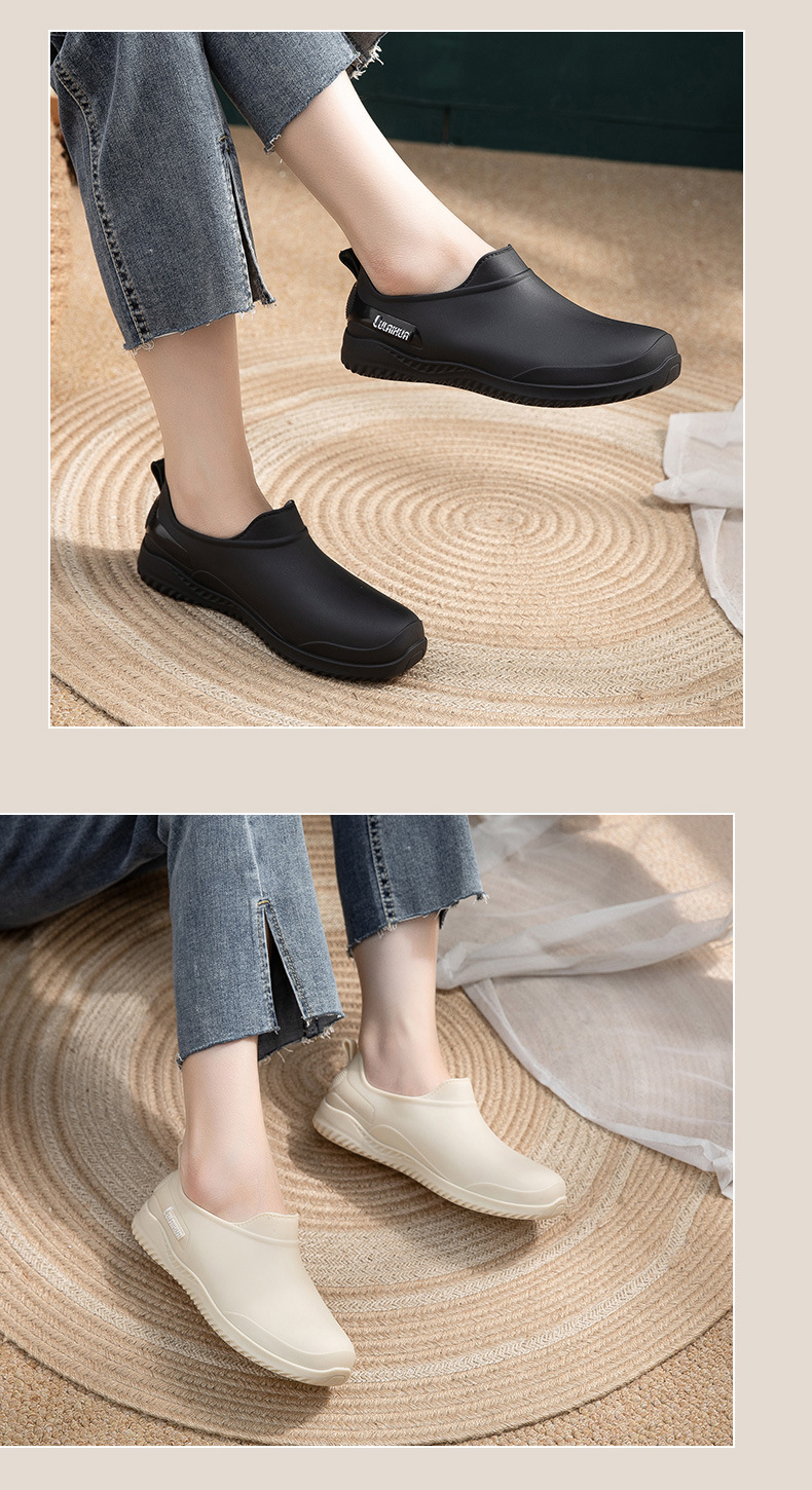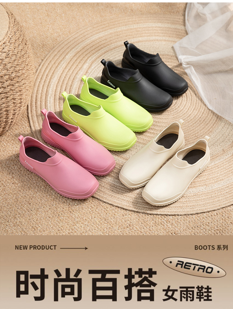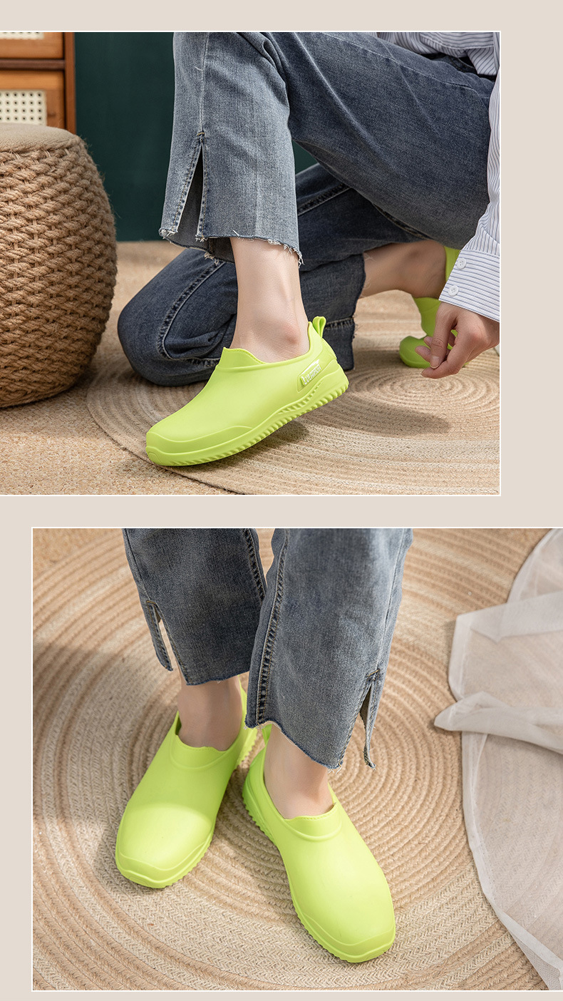 Новые четырехсезонные водонепроницаемые туфли для женщин, нескользящие дождевые сапоги для кухни в корейском стиле с низким вырезом, неглубокие водные сапоги с короткими трубками.