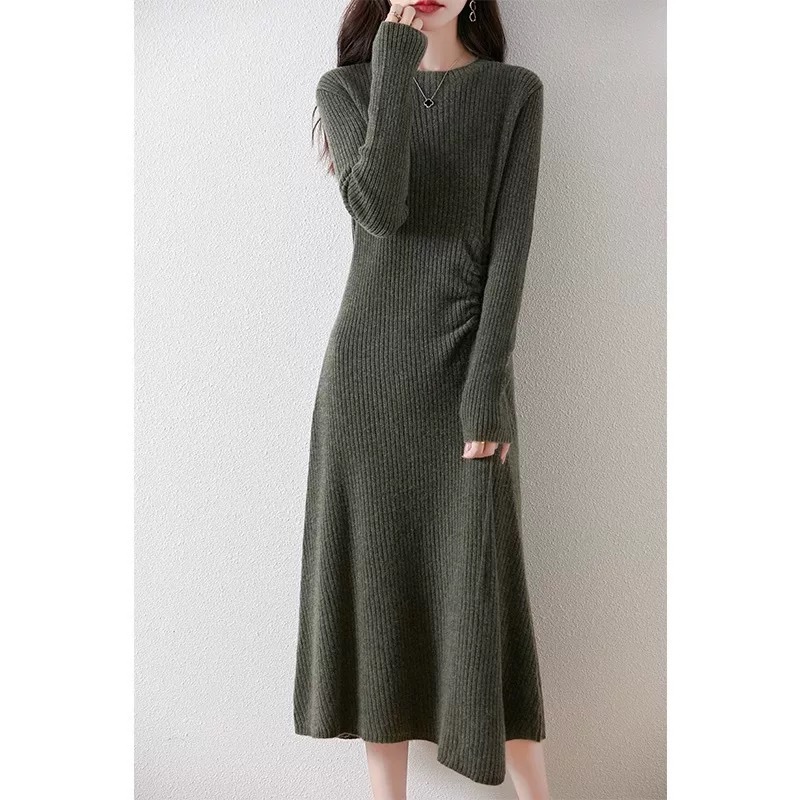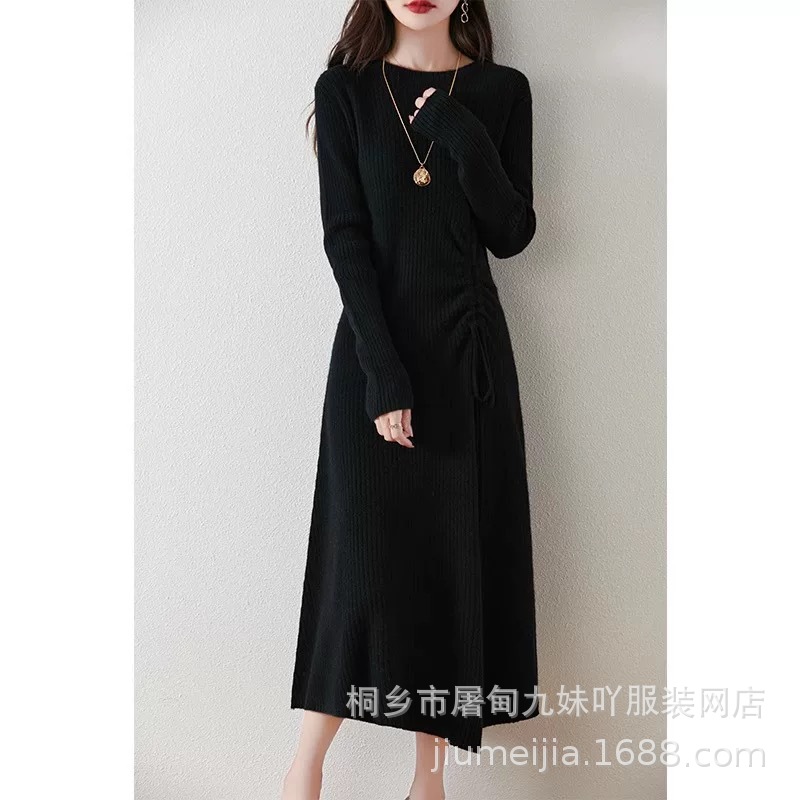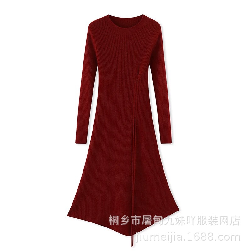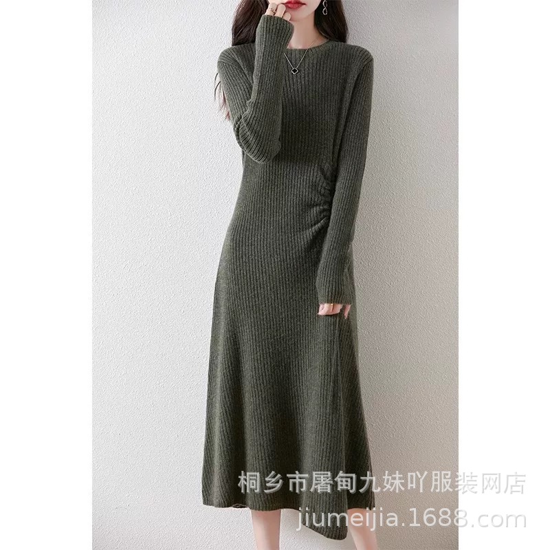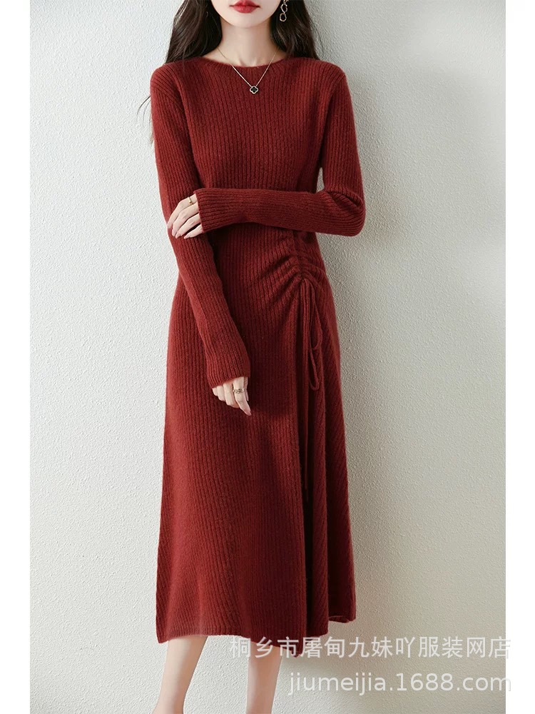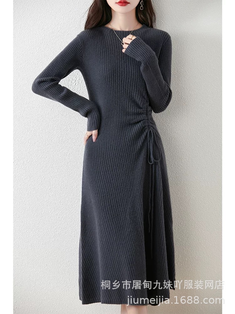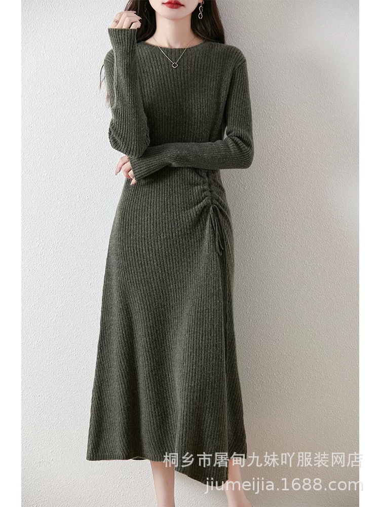 Вязаное платье во французском стиле для женщин осенью и зимой, круглый вырез, утягивающее талию, облегающее платье-свитер средней длины, облегающее бедра.