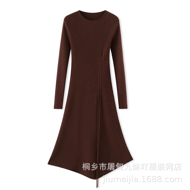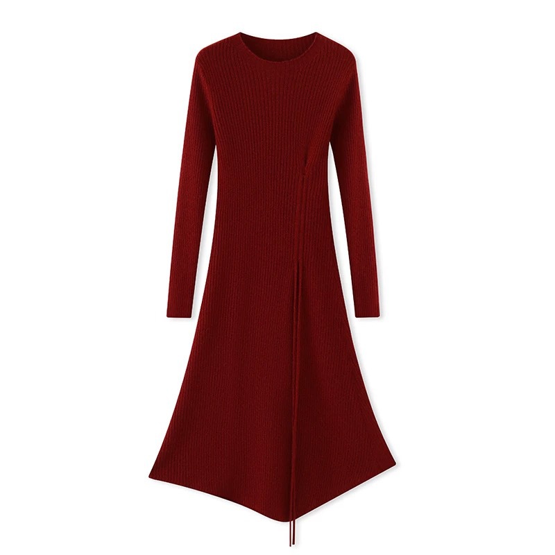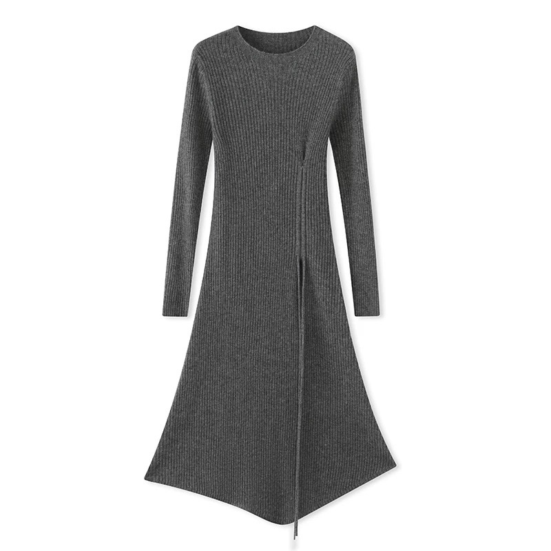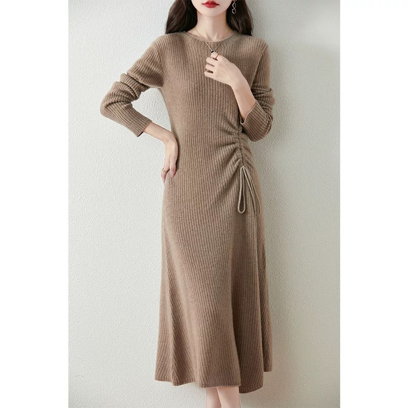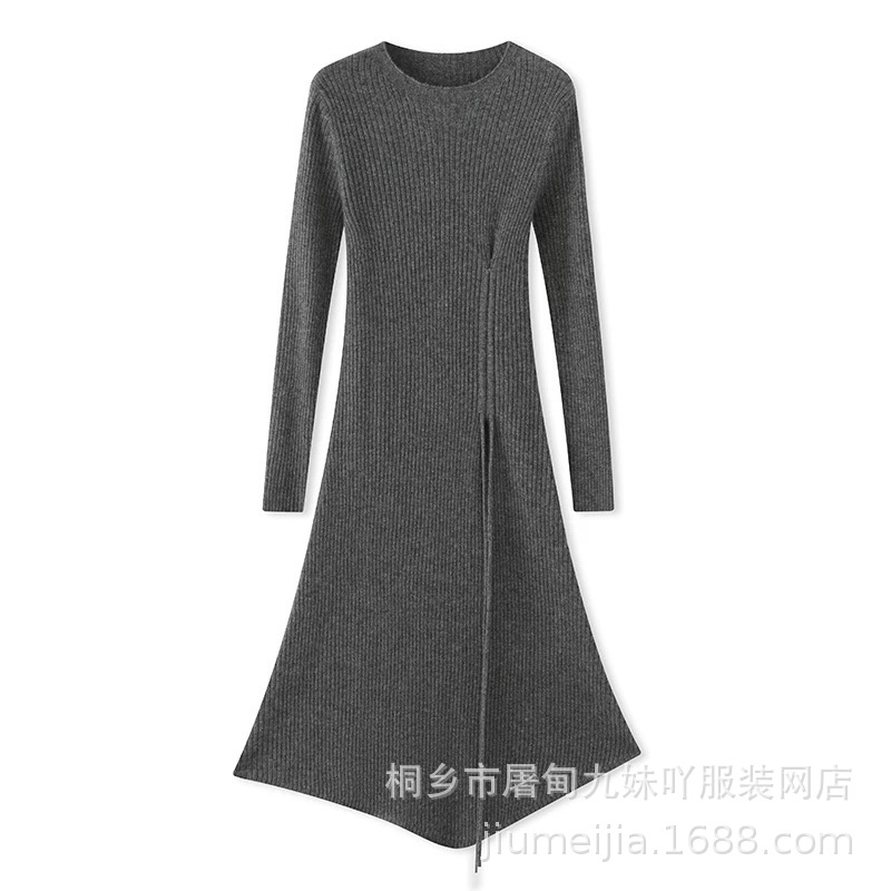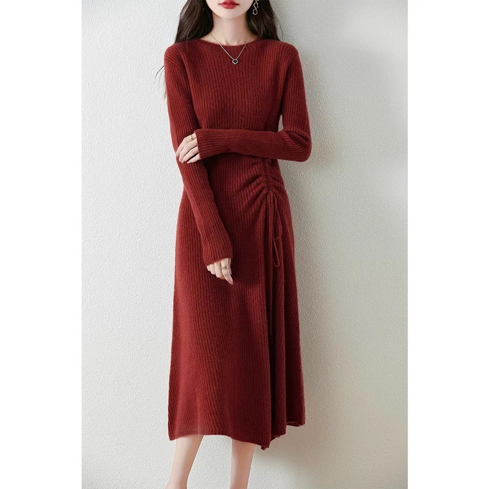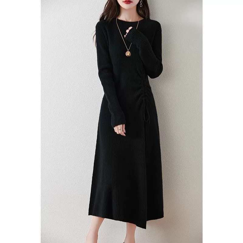 Вязаное платье во французском стиле для женщин осенью и зимой, круглый вырез, утягивающее талию, облегающее платье-свитер средней длины, облегающее бедра.