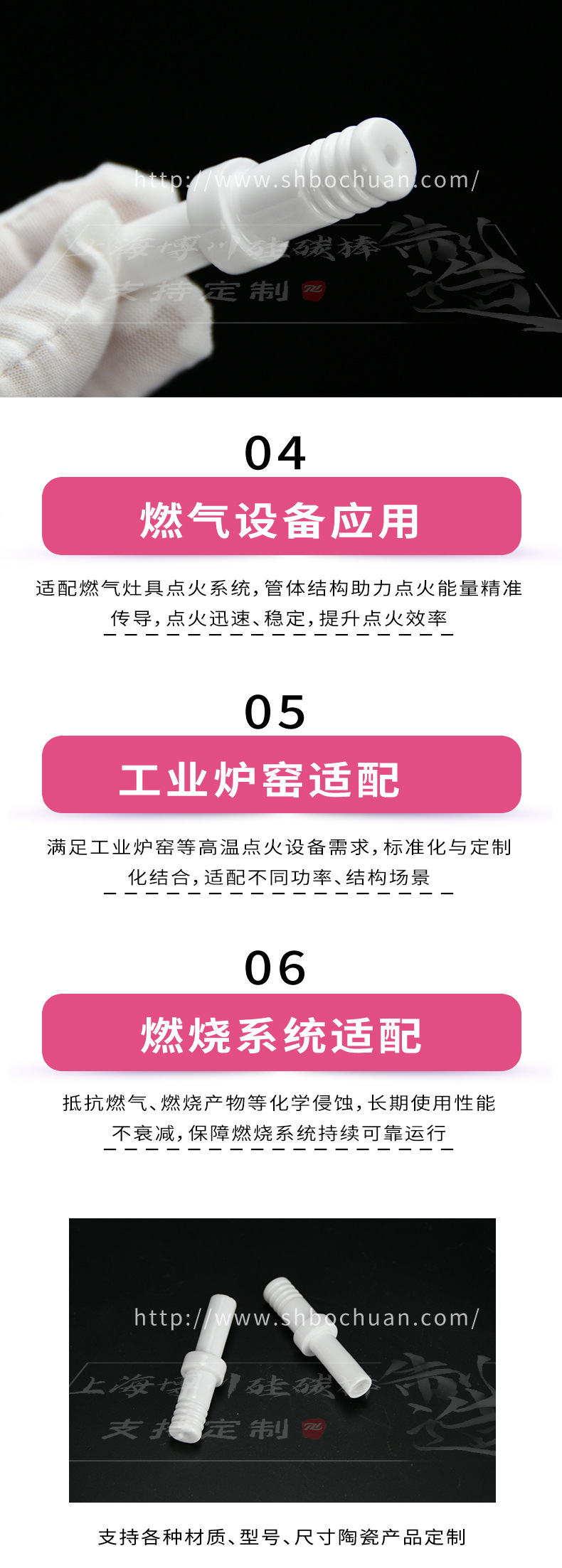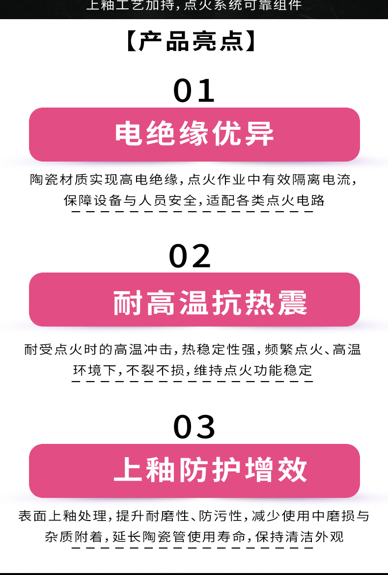 95 глазурованный стержень зажигания, керамическая трубка, устойчивая к высоким температурам изоляция для системы зажигания газовой горелки котла