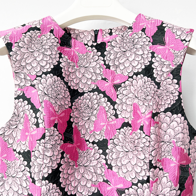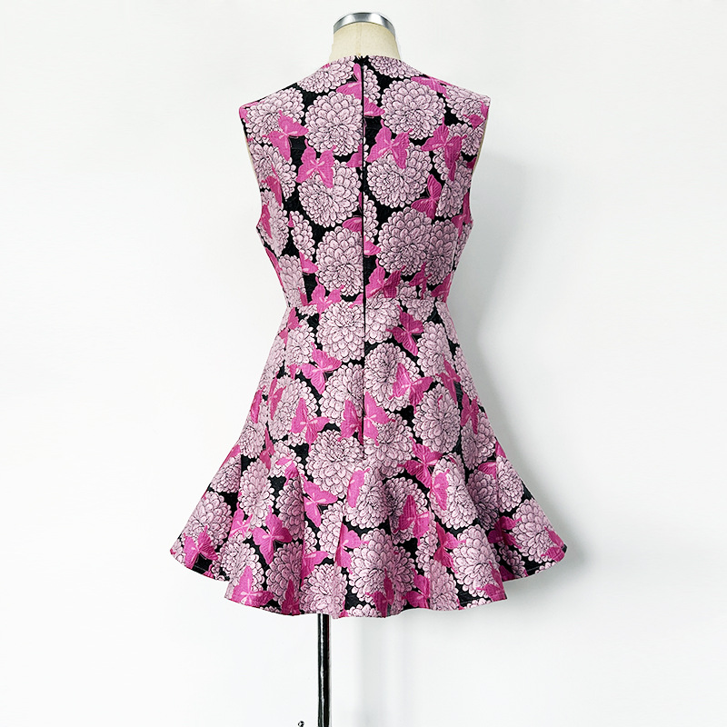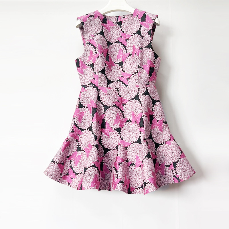 Элегантная юбка А-силуэта 2025 года, новинка европейских и американских подиумов, безрукавное платье с жаккардовым узором "бабочка" и подолом в виде листьев лотоса.