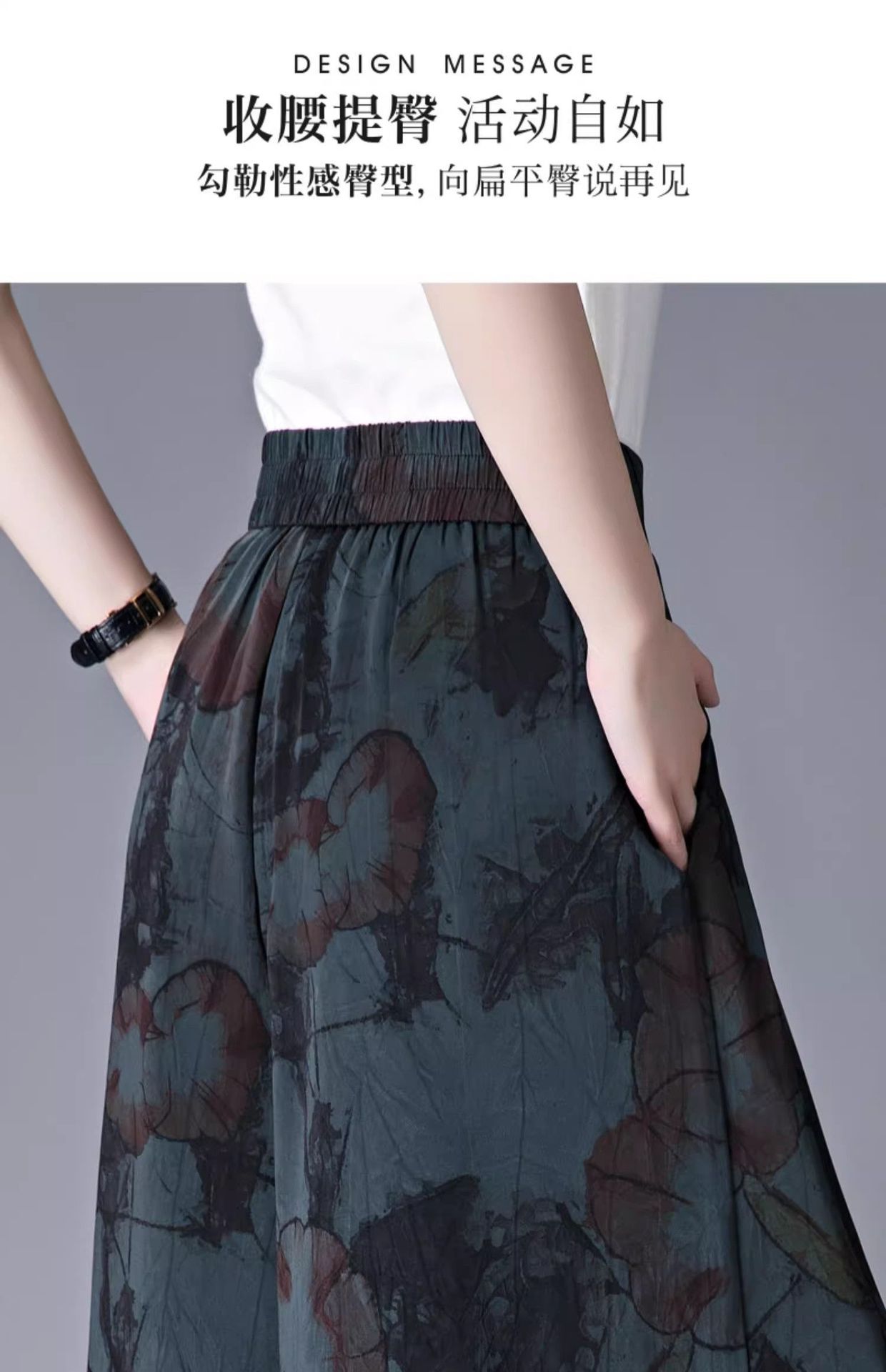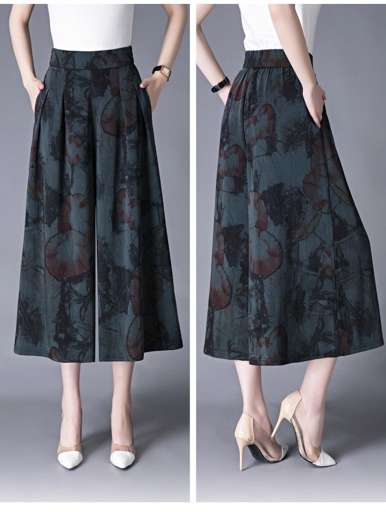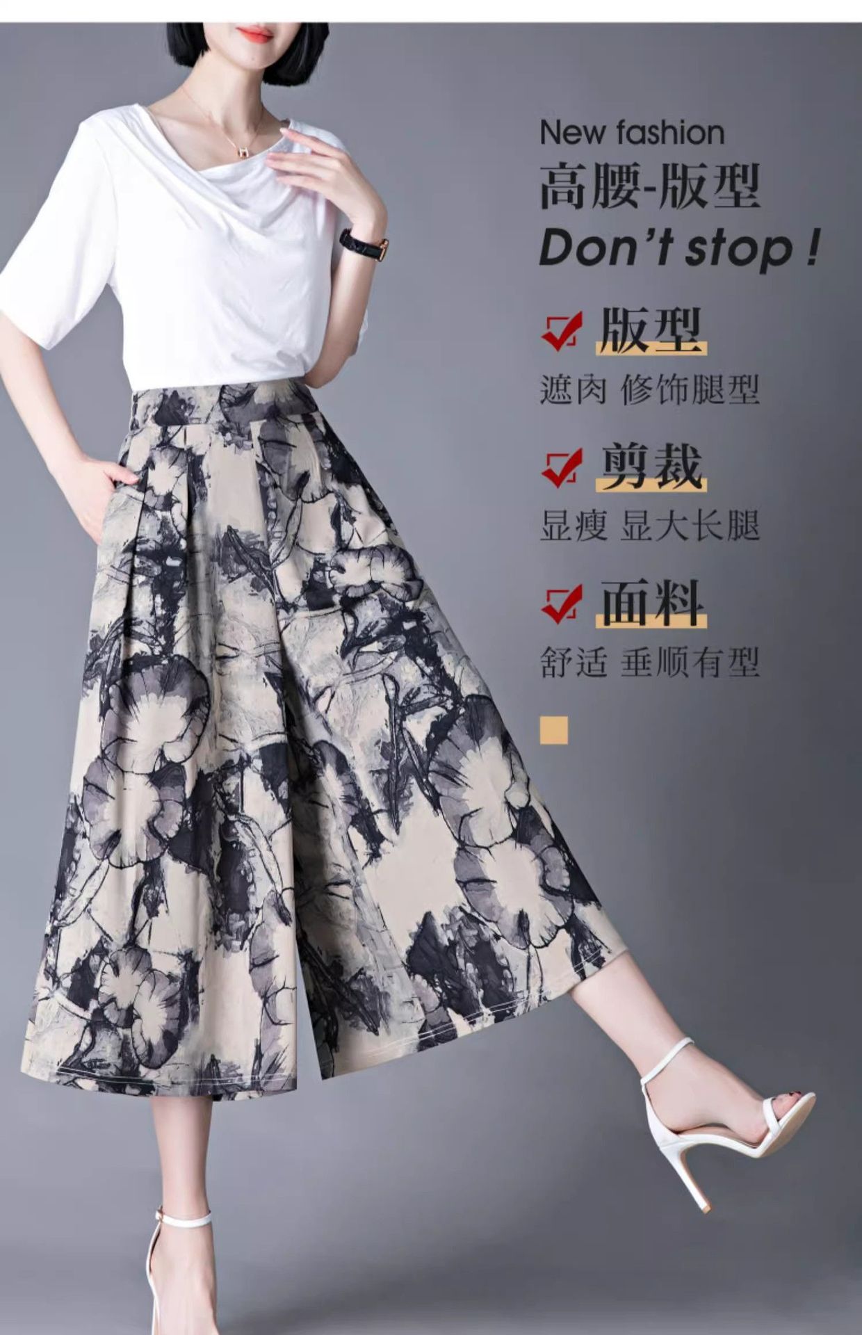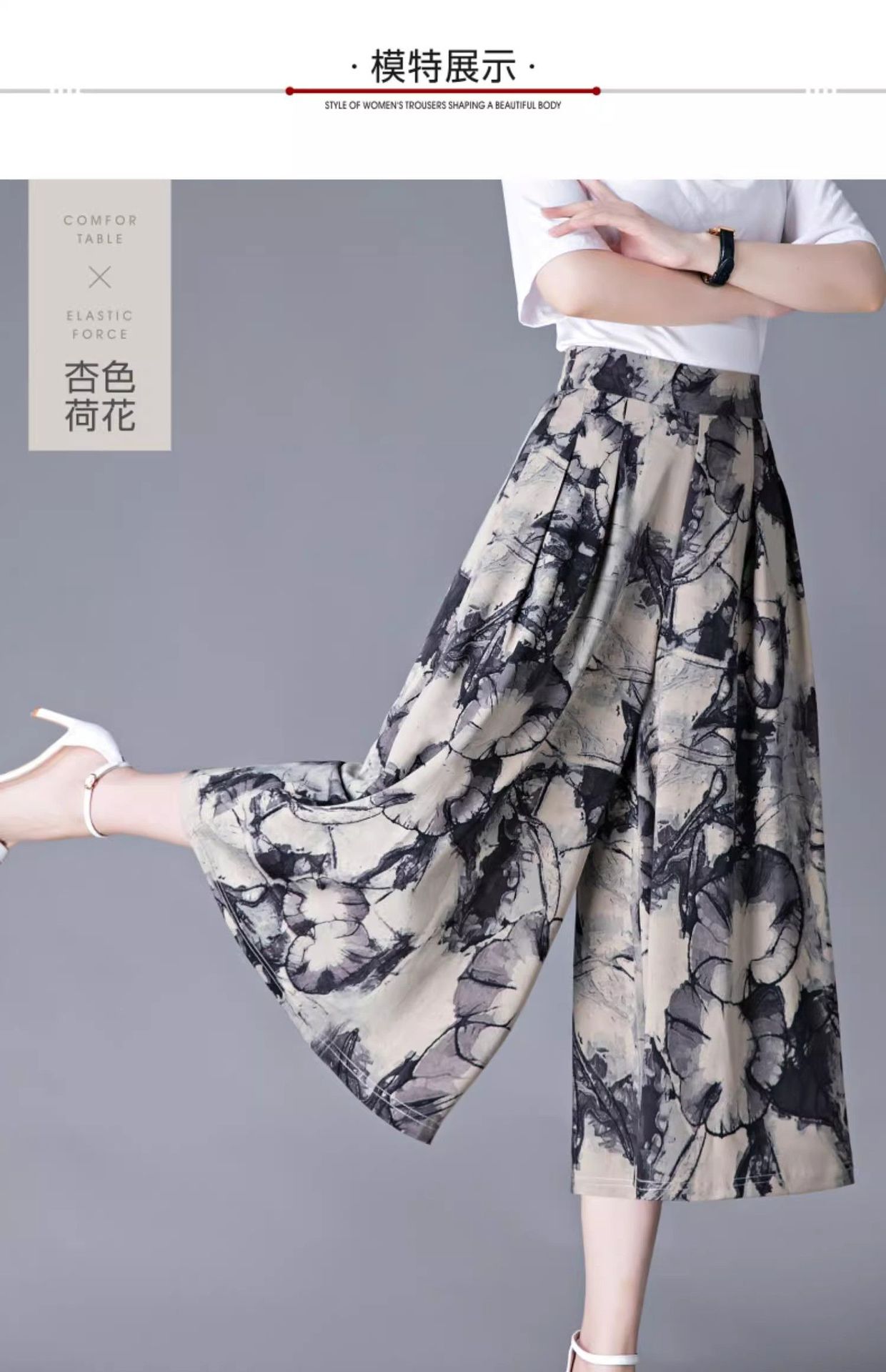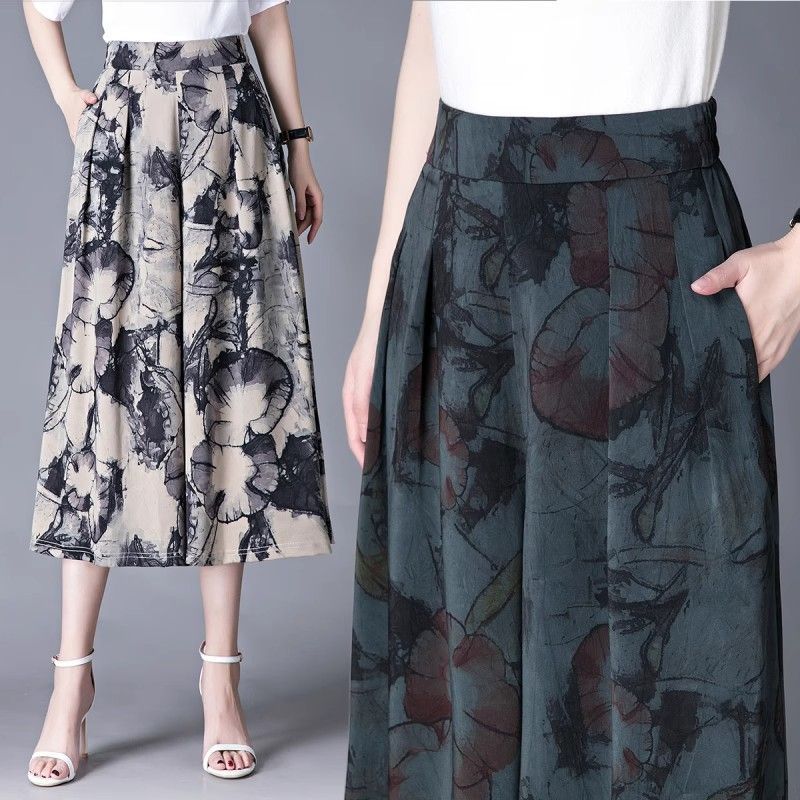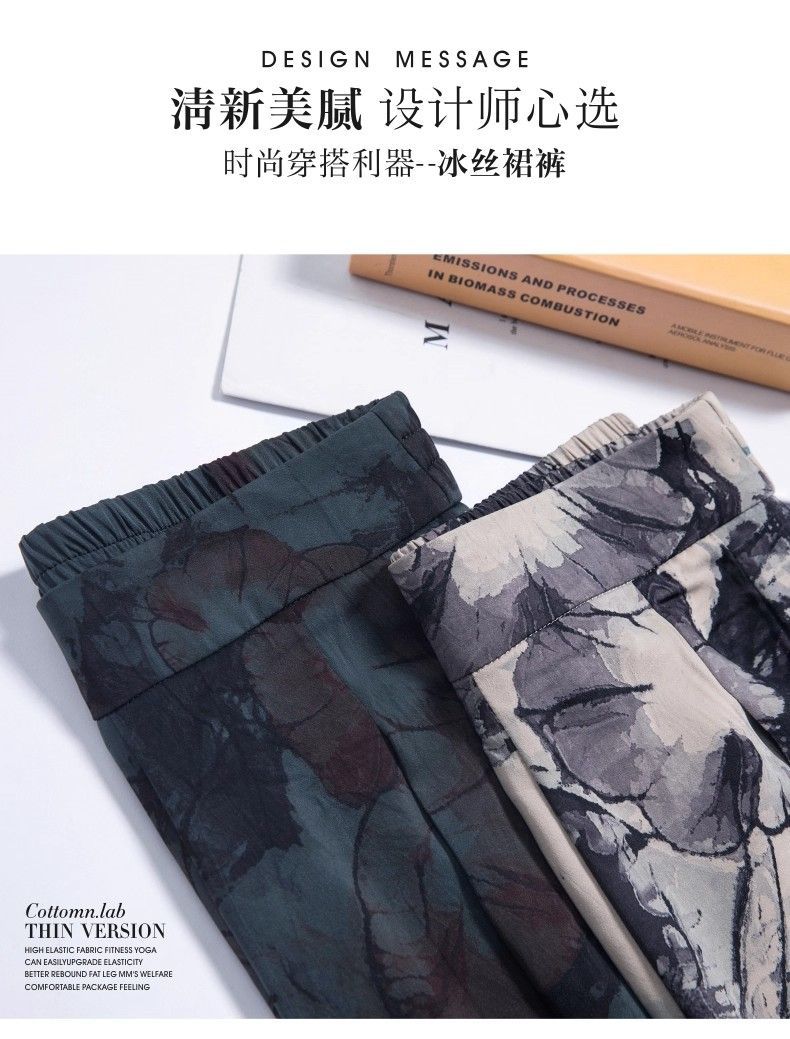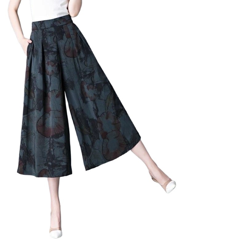 Летние брюки-кюлоты из ледяного шелка в китайском стиле, тонкие, свободные, с драпировкой, высокая талия, широкие штанины, для женщин среднего возраста, 2025 г.