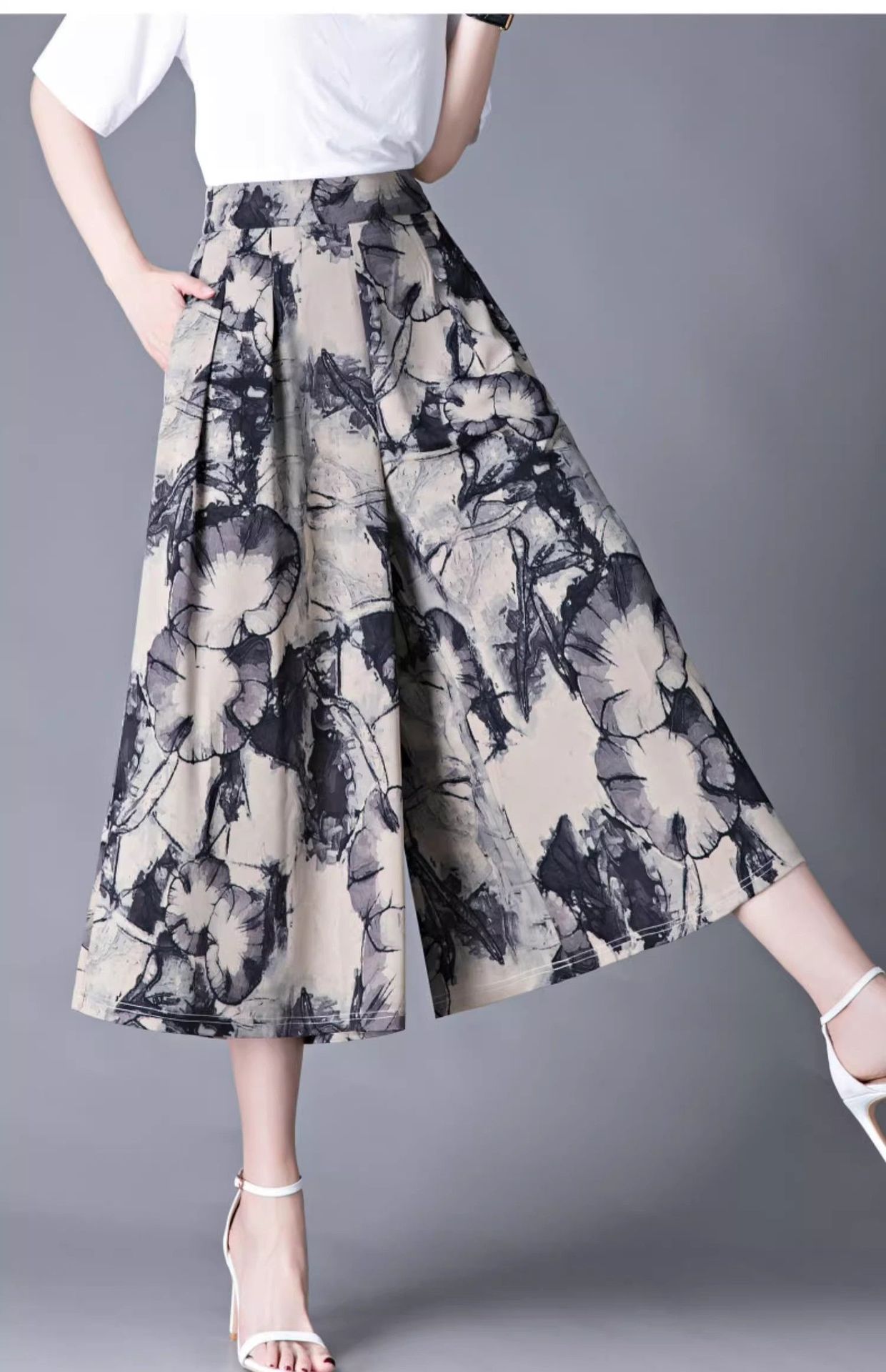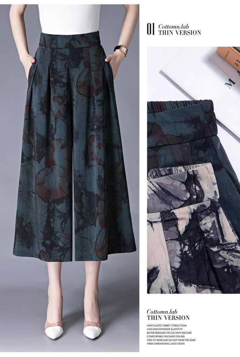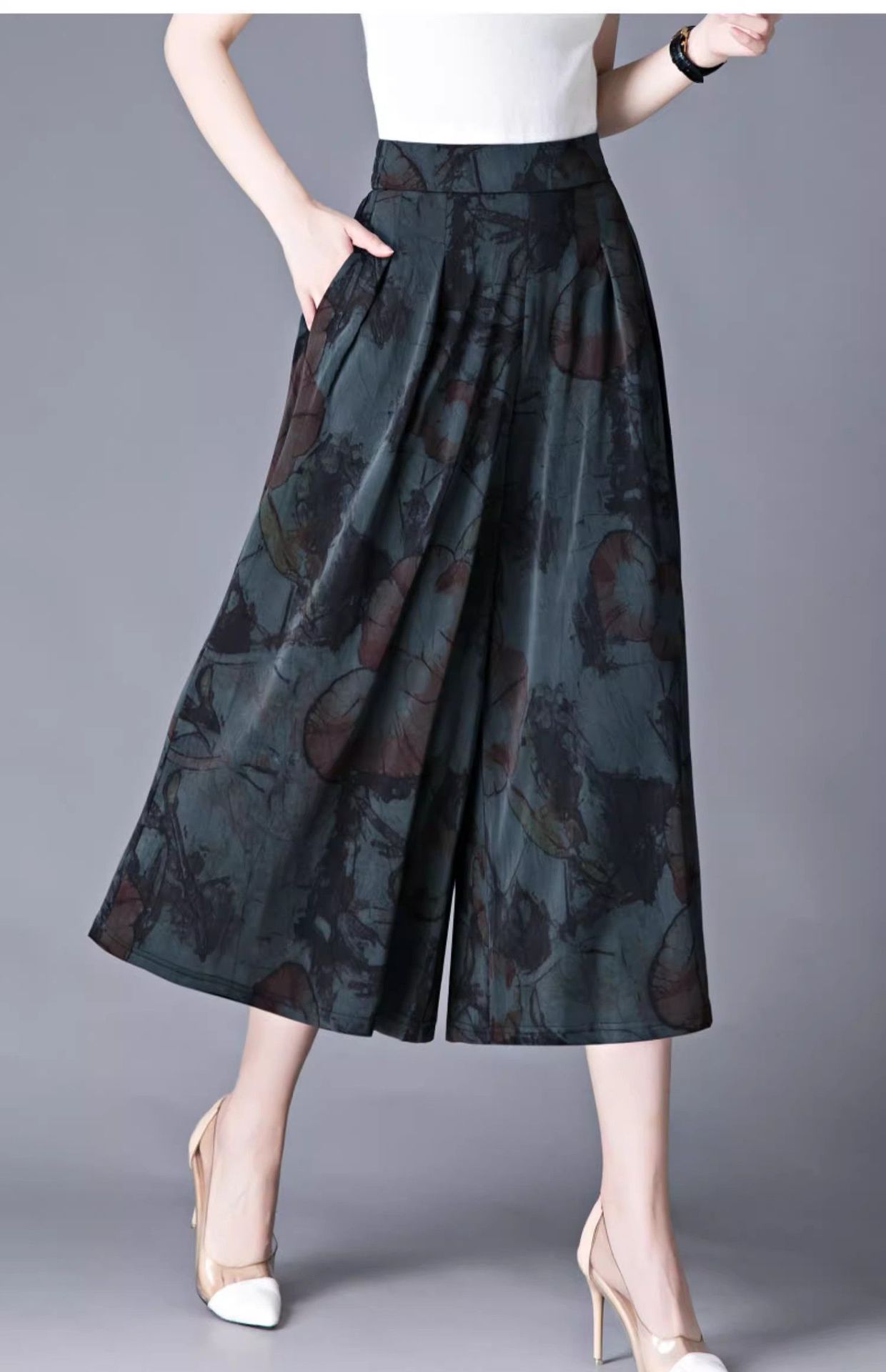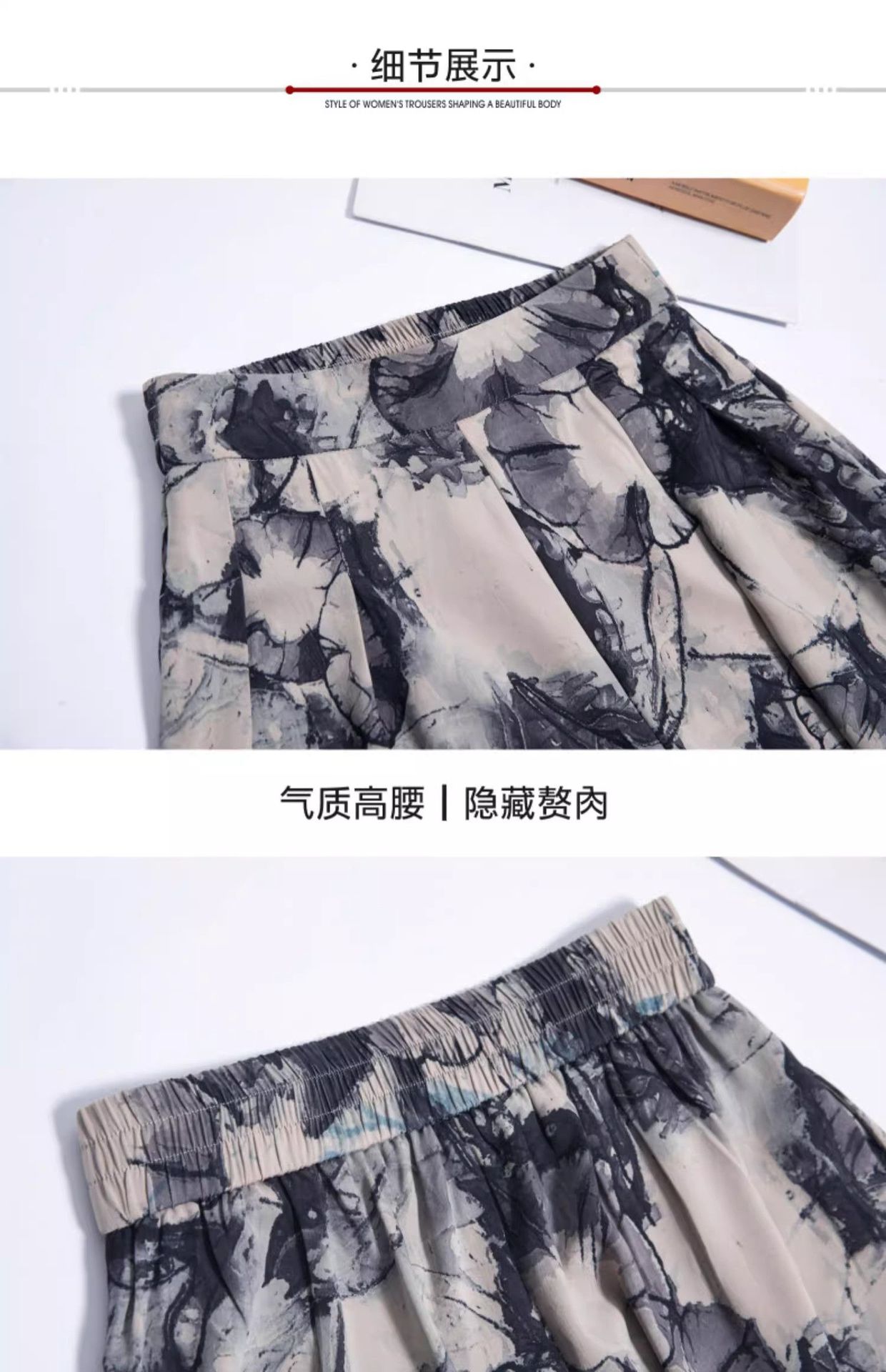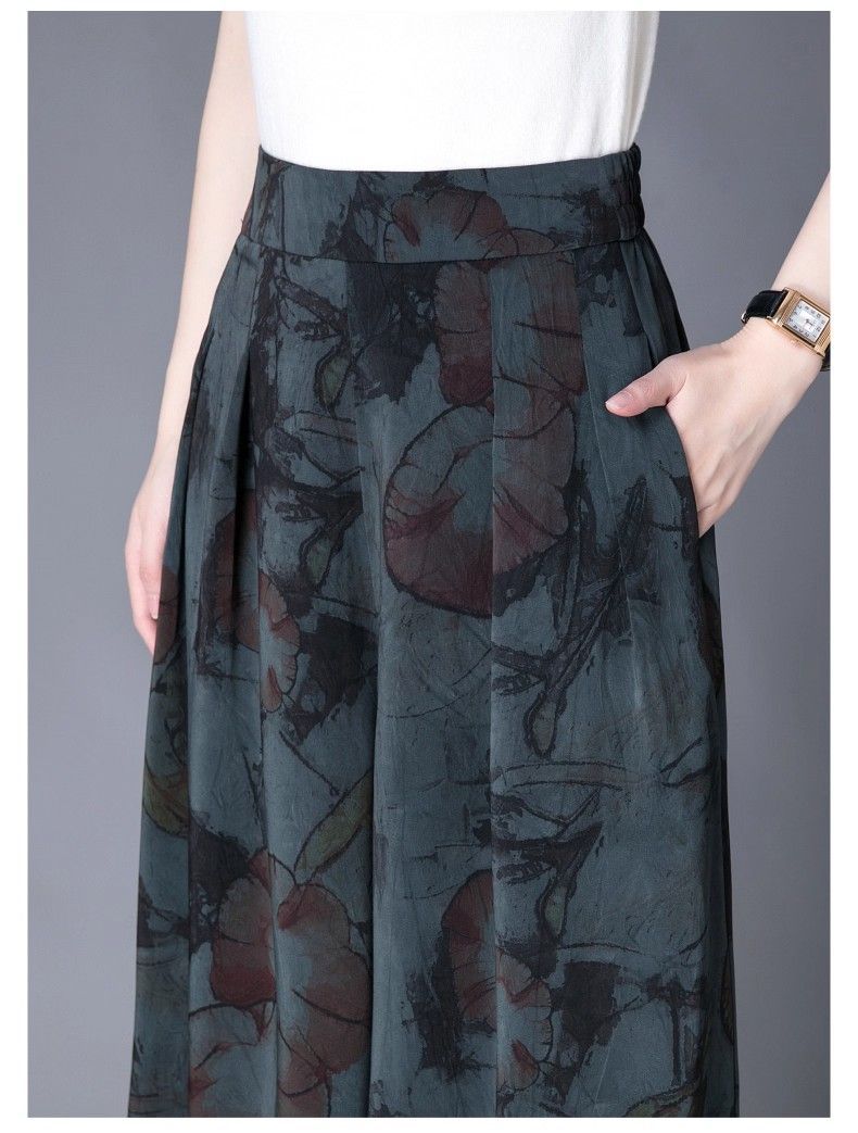 Летние брюки-кюлоты из ледяного шелка в китайском стиле, тонкие, свободные, с драпировкой, высокая талия, широкие штанины, для женщин среднего возраста, 2025 г.