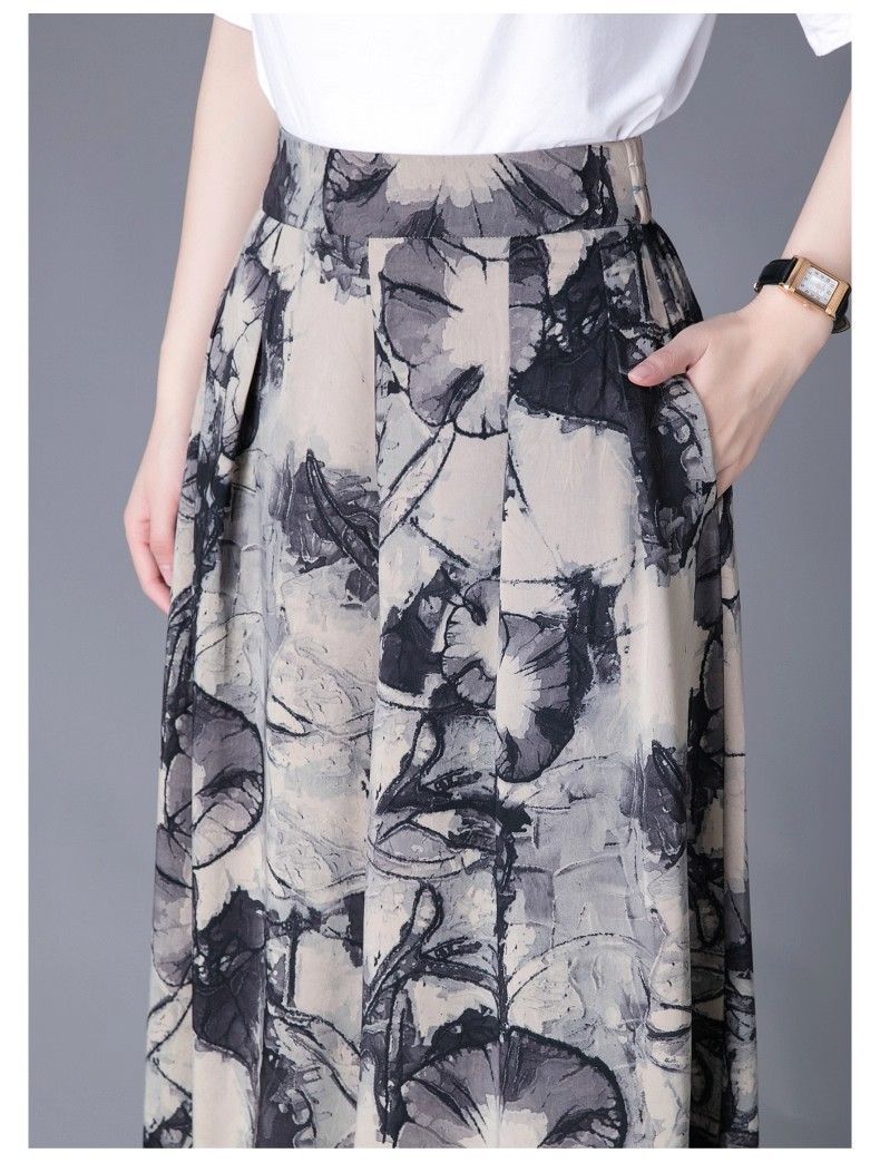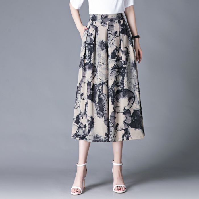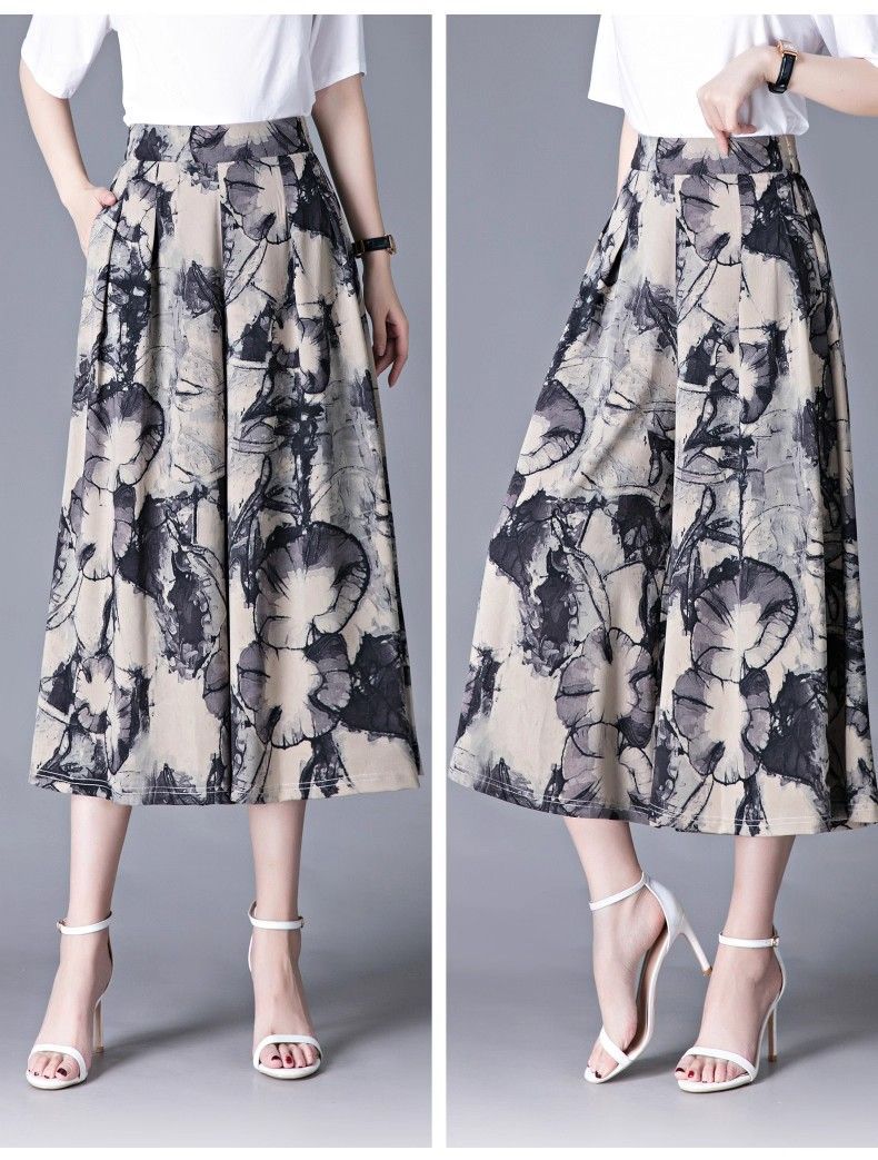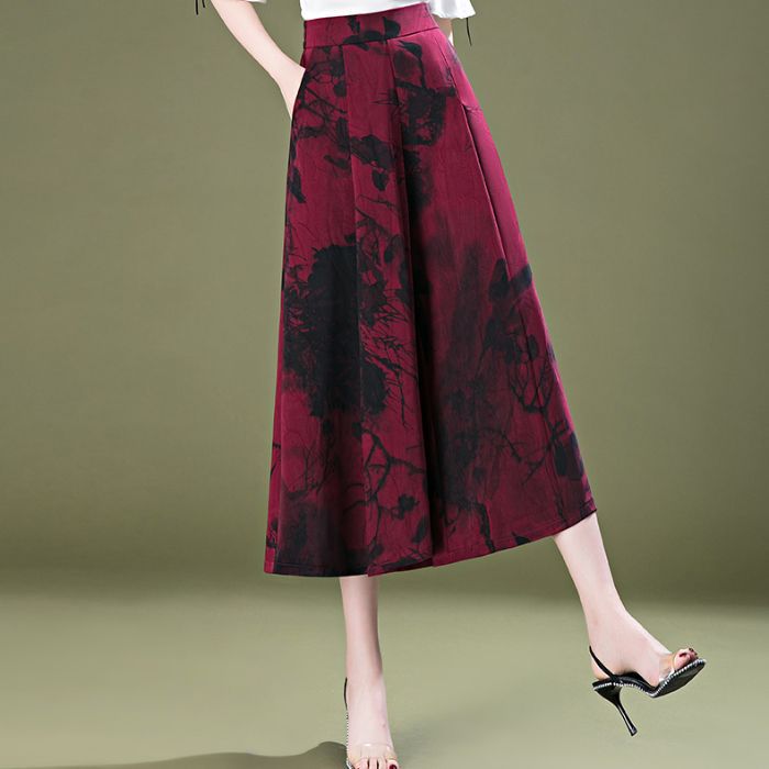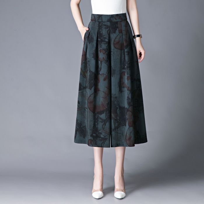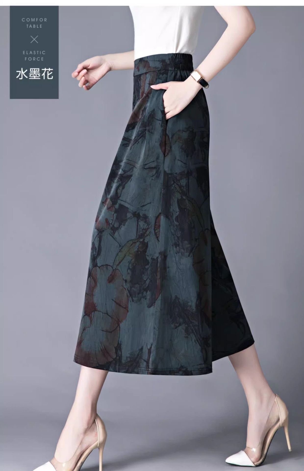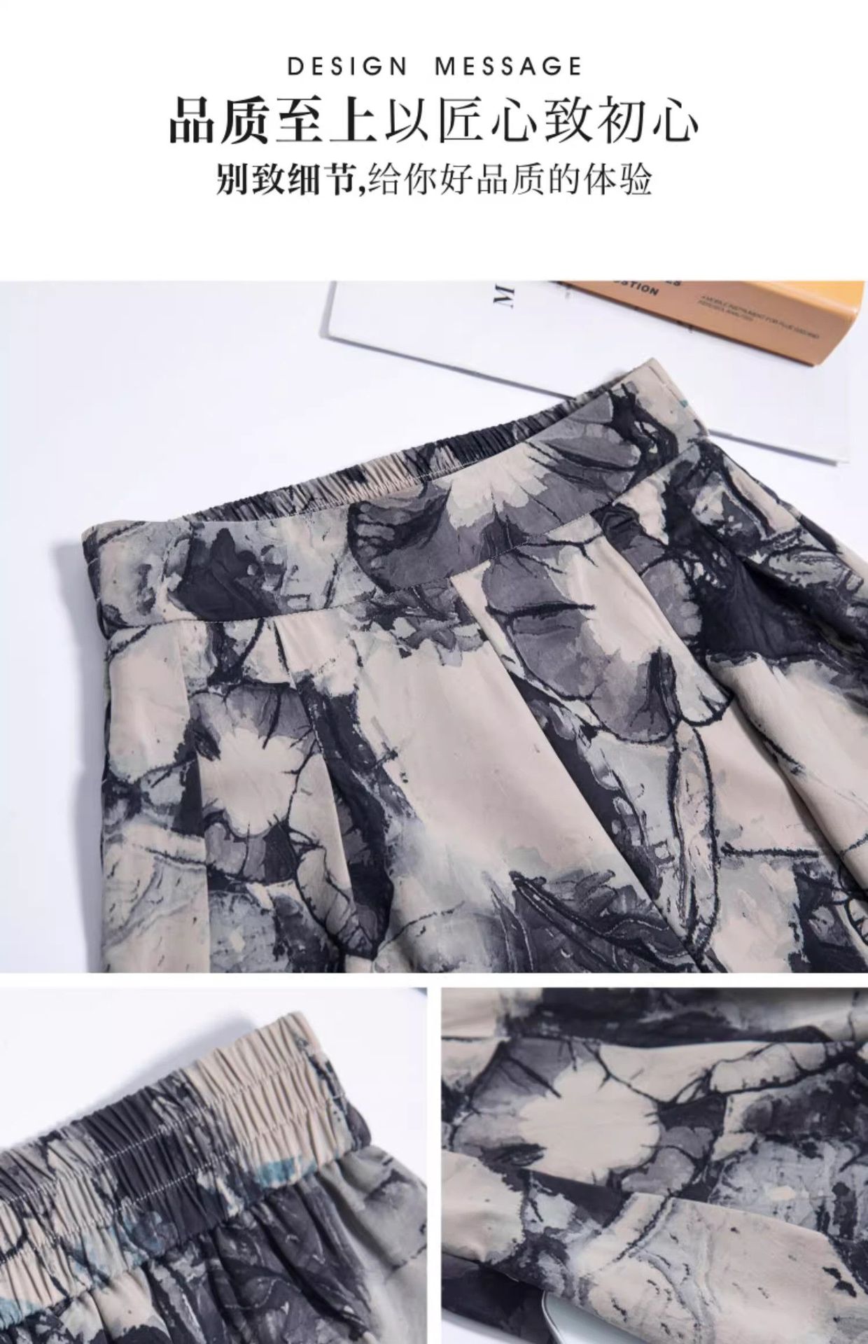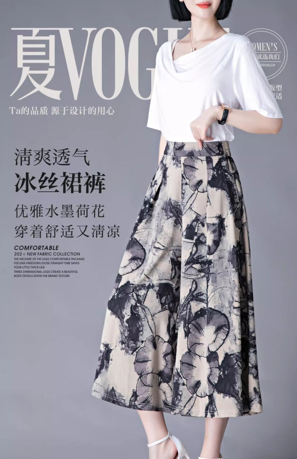 Летние брюки-кюлоты из ледяного шелка в китайском стиле, тонкие, свободные, с драпировкой, высокая талия, широкие штанины, для женщин среднего возраста, 2025 г.