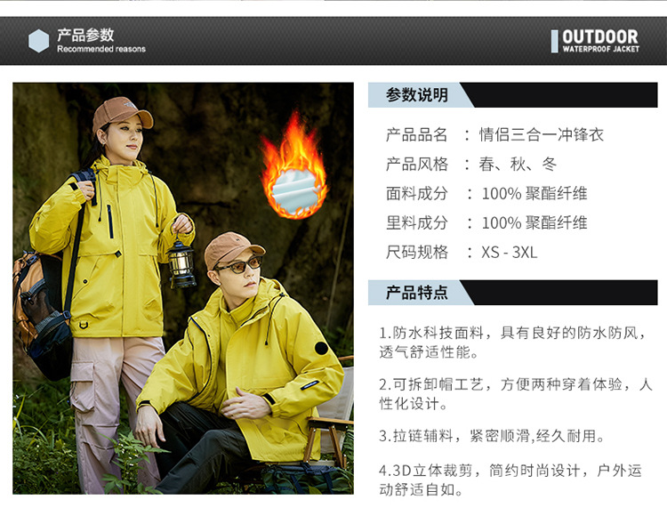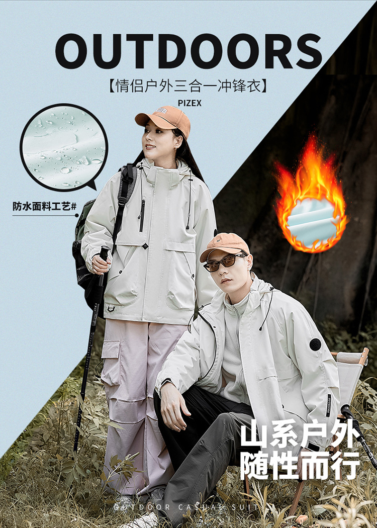 Уличные куртки для мужчин и женщин, парные пуховики «три в одном», осенние и зимние съемные ветрозащитные и водонепроницаемые альпинистские куртки.