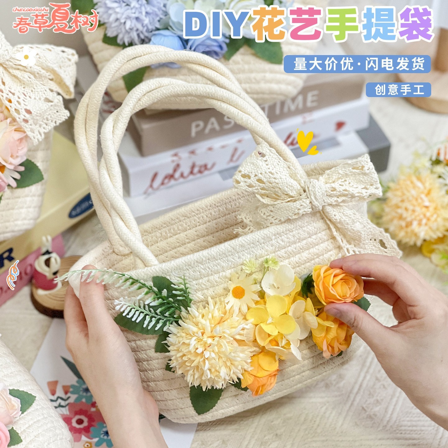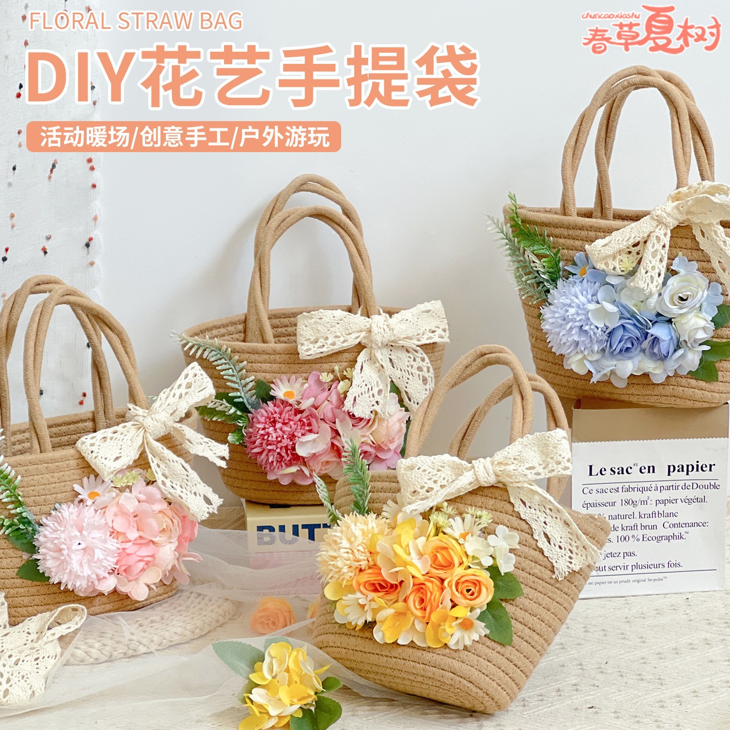 Подарок на выпускной сезон, соломенная тканая сумка, искусственный цветок, плетение, сумка из материала «сделай сам», сумка ручной работы, разогрев, командное строительство